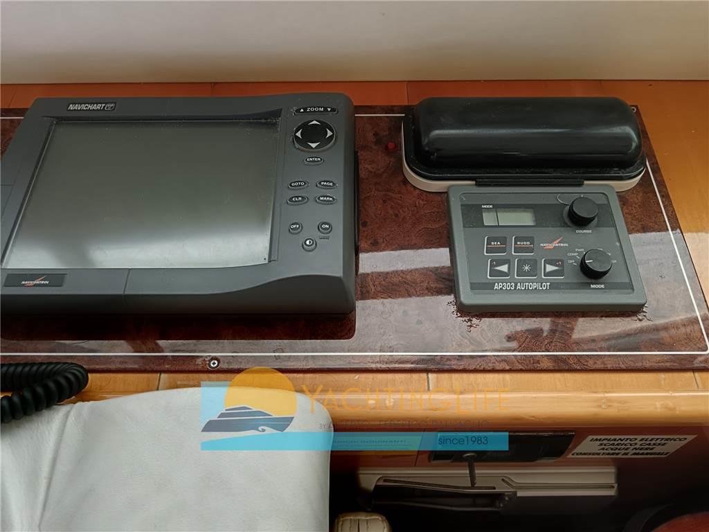 Notas de la instrumentaciónAllarme motore, Allarme sentina, Ancora, Angolo barra, Antenna radar, Asse di rispetto, Autoclave, Autogonfiabile (scad 2027), 7 Batterie (4 servizi 2025), Bussola, Camminamenti laterali in teak, Caricabatterie, Contamiglia, Doccia esterna, Doppia timoneria, Ecoscandaglio, Elica di prua - bow thruster, 3 Elica di rispetto, Flap idraulici, 2 GPS (Sul fly nuovo), Impianto antincendio, Lavaggio catena, Luci di cortesia, Passerella (idraulica), Piattaforma, Pilota automatico, Pompa di sentina automatica, Pompa di sentina manuale, Porta ingresso, Pozzetto Teak, Presa 220V banchina, Radar, Raddrizzatore, Radio VHF (2025 + Portatile 2024), Salpa Ancore Elettrico, Scaletta da bagno, Selle per Tender, Tender (nuovo e motore 6hp), Tromba, Winch tonneggio di poppa