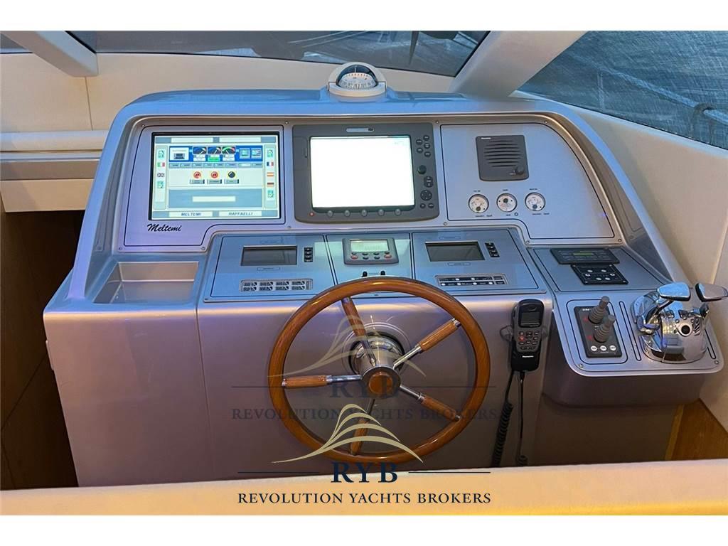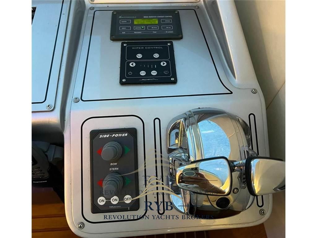 Notas internasNotas de la instrumentaciónAngolo barra, Antenna radar, Bussola, Comando motori elettronico, Computer di bordo, Ecoscandaglio, GPS, Log, Pilota automatico, Plotter con antenna GPS, Radar, Radio VHF.Notas de armamentoAllestimento tecnico e di coperta:Allarme motore, Allarme sentina, Ancora, Doccia esterna, Doppia timoneria, Elica di poppa - stern thruster, Elica di prua - bow thruster, Flap idraulici, Impianto antincendio, Passerella, Piattaforma, Pompa di sentina automatica, Pompa di sentina elettrica, Porta ingresso, Pozzetto Teak, Presa 220V banchina, Rollbar, Salpa Ancore Elettrico, Selle per Tender, Tavolo pozzetto, Tender, Winch tonneggio di poppa. Dotazioni domestiche di bordo: Aria condizionata, Impianto acque nere, Pavimento interno in legno, Prese interne 12v, Prese interne 220v, Riscaldamento, WC marino elettrico. Intrattenimento: Altoparlanti (BOSE), Antenna Satellitare TV, Decoder satellite, Digitale Terrestre, Impianto TV, Stereo, TV. Cucina ed elettrodomestici: Cucina, Fornello, Forno, Frigorifero esterno, Frigorifero interno, Lavasciuga, Winecooler. Tappezzerie: Bimini, Cappottina, Cuscineria completa, Cuscineria di poppa, Cuscineria di prua, Cuscineria fly, Cuscineria Pozzetto, Teli copri finestra, Tendalino. |