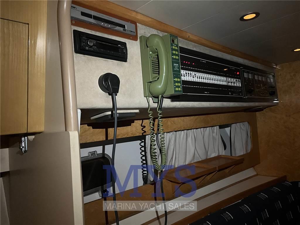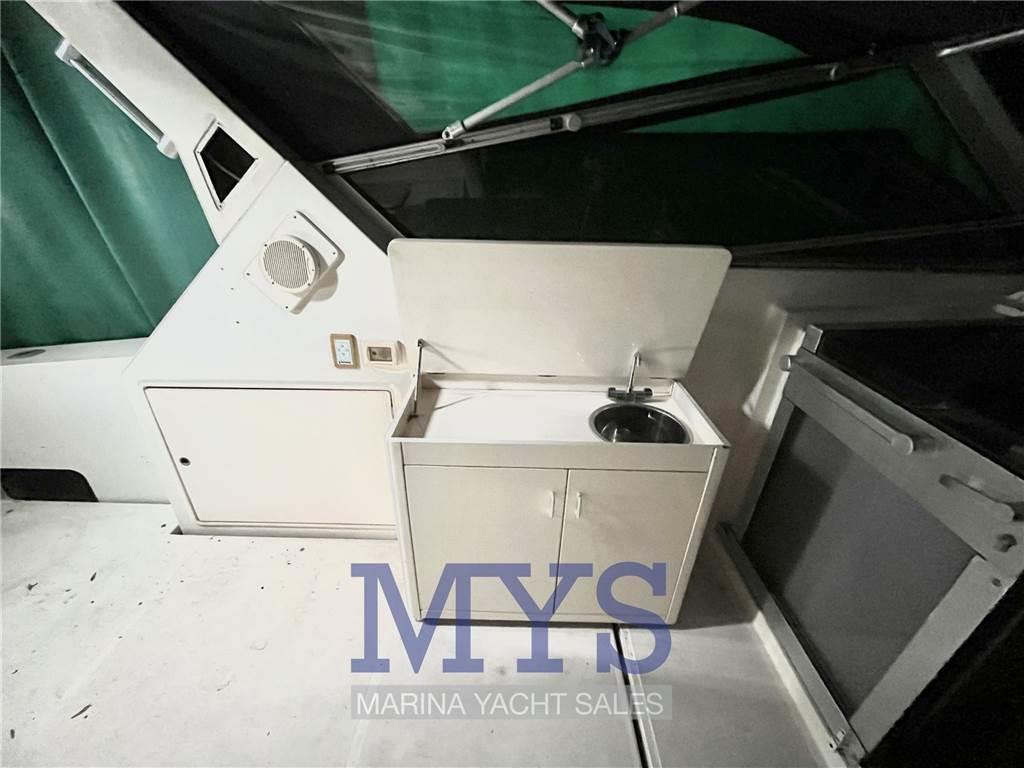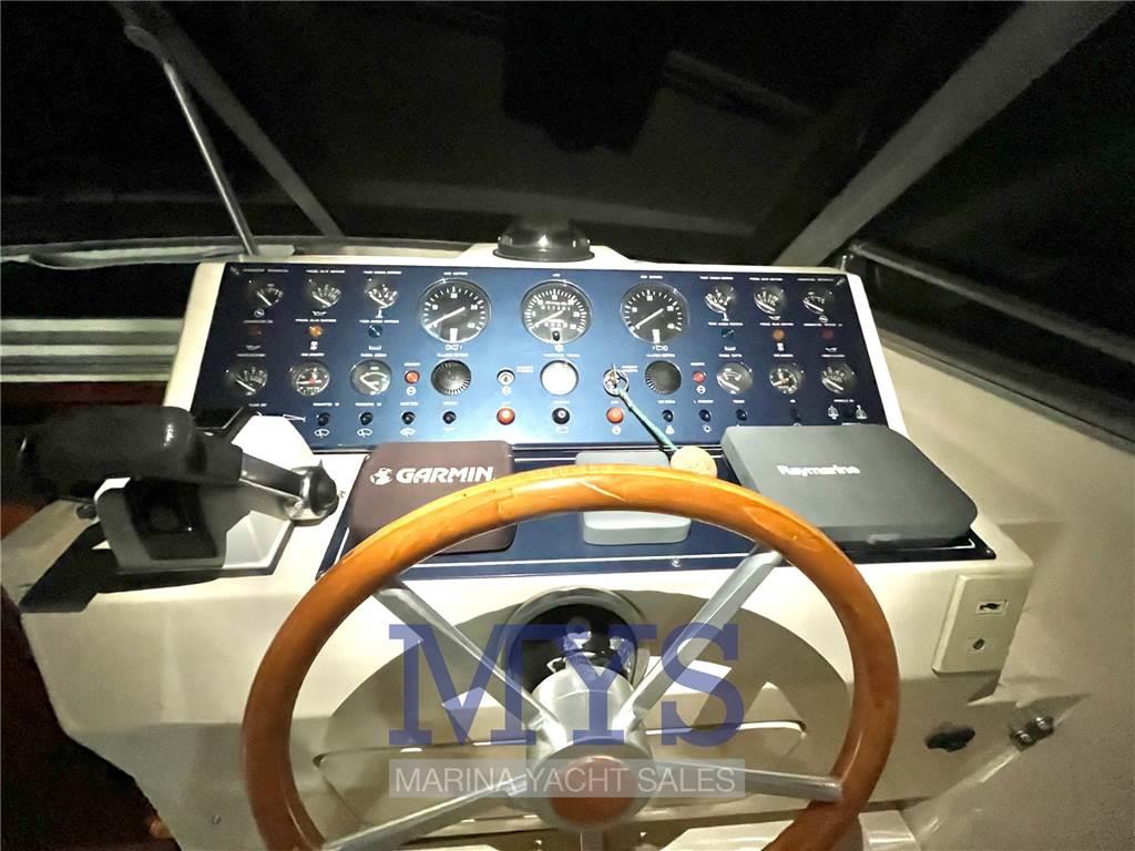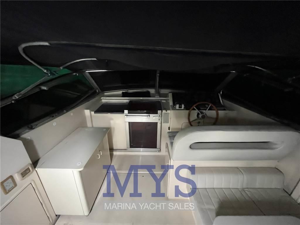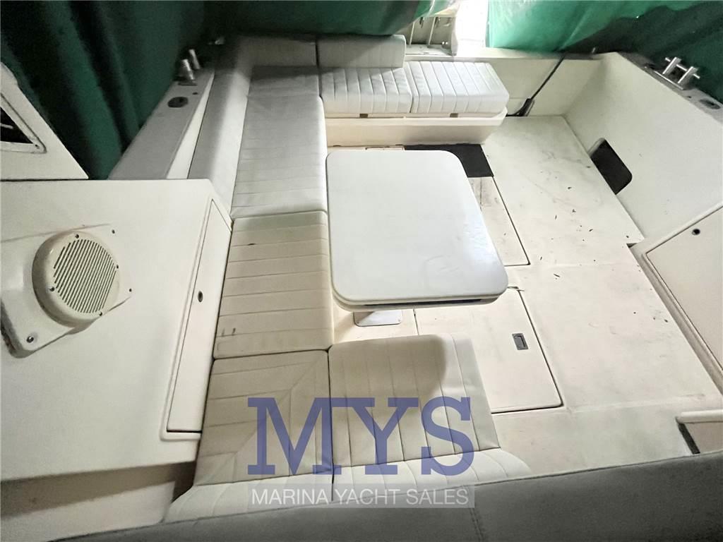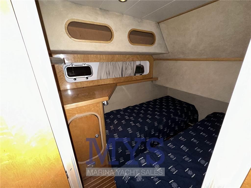 Notas internasCabina armatoriale con letto matrimoniale a penisola Cabina ospiti con due letti singoli in piano Bagno con lavandino, wc elettrico, carabottino per doccia Dinette con divano a L e tavolo da pranzo Cucina a L dotata di lavello, frigo, forno e fuochi Notas de la instrumentaciónStrumentazione motoriPlotter gps Eco Log VHF Vericello elettrico Flaps idraulici Indicatori flaps Passerella idraulica Batterie Caricabatteria Boiler acqua calda Altoparlanti Radio e stereo Autoclave Pompa di sentina elettrica Pompa di sentina manuale Salpancora elettrico Cucina Fornelli Frigo Notas de armamentoBiminiRoll bar Spiaggetta Cuscineria Tavolo esterno Lavandino esterno |