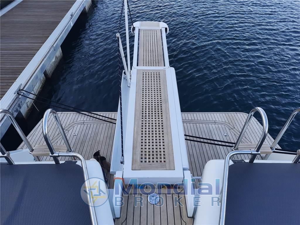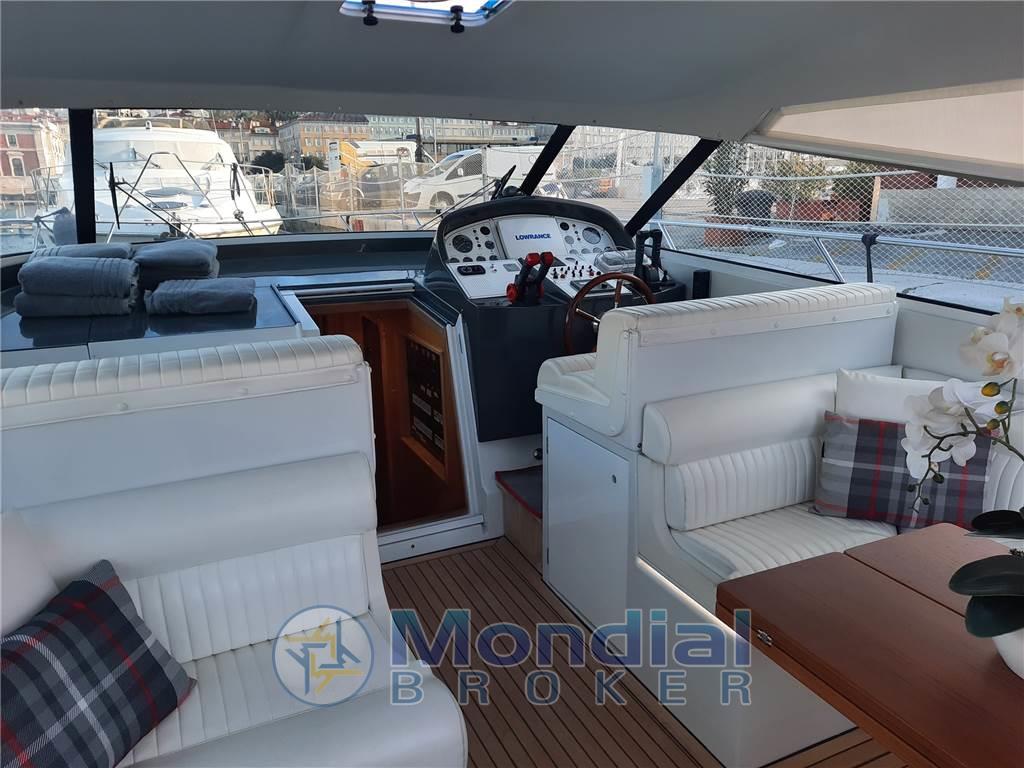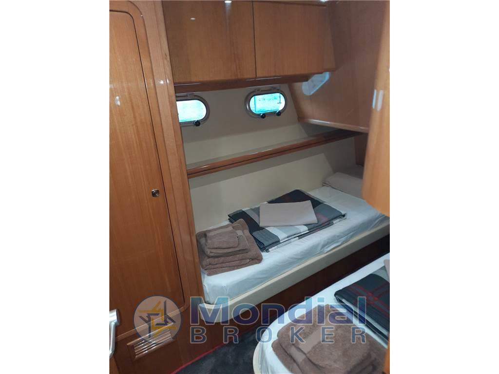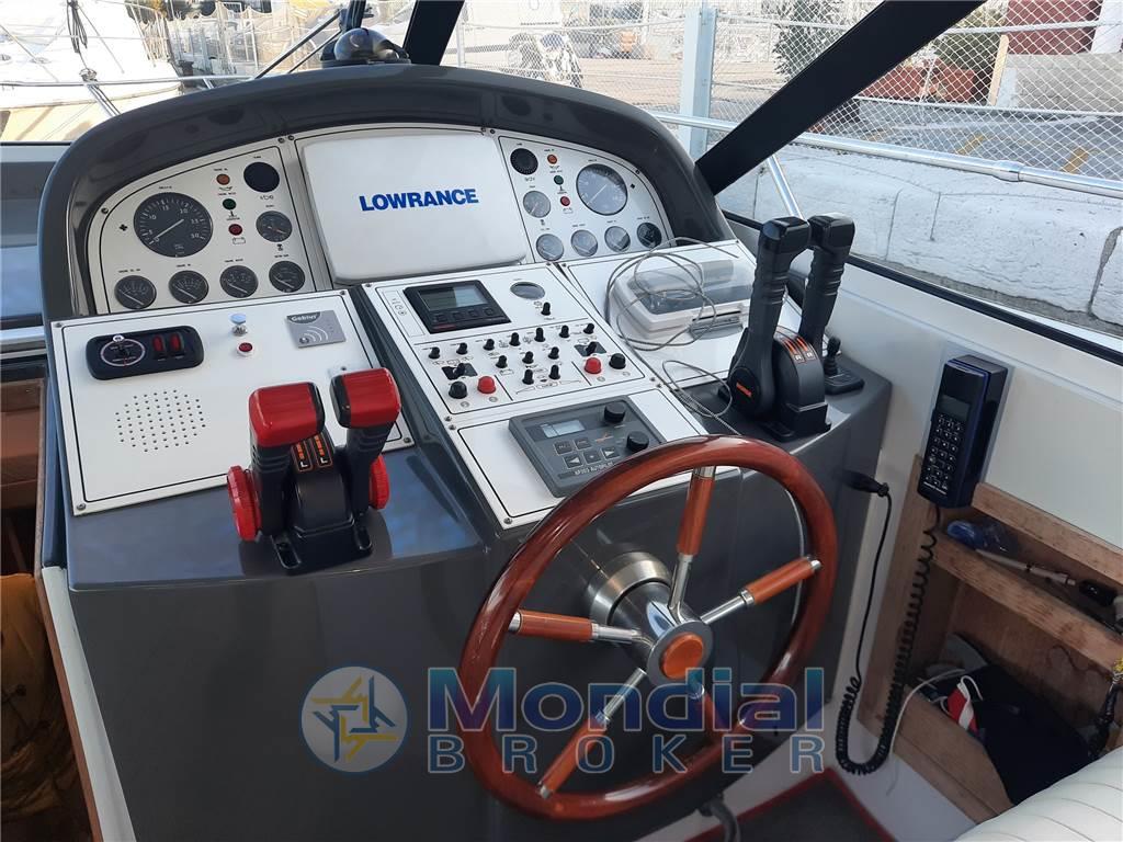 Notas internasNotas de la instrumentaciónAngolo barra, Antenna radar, Bussola, Computer di bordo, Contamiglia, Display, Ecoscandaglio, GPS (SIMRAD), Pilota automatico, Radio VHF, Stazione vento.Notas de armamentoAllestimento tecnico e di coperta:Allarme motore, Allarme sentina, Autogonfiabile, Doccia esterna, Elica di prua - bow thruster, Faro orientabile, Flap idraulici, Hard top, Impianto antincendio, Indicatori Flaps, Lavaggio catena, Luci di cortesia, Luci subacquee, Passerella (IDRAULICA), Piattaforma, Pompa di sentina automatica, Pompa di sentina manuale, Pozzetto Teak, Presa 220V banchina, Presa acqua banchina, Raddrizzatore, Salpa Ancore Elettrico, Scala reale, Scaletta da bagno, Sistema Depurazione acque nere, Tavolo pozzetto, Tromba, T-Top, Winch. Dotazioni domestiche di bordo: Aria condizionata, BBQ/ Grill, Clima reversibile, Impianto acque nere, Prese interne 12v, Prese interne 220v, 2 WC marino elettrico. Intrattenimento: Altoparlanti, Radio AM/FM, Stereo. Cucina ed elettrodomestici: Cucina, Fornello, Forno, Frigorifero esterno, Frigorifero interno (N°2), Ghiacciaia, Macchina caffè, Microonde, Piastra elettrica, Piastra in vetroceramica. Tappezzerie: Bimini, Cuscineria completa, Cuscineria di poppa, Cuscineria di prua, Cuscineria Pozzetto, Teli chiusura T-Top, Teli copri finestra, Tendalino. |
