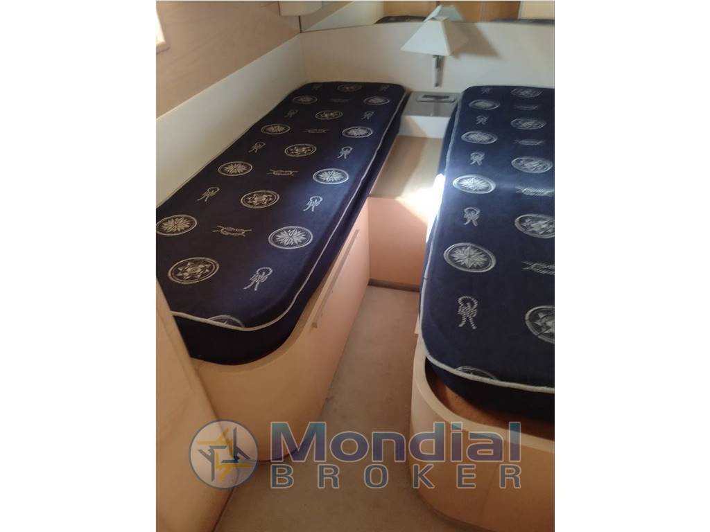 Notas internasNotas de la instrumentaciónGPS, eco,VHF,pilota automatico,tvNotas de armamentoPasserella idraulica,elica di prua, aria condizionata generatore,tendalini nuovi completi con chiusura camper,mobile pozzetto con frigo,grill e lavello, tavolo pozzetto telescopico trasformabile,teak |