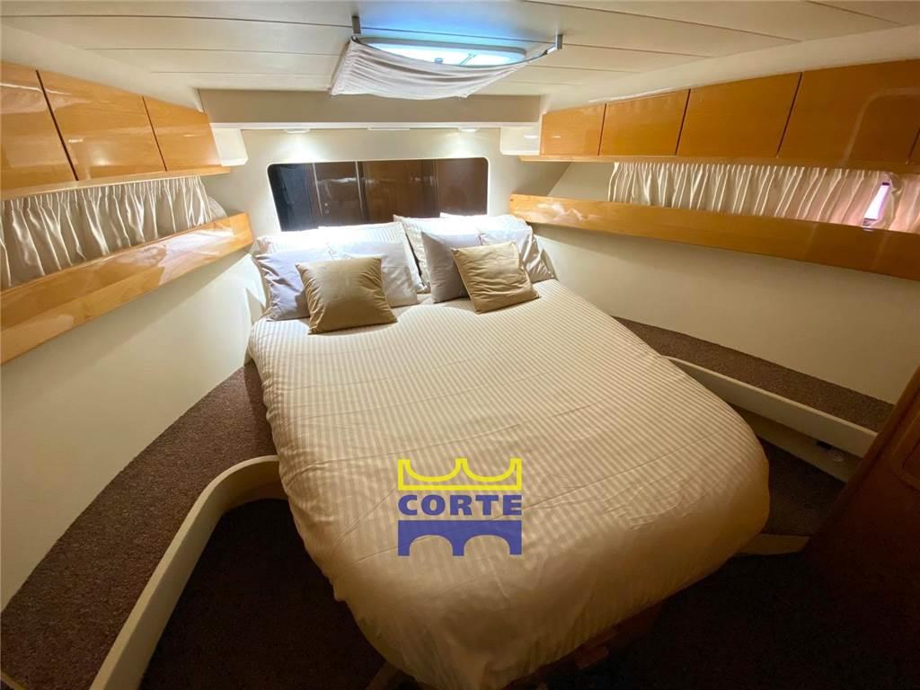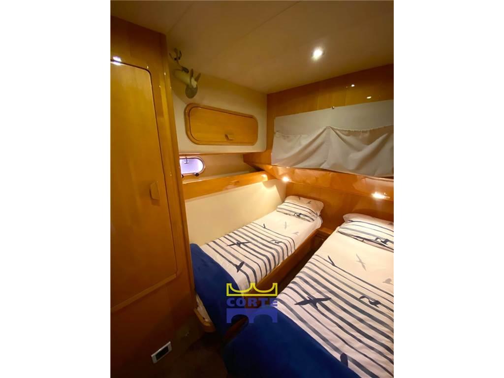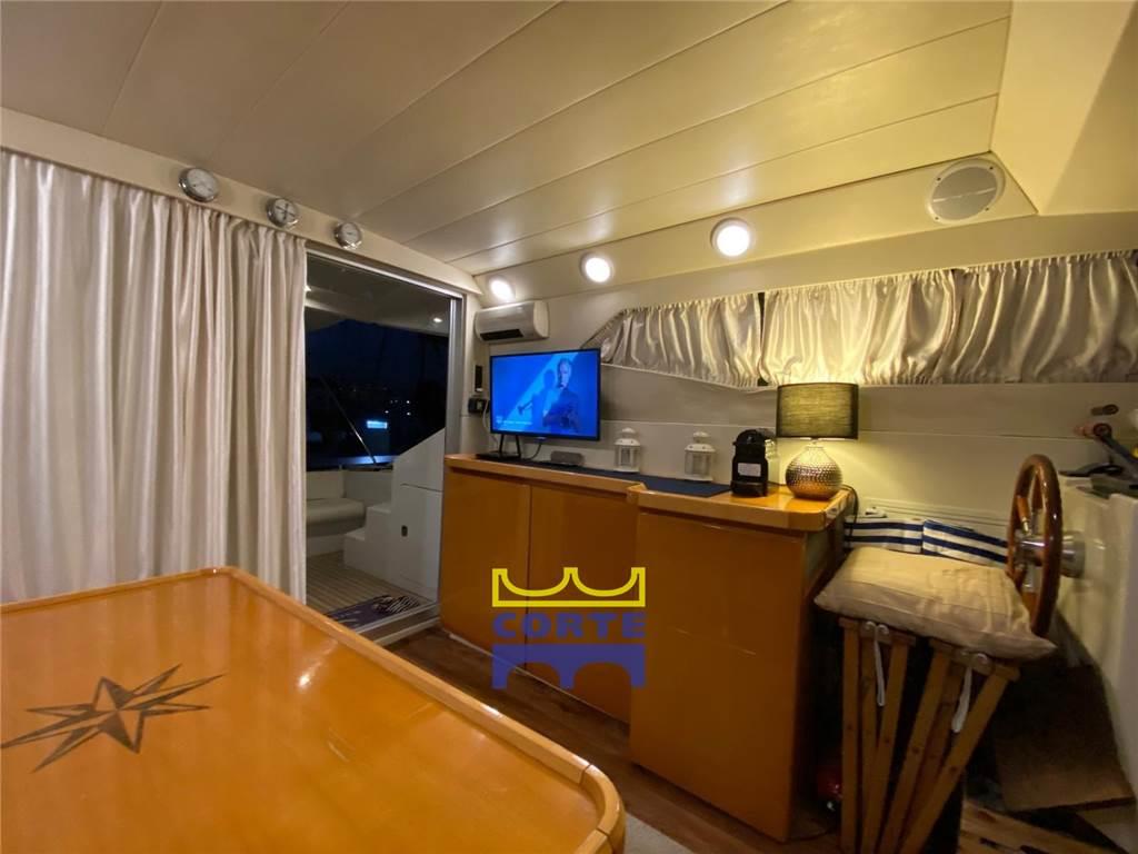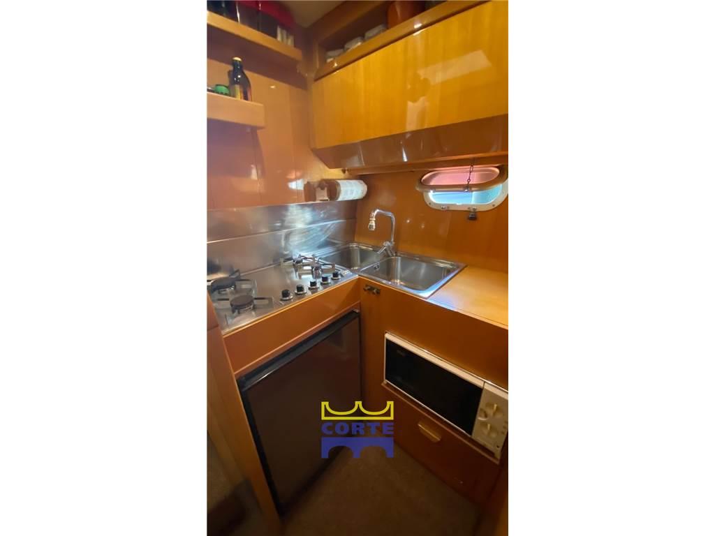 Notas internasNotas de la instrumentaciónBussola, Contamiglia, Display, Ecoscandaglio, GPS (Raymarine sul fly recente), Log, Pilota automatico, Plotter con antenna GPS, Radio VHF.Notas de armamentoAllestimento tecnico e di coperta:Allarme motore, Ancora, Doccia esterna, Doppia timoneria, Flap idraulici, Gruette (passerella), Luci subacquee, Passerella (elettroidraulica), Piattaforma (di poppa in teak), Pompa di sentina automatica, Pompa di sentina elettrica, Porta ingresso, Pozzetto Teak, Presa 220V banchina, Presa acqua banchina, Rollbar, Salpa Ancore Elettrico, Scaletta da bagno, Tavolo Salone Abbattibile, Tromba, Winch tonneggio di prua. Dotazioni domestiche di bordo: Pavimento interno in legno (in dinette), Prese interne 12v, Prese interne 220v, Telecamera (in pozzetto), WC marino elettrico. Intrattenimento: Altoparlanti, Digitale Terrestre, Impianto TV, TV (32" SMART). Cucina ed elettrodomestici: Cucina, Fornello (4 fuochi a gas), Frigorifero interno, Microonde, Piastra elettrica. Tappezzerie: Bimini (sul fly), Copripozzetto, Cuscineria completa, Cuscineria di poppa, Cuscineria di prua, Teli copri finestra, Telo Copertura Fly, Telo copriconsolle, Telo coprisedile (fly), Tendalino. |