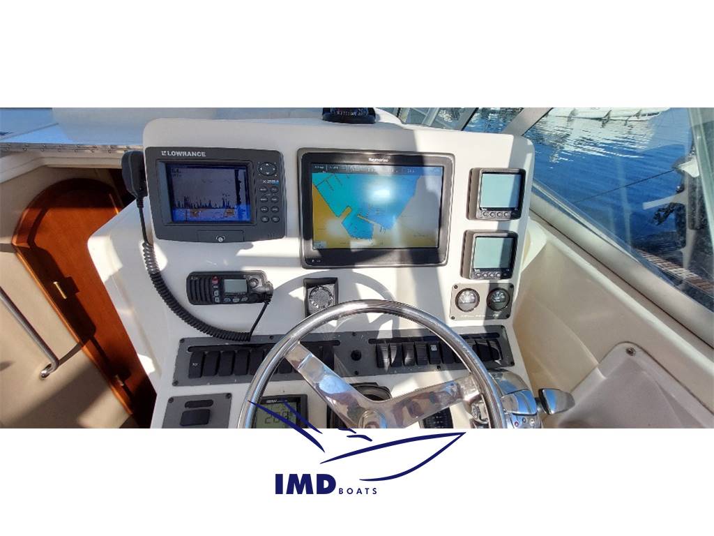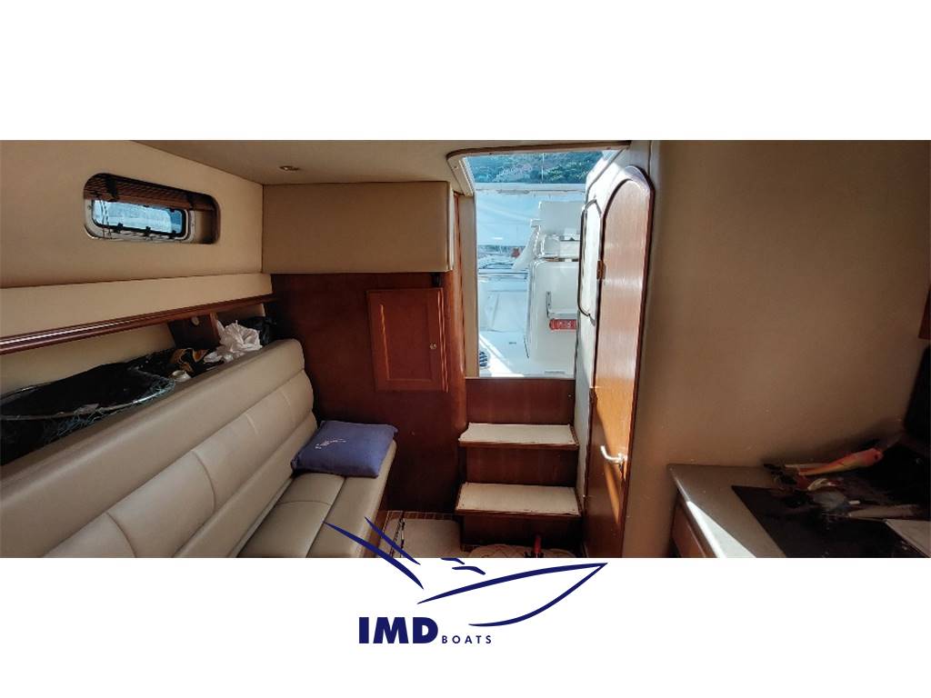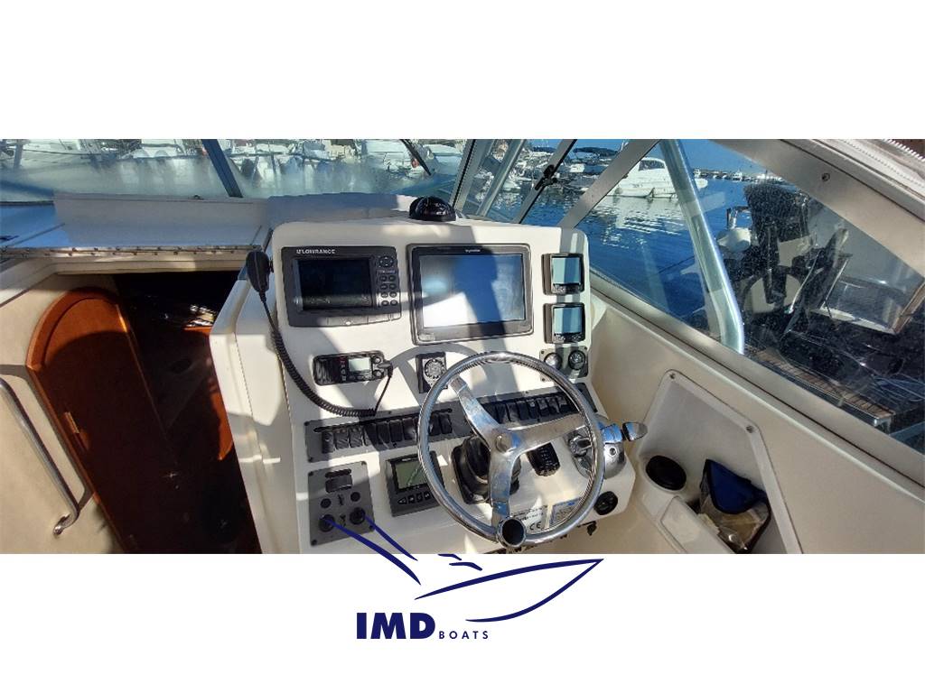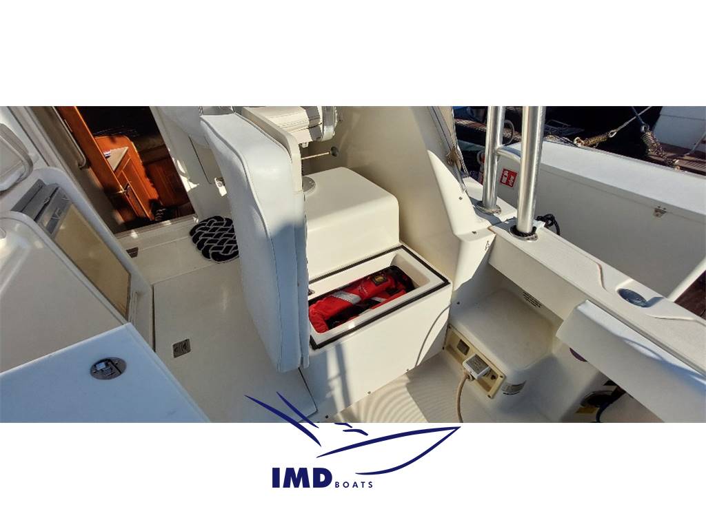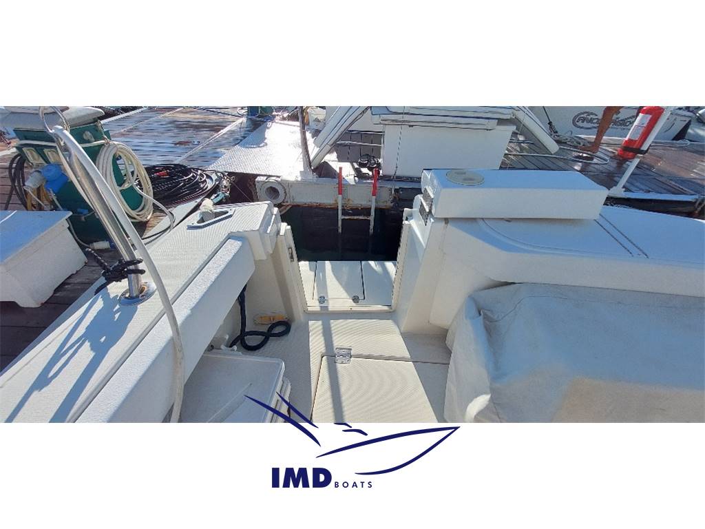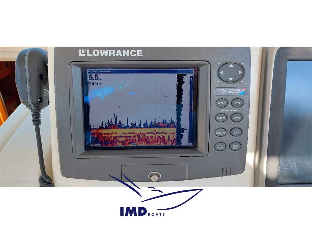 Notas internasdimette con divano in pelle e tavolo trasformabile in n. 2 letti a castello Pino di lavoro in Corian con lavello, forno microonde, frigorifero e piastra elettrica Wc elettrico marino il locale separato con porta doccia con box Ambiente organizzato in openspace molto molto accogliente e fruibile Notas de la instrumentaciónManette elettroniche ZFEcoscandaglio Lowrance Gps Raymarine serie A10 VHF icom Pilota Automatico Geonav Flap Bennet con indicatore di posizione Notas de armamentoHard-Top con teli di chiusura invernale completiAria condizionata reversibile N. 2 frigoriferi uno interno uno esterni Verricello elettrico con catena ed ancora Wc elettrico marino con vasca acque nere Tendalino poppa ad archi acqua dolce e salata nel pozzetto Vasca del vivo Vasca del pescato Divergenti |