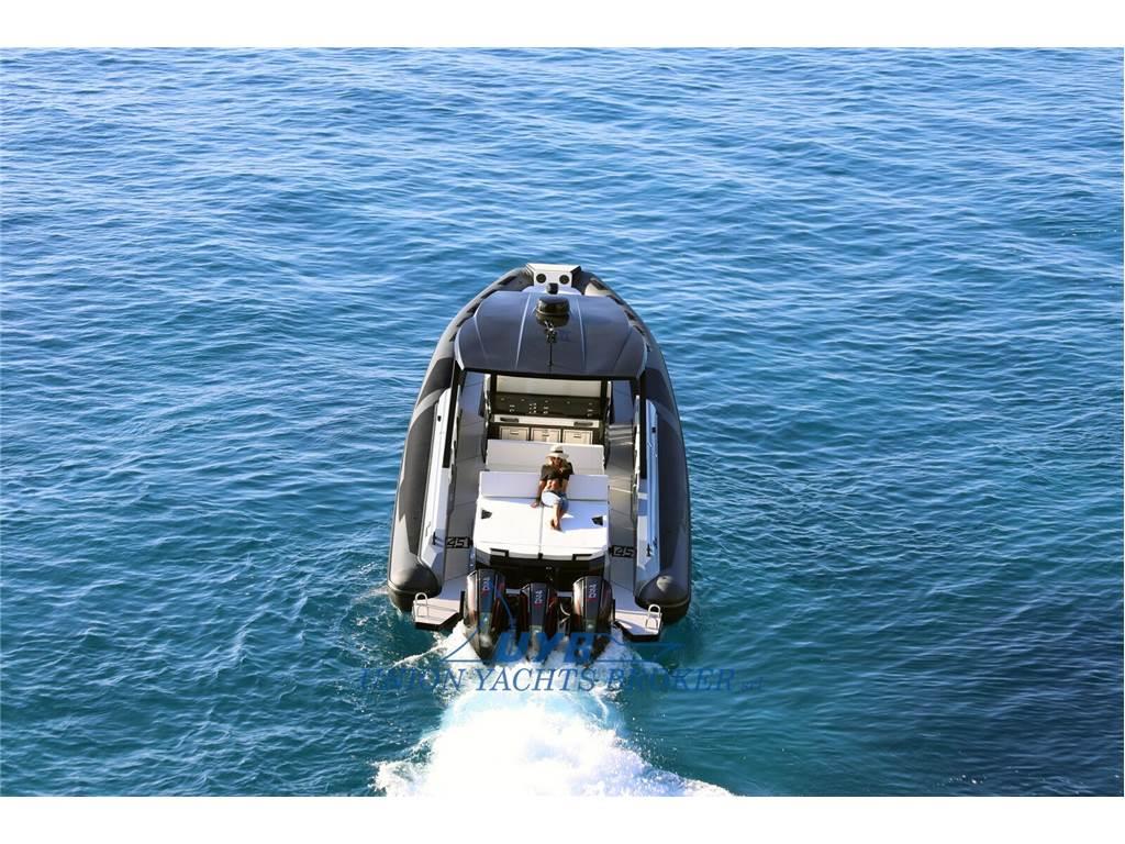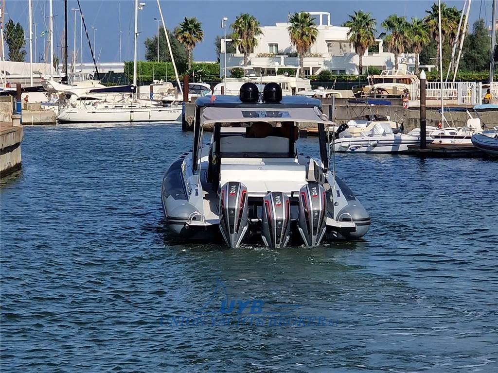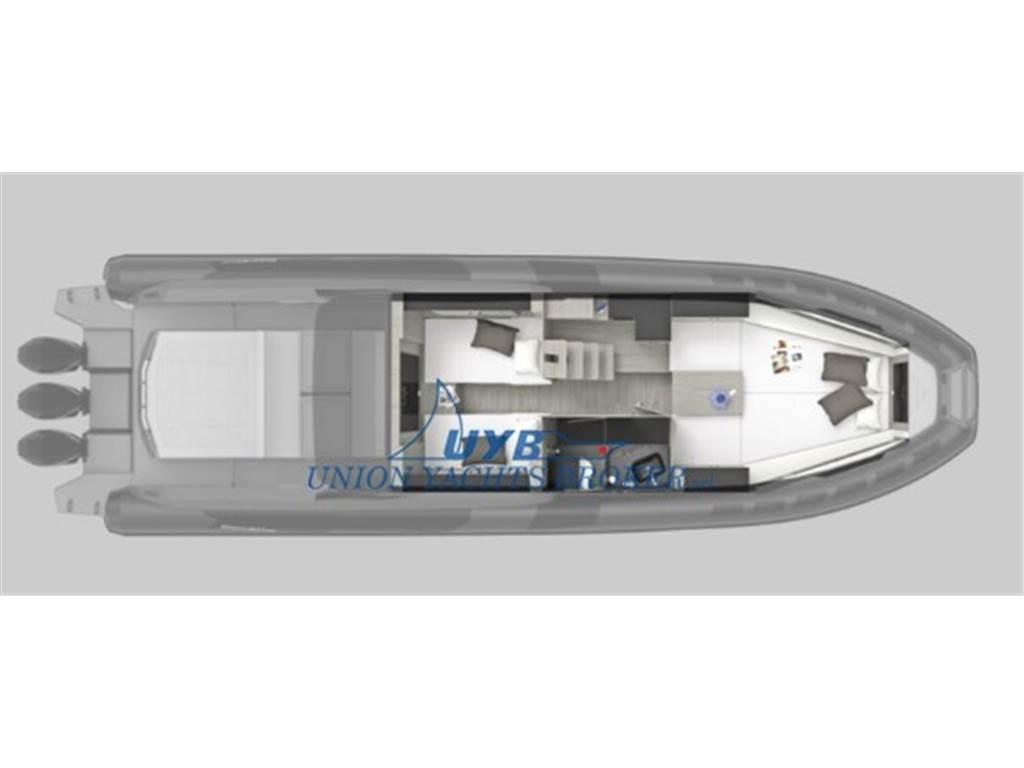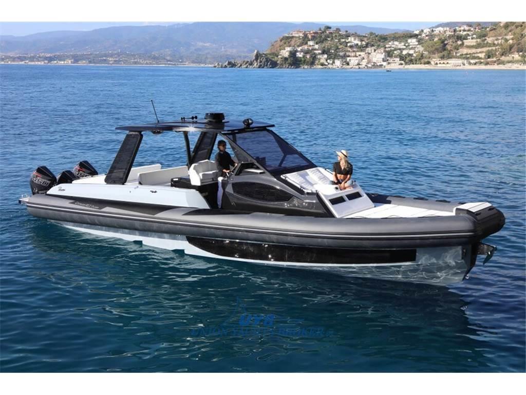 E’ un cabinato con una tugacentrale walk-around protetta da un hard-top e spazio sottocoperta. E' un magnifico maxi-rib lungo poco meno di 14 metri |