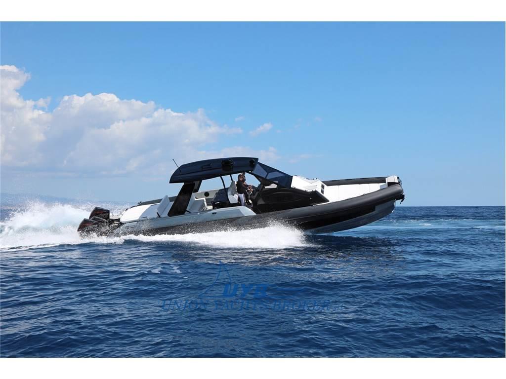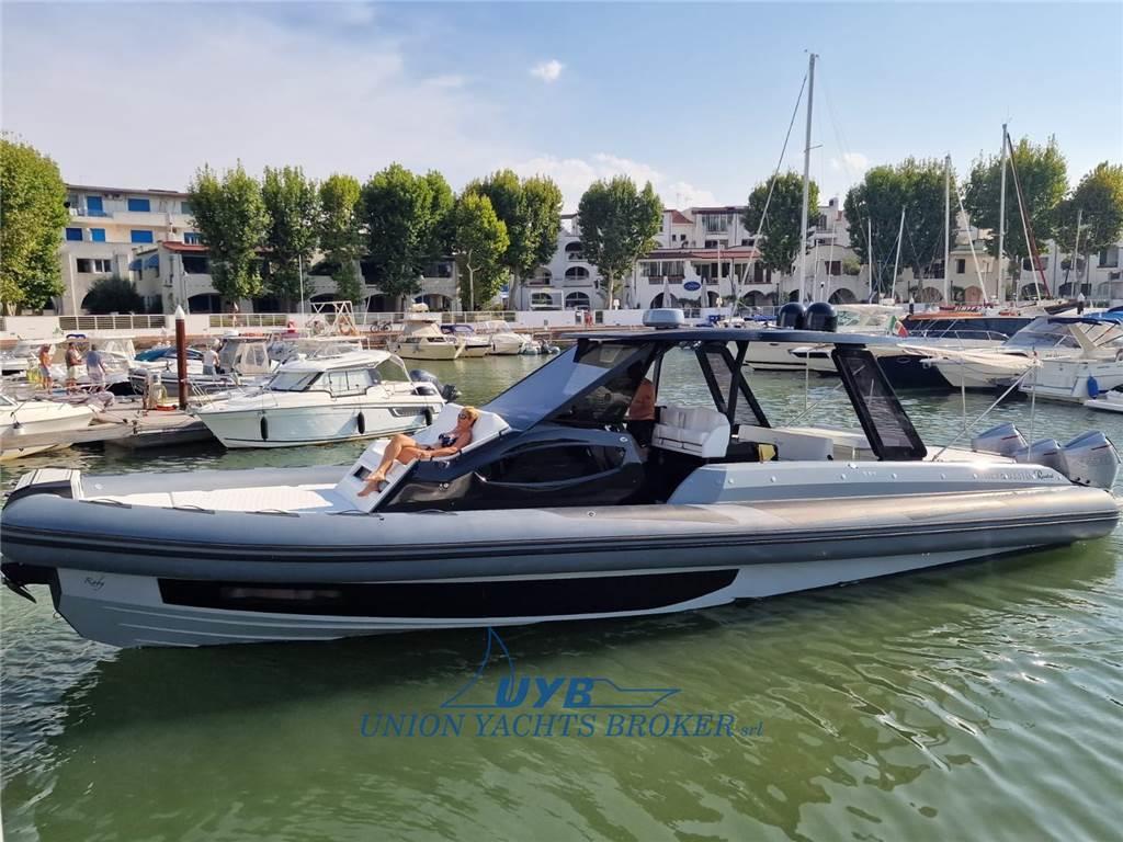 E’ un cabinato con una tugacentrale walk-around protetta da un hard-top e spazio sottocoperta. E' un magnifico maxi-rib lungo poco meno di 14 metri |