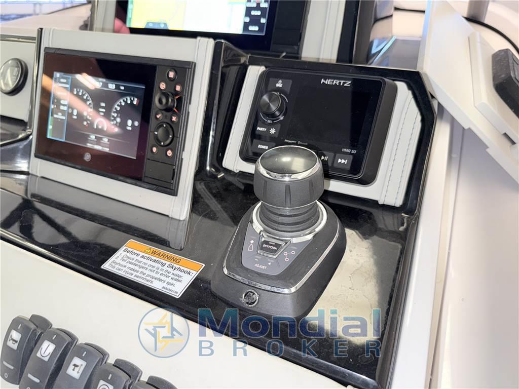 Notas internasNotas de la instrumentaciónAllarme motore, Ancora, Autoclave, Batterie, Bussola, Caricabatterie, Doccia esterna, Ecoscandaglio, Elica di prua - bow thruster, Flap elettrici, Joystick, Lavandino nel Pozzetto, Luci di cortesia, Piattaforma, Pilota automatico, Plotter con antenna GPS, Pompa di sentina elettrica, Presa 220V banchina, Salpa Ancore Elettrico, Scaletta da bagno, Sistema di posizionamento dinamico, Tavolo pozzetto, Tromba, T-TopNotas de armamentoAltoparlanti, Cuscineria di poppa, Cuscineria di prua, Fornello, 2 Frigorifero esterno, Prese interne 12v, Prese interne 220v, Serbatoio Acque Nere, Stereo, Telo copriconsolle, Telo coprisedile, Tendalino, WC marino elettrico |