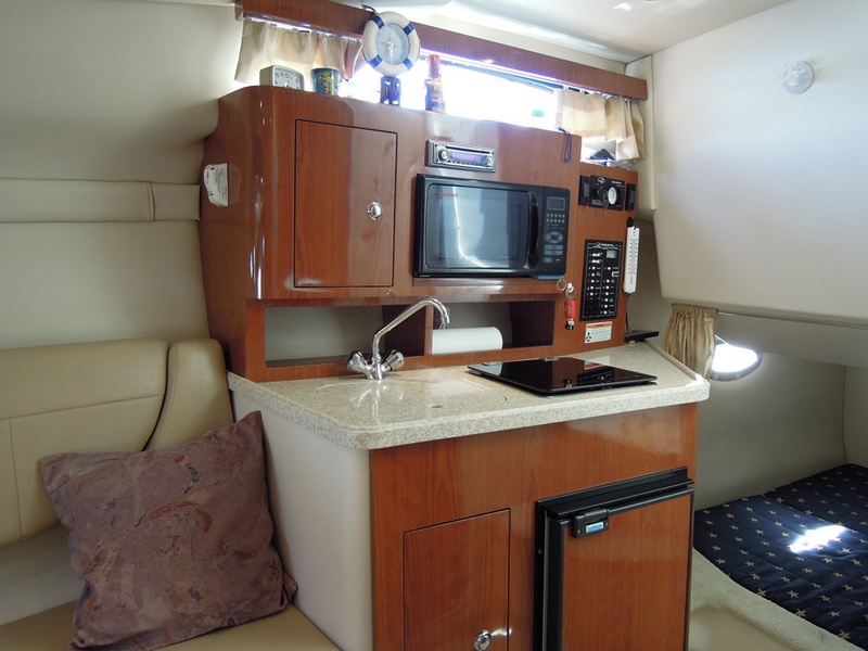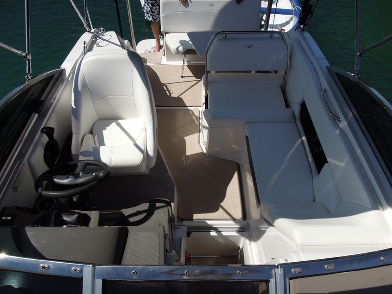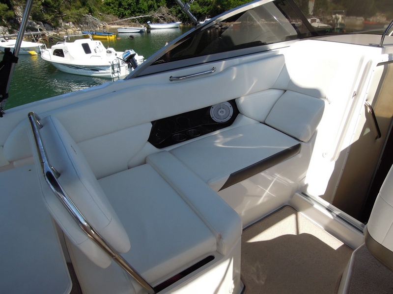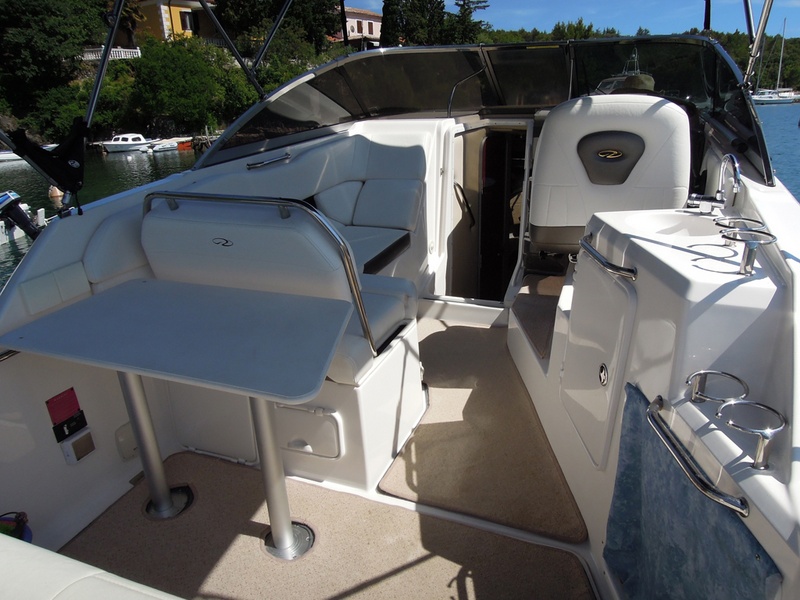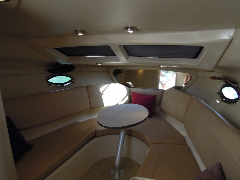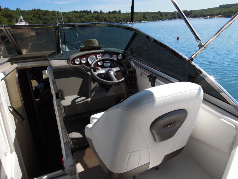 Notas internas4 Cuccette 1 Bagno Notas de armamentoRadio CD Kenwood (2+2 casse)Boiler acqua calda Impianto 220/12V+prese Caricabatterie 20 Ah 3 batterie Cucina interna: fornello ad alcool, forno a microonde, frigo Doccia in pozzetto Struttura portante per il tender a poppa Tavolo in pozzetto Moquette in pozzetto Bimini top Camper canvas Cuscineria prendisole a prua |