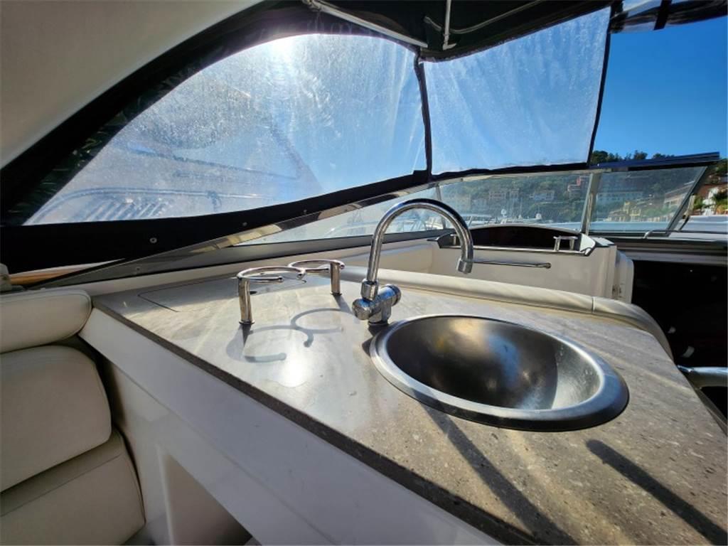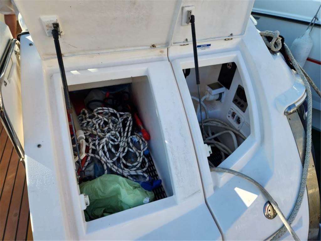 Notas internasNotas de la instrumentaciónBussola, Ecoscandaglio, GPS, Pilota automatico, Radio VHF.Notas de armamentoAllestimento tecnico e di coperta:Ancora, Impianto antincendio, Piattaforma, Pompa di sentina elettrica, Scaletta da bagno, Tavolo pozzetto, Winch. Cucina ed elettrodomestici: Frigorifero interno (Electric), Microonde. Tappezzerie: Bimini, Copripozzetto, Copriscafo. |