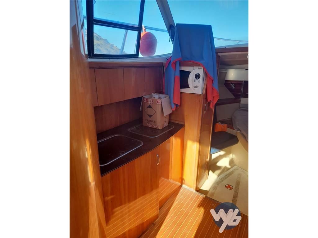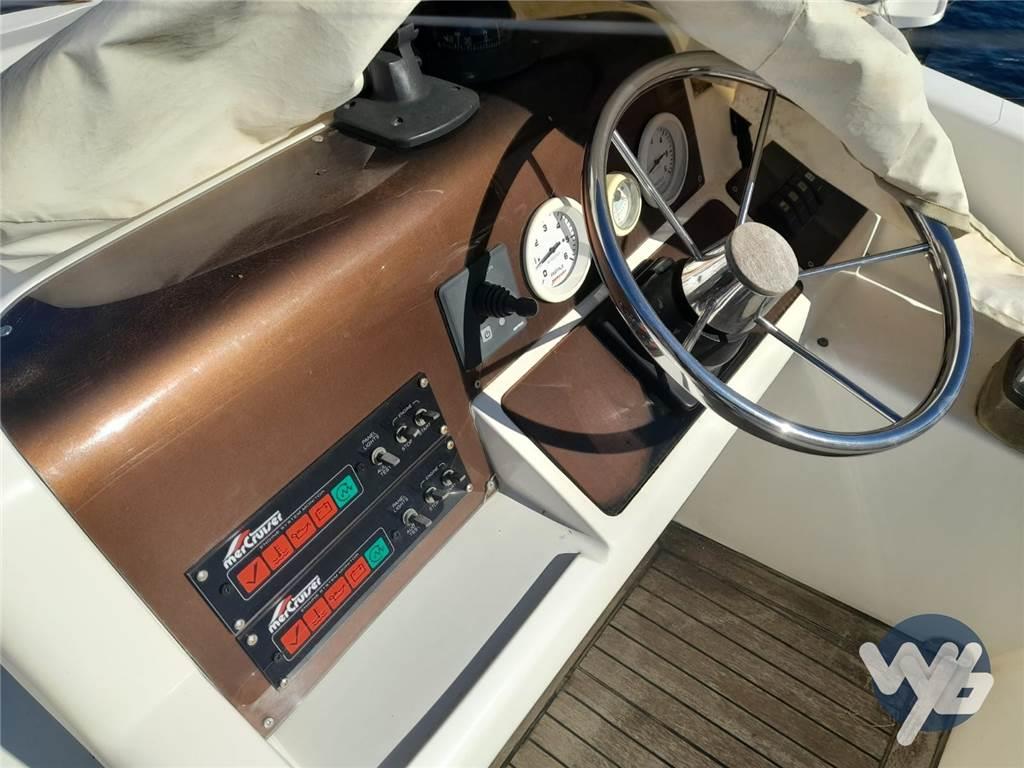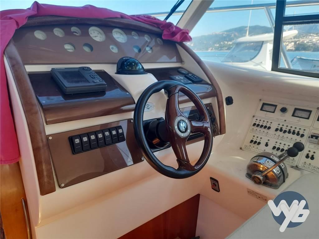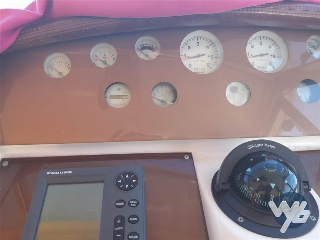 Notas internasNotas de la instrumentaciónAngolo barra, Bussola, Contamiglia, Ecoscandaglio, GPS, Pilota automatico, Radio VHF.Notas de armamentoAllestimento tecnico e di coperta:Allarme motore, Allarme sentina, Autogonfiabile, Doccia esterna, Doppia timoneria, Elica di prua - bow thruster, Faro orientabile, Flap elettrici, Passerella, Pompa di sentina elettrica, Pompa di sentina manuale, Porta ingresso, Presa 220V banchina, Salpa Ancore Elettrico, Scaletta da bagno, Tavolo pozzetto. Dotazioni domestiche di bordo: Prese interne 12v, Prese interne 220v. Intrattenimento: Decoder satellite, Impianto TV, Stereo. Tappezzerie: Cuscineria completa, Tendalino. |