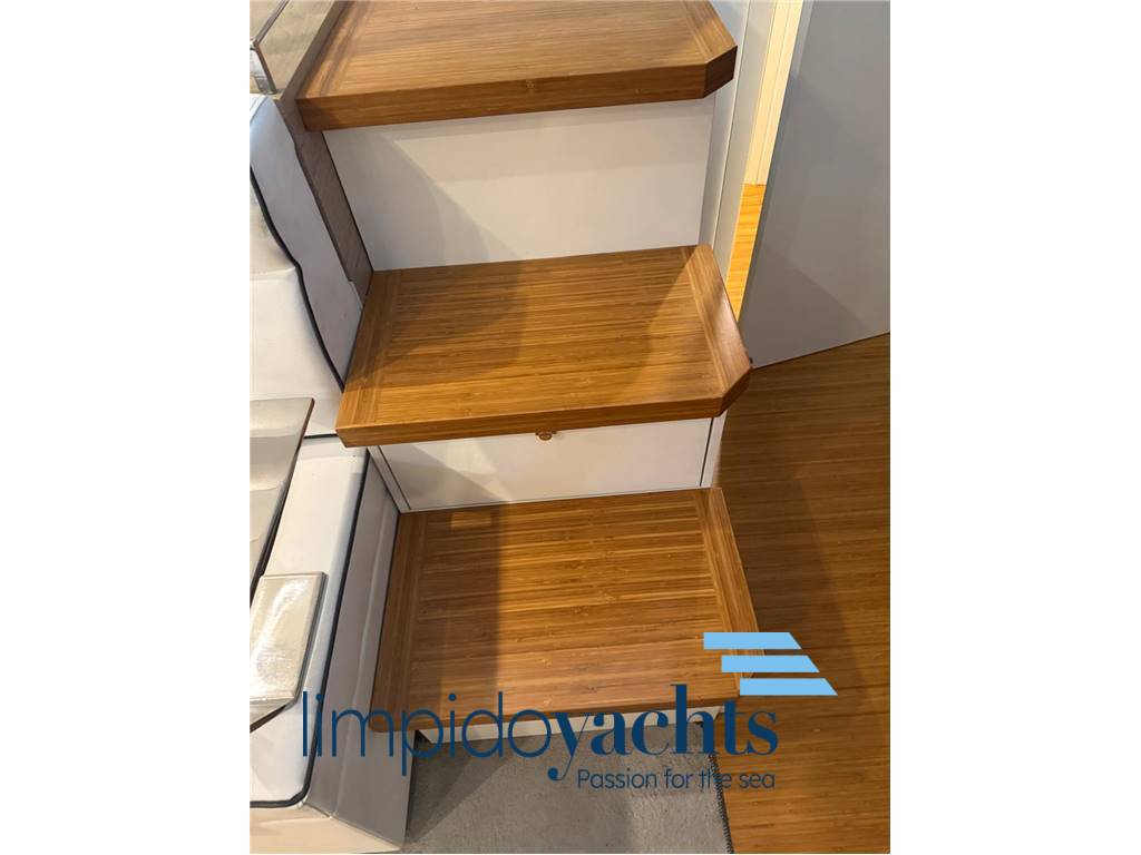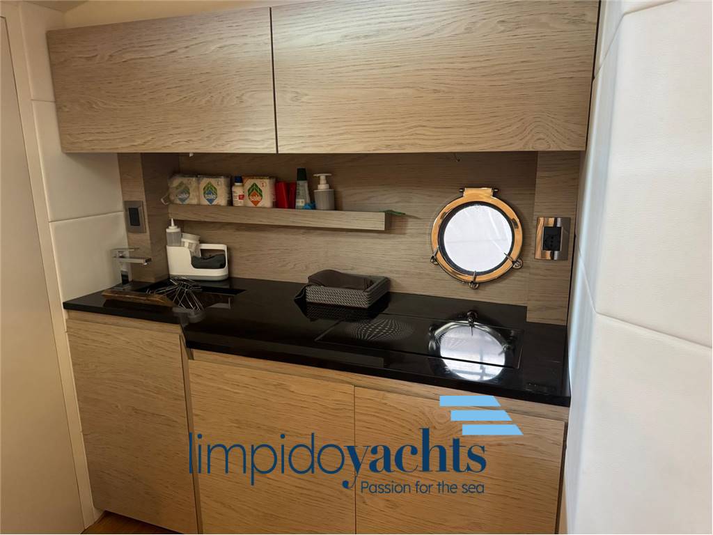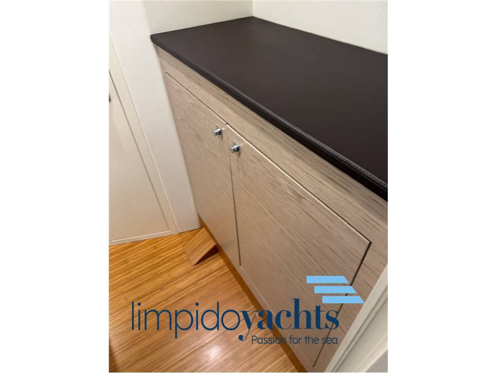 Notas internasNotas de la instrumentaciónVHF/DSC Garmin 115i;multifunction chart plotter Garmin GPSmap XSV; autopilot Garmin GHC20; engine displays Volvo Penta display motori; digital chain counter Quick contacatena; flaps Lenco Notas de armamentoelica di prua Sidepower;- gruppo elettrogeno Coelmo DM350 4kw; - caricabatterie Quick SBC 700NRG 60A/12V; - impianto A/C reversibile Frigit; - passerella idraulica telescopica a scomparsa; - 3 Samsung TV (cabine + pozzetto); - HIFI Fusion MS-RA70N con casse JL Audio pozzetto + Fusion prua; - mobile bar pozzetto con lavello, 2 frigo e piano cottura induzione Foster; - impianto luci a led + luci led cortesia colorate; - verricello salpancora Lofrans' Project + ancora Bruce acciaio; - prendisole prua con schienali reclinabili; - tendalino chiusura pozzetto + tendalino privacy poppa + chiusura laterali PVC; - dotazioni di sicurezza complete. |