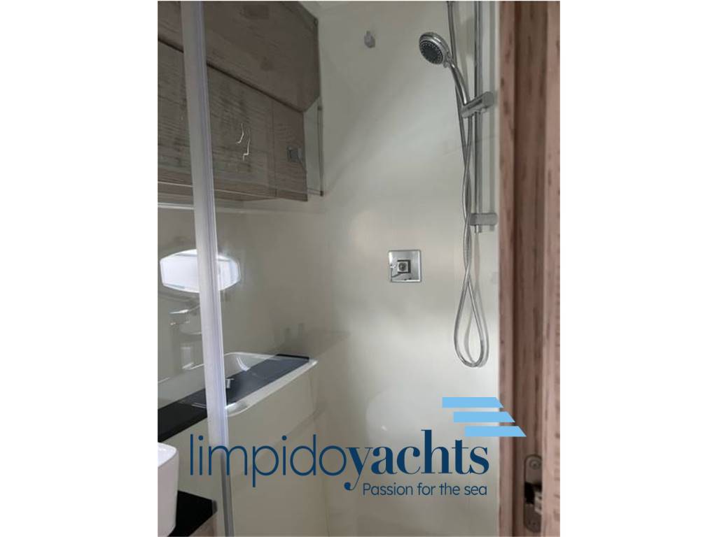 Notas internasospiti con 2 letti a castello, Cucina ponte principale, Essenze Interni in Rovere. Owner cabin amidships with toilet and shower, VIP cabin forward with double bed, guest cabin with 2 bunk beds, main deck kitchen, interior essences in oak. Notas de la instrumentaciónAUTOPILOTA RAYMARINEGPS RAYMARINE TOUCH CONTA CATENE QUIK VHF RAYMARINE JOYSTIK MANOVRA VOLVO PENTA ELICA DI PRUA Notas de armamentoHard TopElica di prua Tenda elettrica poppa Pedana Lift poppa Passerella Idraulica Pozzetto teak + Pedana poppa in teak Tavolo eletrico in pozzetto a scomparsa Generatore kohler Aria condizionata Antenna satellitare Impianto TV Frigo a pozzetto in Dinette Cucina induzione, frigo , lavello Impianto Stereo Fusion Marine Cuscineria completa |