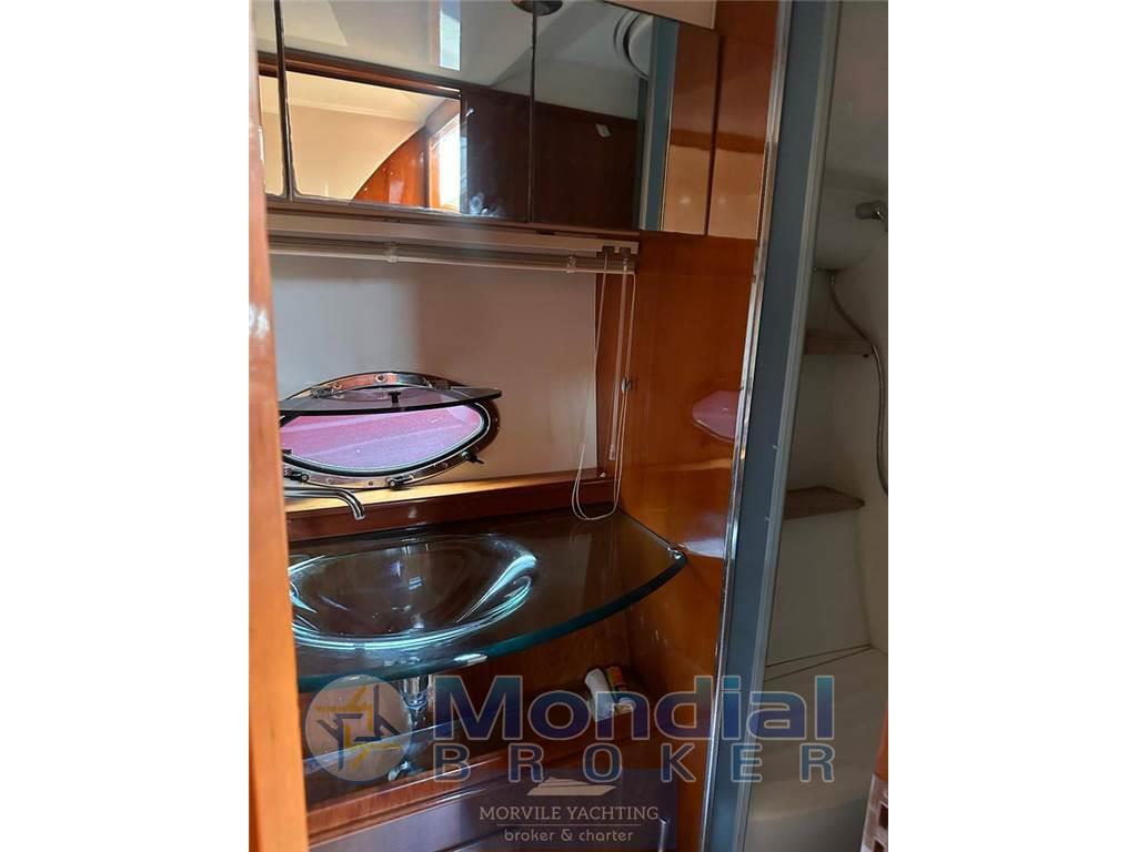 Notas internasCabine: 2 Toilette: 2 Notas de la instrumentaciónImpianto elettronico- Ecoscandaglio: + CONTAMETRI CATENA ANCORA - Impianto TV - Centrale di navigazione - Plotter - Pilota automatico - Radio - Bussola - Lettore CD - GPS - Altoparlanti di pozzetto - VHF Notas de armamentoEquipaggiamenti interni- Elica di prua - Pompa di sentina elettrica - Forno - Pompa di sentina manuale - Microonde - WC marino - Aria condizionata Coperture/Tendalini - Tendalino pozzetto: + CAPPOTTINA COMPLETA Equipaggiamenti Elettrici - Presa corrente a terra - Generatore: 4 KW - WC elettrico - Riscaldamento - Acqua calda - Frigorifero - Caricabatterie Dotazioni Esterne - Pozzetto in teak - Doccia pozzetto - Passerella idraulica - Cuscineria pozzetto - Tavolo pozzetto - Scaletta bagno |