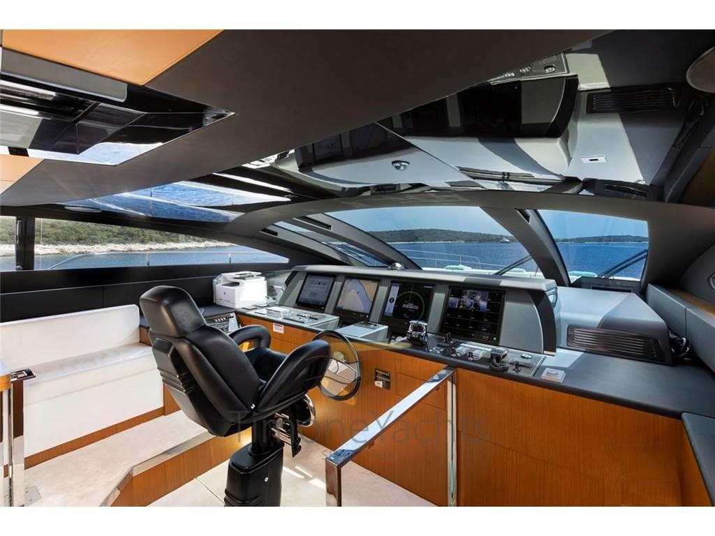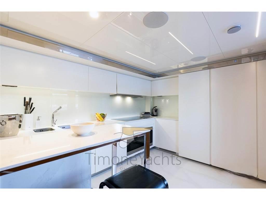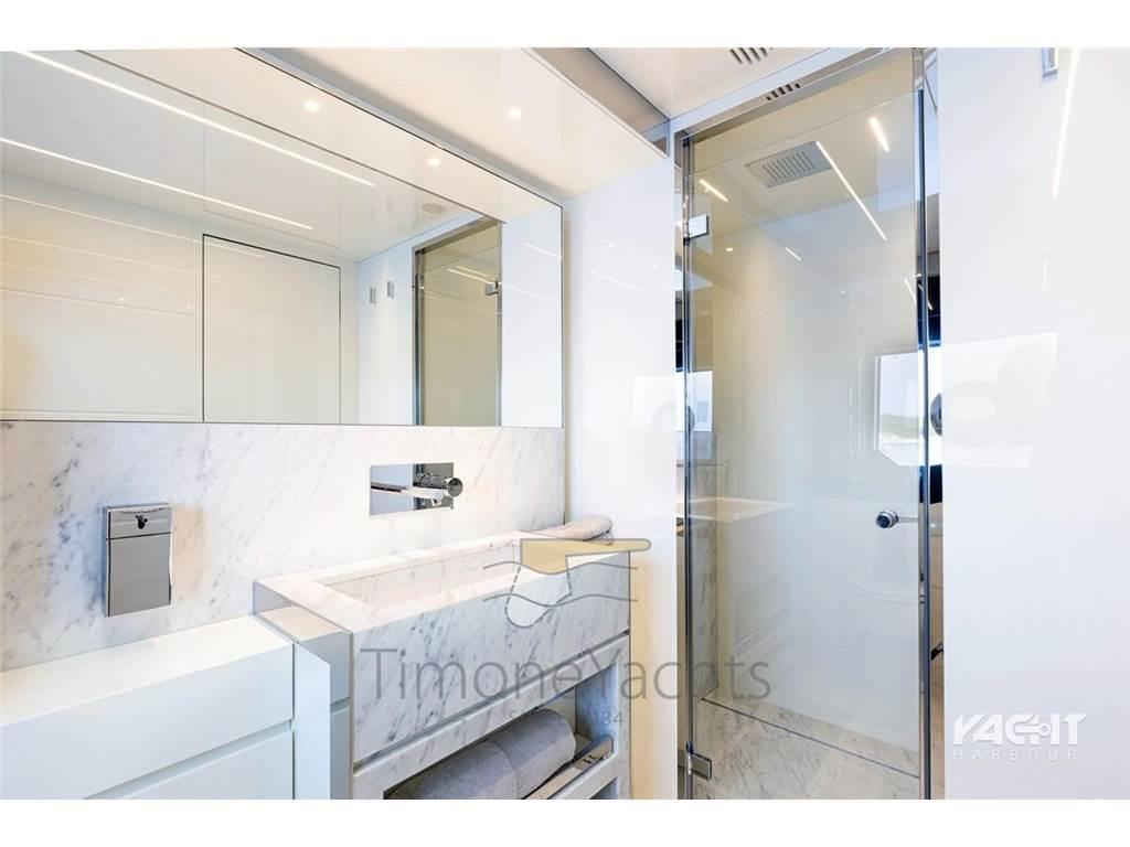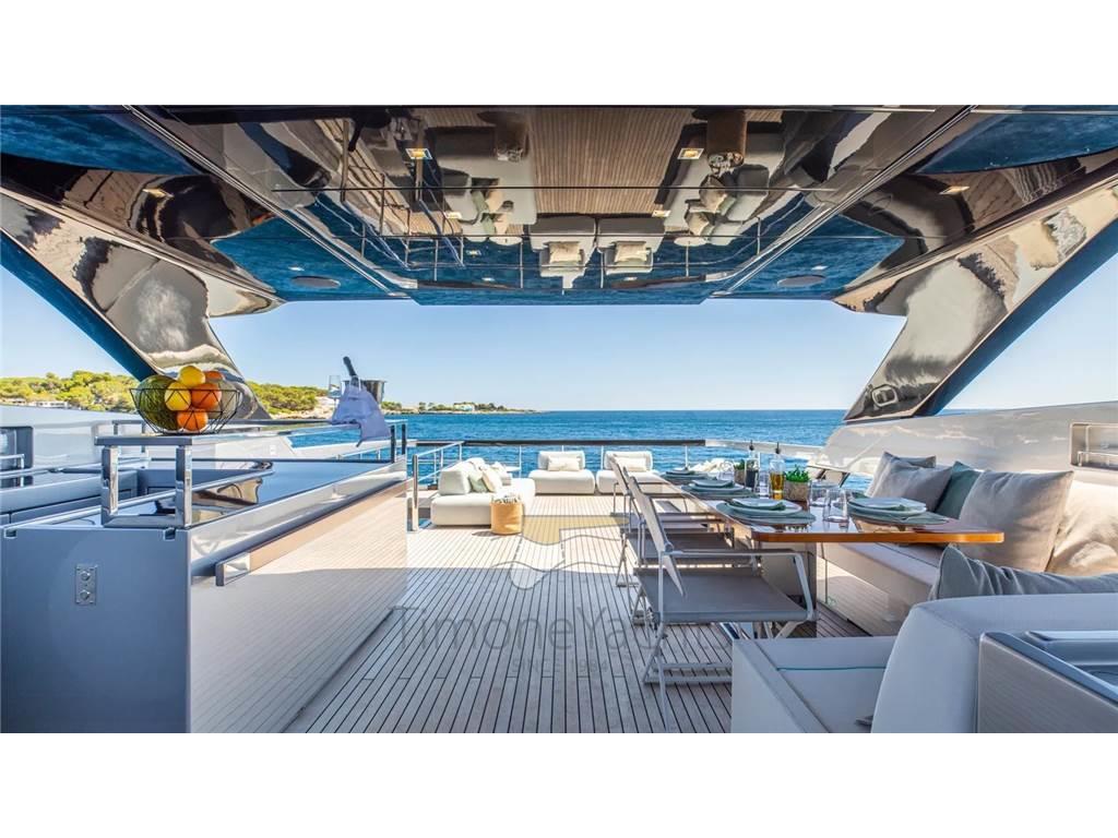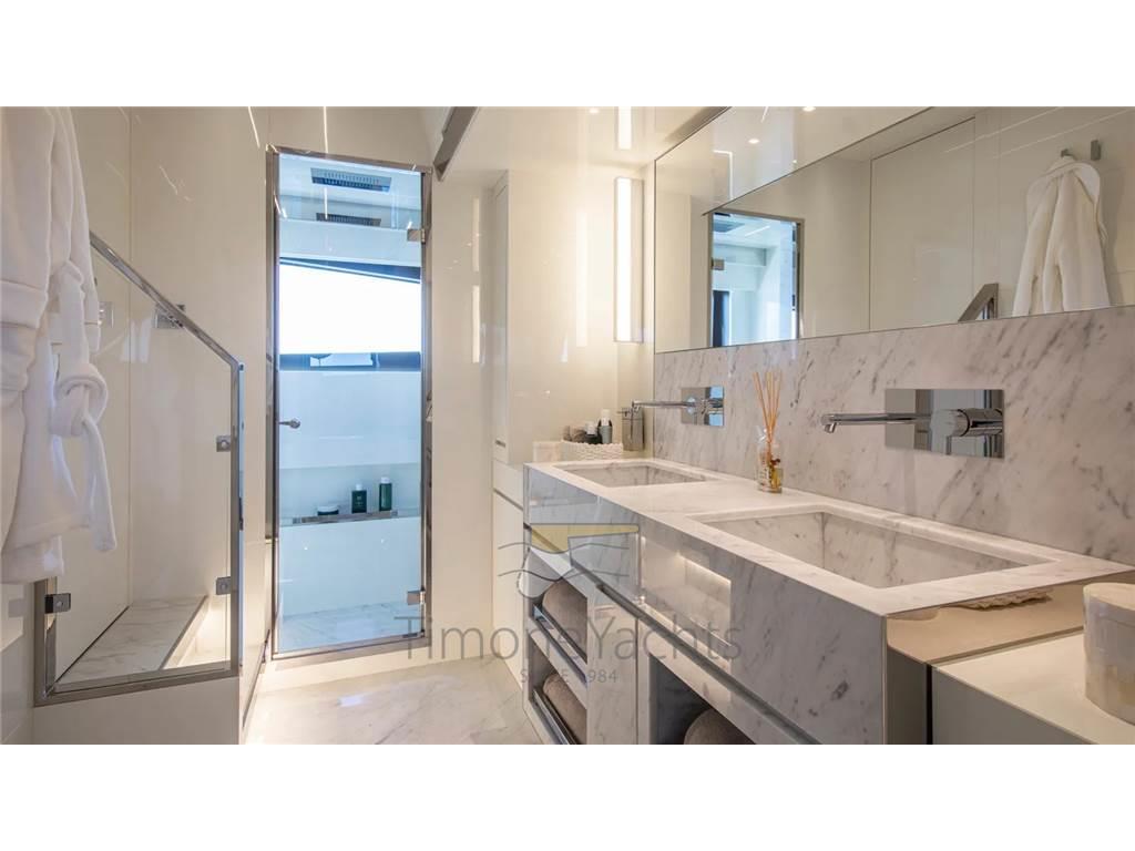 Notas internasponte principale: - bagno giorno - master cabin a prua con bagno interno ponte inferiore: - vip a centro nave con bagno interno - vip a centro nave con bagno interno - cabina ospiti con letto matrimoniale e bagno interno - cabina ospiti a letti gemelli e bagno interno crew area prodiera: - cabina singola - cabina doppia a castello - bagno - cabina doppia a castello - bagno Notas de la instrumentaciónAIS, 3 Comando motori elettronico, 2 Contametri catena, DSC vhf, Ecoscandaglio, GPS, Pilota automatico, Plotter, Radar.Notas de armamentoAllestimento tecnico e di coperta:Camminamenti laterali in teak, Doccia esterna, Elica di poppa - stern thruster, Elica di prua - bow thruster, Fari fissi a poppa, Faro orientabile, Flap idraulici, Garage per tender, Hard top, Impianto antincendio, Indicatori Flaps, Lavaggio catena, Lavandino nel Pozzetto, Luci subacquee, Moto d'acqua (Seadoo GTX 300), Passerella, 2 Porta laterale, Pozzetto Teak, Presa 220V banchina, Presa acqua banchina, 3 Stabilizzatori (2 x NG9 Sekeeper + fins (zero speed + underway)), Tavolo pozzetto, Tender (Williams Sportjet 435 150 hp), Tromba, 2 Winch tonneggio di poppa, 2 Winch tonneggio di prua. Dotazioni domestiche di bordo: Aria condizionata, BBQ/ Grill, Cassaforte, Clima reversibile, Collegamento internet, Controllo Domotica, Dimmer per Luci, Impianto acque nere, Pavimento interno in legno, Prese interne 12v, Prese interne 220v, Riscaldamento, Serbatoio Acque Nere, Telecamera, Termovisore (FLIR), 6 WC marino elettrico (+ crew). Intrattenimento: Antenna Satellitare TV, Decoder satellite, Digitale Terrestre, DVD, Home Theater, Impianto TV, Meccanismo saliscendi per TV, Radio AM/FM, Stereo, 6 TV. Cucina ed elettrodomestici: Congelatore, Forno, Frigorifero esterno, Frigorifero interno, Ghiacciaia, ICE Maker, Lavasciuga, Lavastoviglie, Macchina caffè, Microonde, Piastra in vetroceramica. Tappezzerie: Cappottina, Cuscineria completa, Cuscineria di poppa, Cuscineria di prua, Cuscineria fly, Cuscineria Pozzetto, Oscuranti, Tenda Elettrica, Tendalino, Zanzariere. |