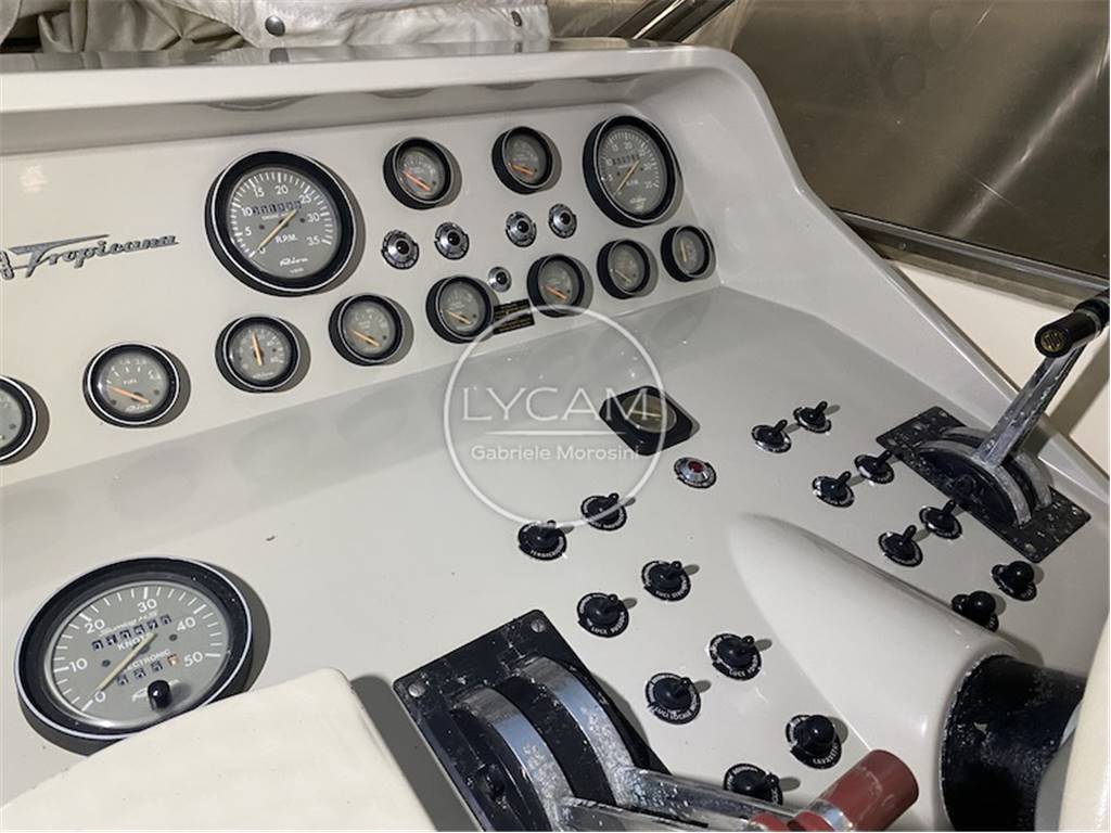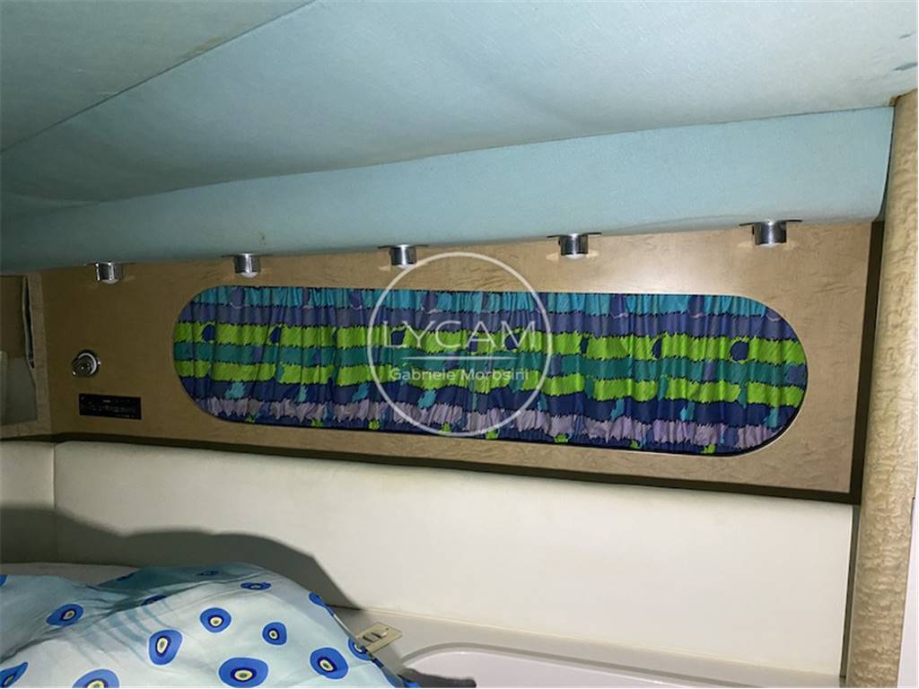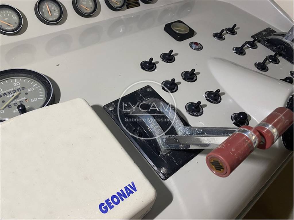 Notas internasSottocoperta: Cabina armatoriale con letto matrimoniale; bagno separato con wc e doccia; dinette trasformabile in letto matrimoniale; angolo cucina attrezzato. Notas de la instrumentaciónL'imbarcazione è dotata della seguente strumentazione:strumentazione controllo motori; Bussola; GPS; Ecoscandaglio; Radio-stereo. Notas de armamentoL'imbarcazione è equipaggiata con la seguente dotazione di armamento:Luci di navigazione; Tromba; plancetta in teak; Salpa ancora elettrico; Ancora e catena in acciaio; Tergicristalli; Carica batterie; Stacca batterie; Presa banchina 220V; Pompe di sentina automatiche; Cucina attrezzata con frigo; Tavolo pozzetto abattibile; Tendalino; Gruette in inox; Passerella manuale; Bitte; Scaletta bagno; Doccia pozzetto. |