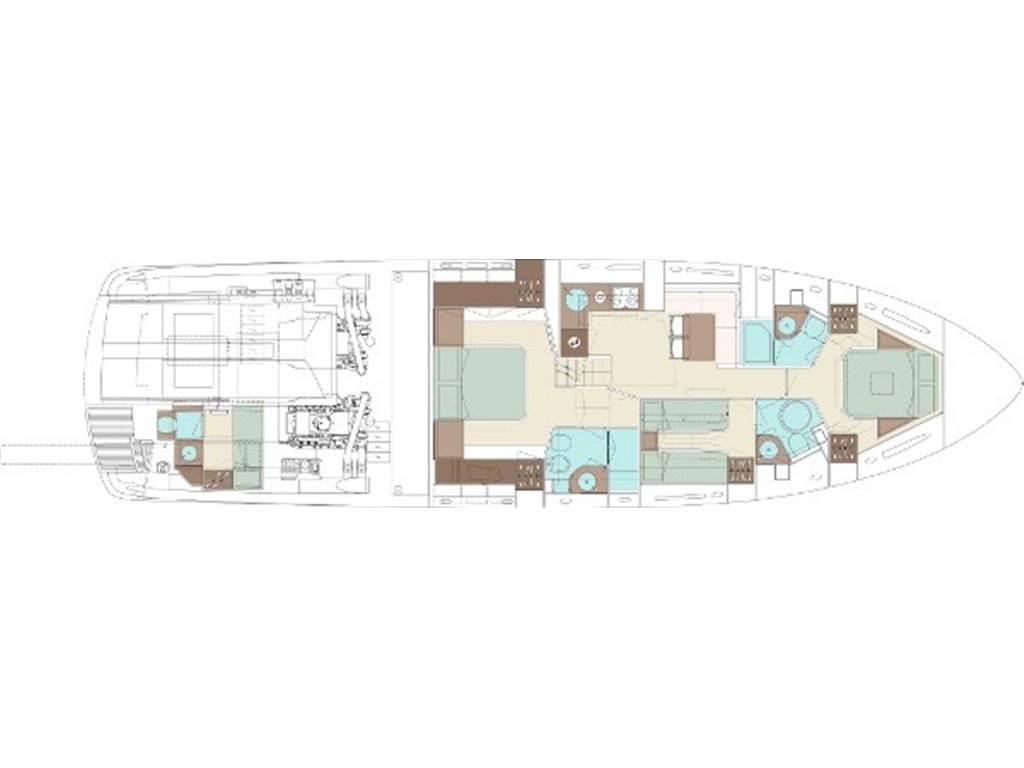 Notas internas1 Doppia in piano, 2 Matrimoniale italiana, 1 Cabina equipaggio, 3 Toilette. Persone trasportabili: 16.