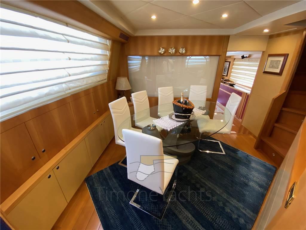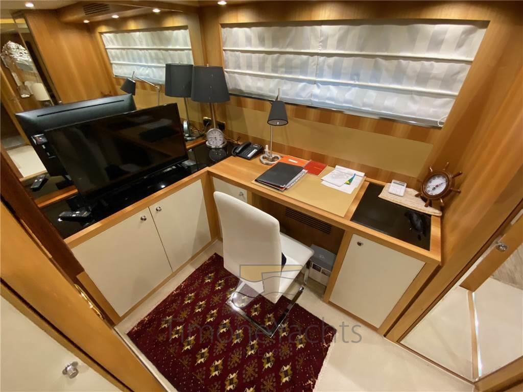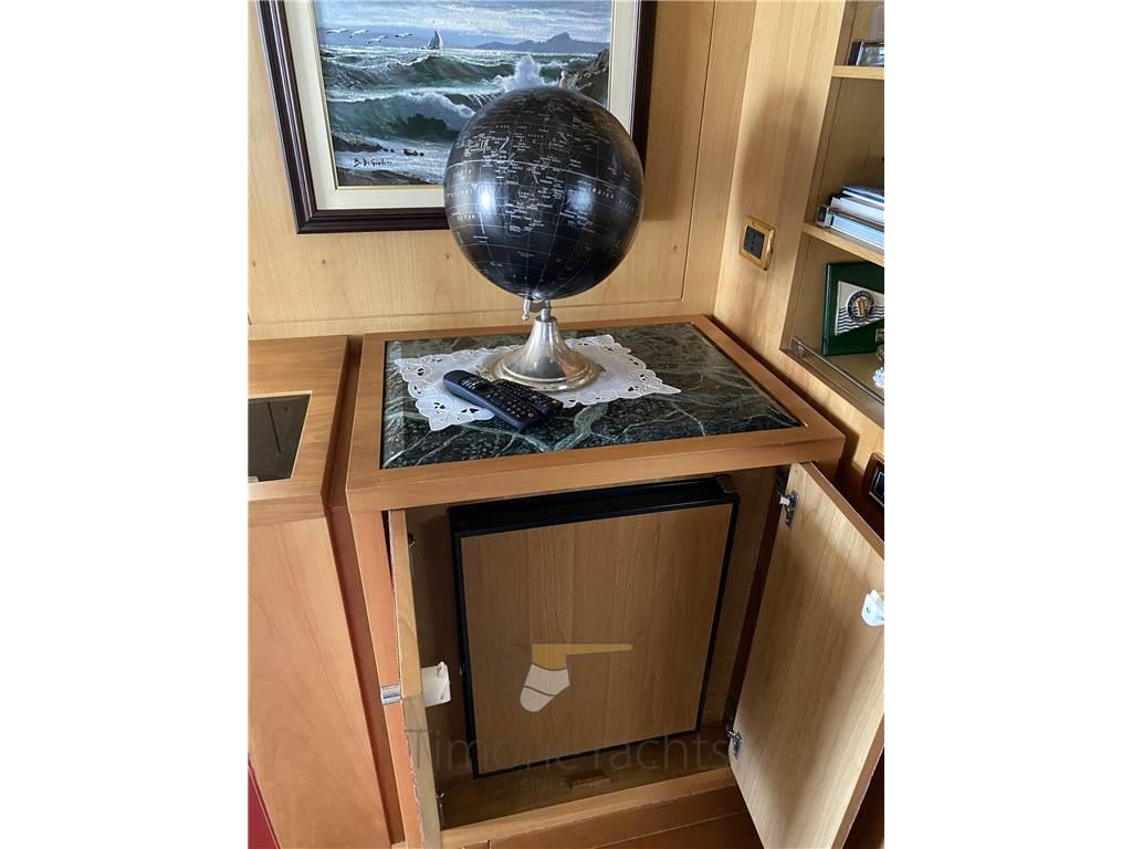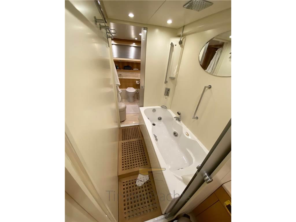 Notas internas- ingresso al salone da pozzetto, zona divaneria e zona pranzo divise da un vetro a gas che può oscurarsi/schiarirsi. - Bagno giorno antecedente la zona timoneria. - Cucina sul lato sx. Ponte inferioriore: - cabina armatoriale a centro nave con zona ufficio. Doppio bagno, ognuno in murata con proprio lavandino + wc + bidet, uniti al centro dalla zona vasca/doccia. - zona lavanderia cn lavatrice, asciugatrice e lavandino al posto della cabina di Dx - cabina ospiti doppia murata Sx con bagno con doccia e bidet - cabina Vip di prua con bagno con doccia e bidet Zona Crew: - cabina singola con cucinotto: piastra, lavandino, ampio storage per pentole, frigo bagno con doccia - cabina doppia letto castello Notas de la instrumentaciónBussola, 2 Comando motori elettronico, 2 Contametri catena, Contamiglia, DSC vhf, Ecoscandaglio, GPS, Pilota automatico, Plotter, Radar, Radio VHF.Notas de armamentoAllestimento tecnico e di coperta:Autogonfiabile, Camminamenti laterali in teak, Doccia esterna, Elica di poppa - stern thruster, Elica di prua - bow thruster, Fari fissi a poppa, Faro orientabile, Flap idraulici, Garage per tender, Gruette per tender su fly, Impianto antincendio, Indicatori Flaps, Lavaggio catena, Luci di cortesia, Luci subacquee, Passerella, Piattaforma, Pompa di sentina elettrica, Pompa di sentina manuale, 2 Porta laterale, Pozzetto Teak, Presa 220V banchina, Presa acqua banchina, Raddrizzatore, Scaletta da bagno, Tavolo pozzetto, Tender (Williams 445 jet (on separate negotiation)), Tromba, 2 Winch tonneggio di poppa, 2 Winch tonneggio di prua. Dotazioni domestiche di bordo: Aria condizionata, BBQ/ Grill, Cassaforte, Clima reversibile, Dissalatore (Idromar (1.536 hrs on March 15th 2023)), Impianto acque nere, Pavimento interno in legno, Prese interne 12v, Prese interne 220v, Riscaldamento, Serbatoio Acque Nere, 3 Telecamera (1 cockpit, 2 engine room), 4 WC marino elettrico. Intrattenimento: Antenna Satellitare TV, DVD, Home Theater, Impianto TV, Meccanismo saliscendi per TV, Radio AM/FM, Stereo, 3 TV. Cucina ed elettrodomestici: Congelatore, Forno, Frigorifero esterno, Frigorifero interno, Ghiacciaia, ICE Maker, Lavasciuga, Lavastoviglie, Lavatrice, Macchina caffè, Piastra elettrica, Piastra in vetroceramica. Tappezzerie: Bimini (on fly, electric), Cappottina, Cuscineria completa, Cuscineria di poppa, Cuscineria di prua, Cuscineria fly, Cuscineria Pozzetto, Oscuranti, Teli copri finestra, Tendalino. |