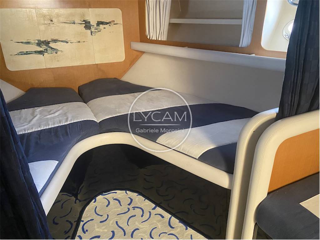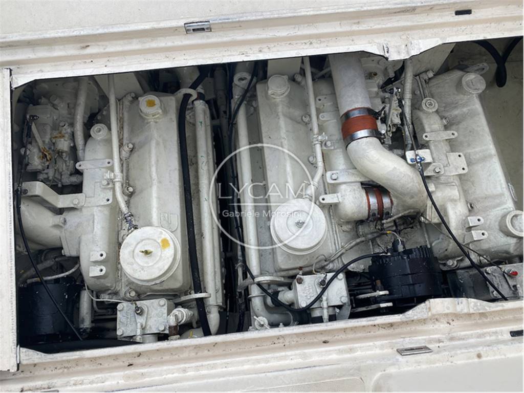 Notas internasSottocoperta: cucina attrezzata; Bagno privato con doccia e wc elettrico; Cabina open space con 4 posti letto. Notas de la instrumentaciónStrumentazione originale VDO per Riva (contagiri, manometri pressione olio motori, manometri pressione olio invertitori, termometri temperatura acqua, amperometri, conta ore); Bussola; VHF; Ecoscandaglio; Impianto HI-FI; Leve gas motori.Notas de armamentoLuci di navigazione; Bitte ormeggio; Flaps; Salpa ancore elettrico; Tendalino chiusura pozzetto; Tendalino parasole con candelieri in acciaio; Scaletta bagno; Doccia pozzetto; Pompe sentina automatiche; 2 Frigoriferi; Lavandino; Autoclave; Caricabatterie; Presa mancina 220V; Dotazioni di sicurezza; Parabordi. |