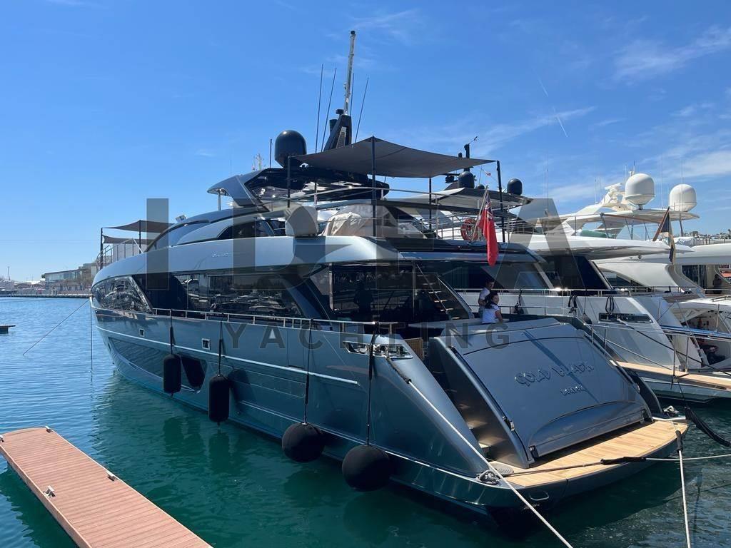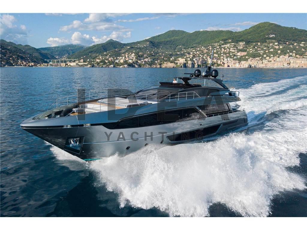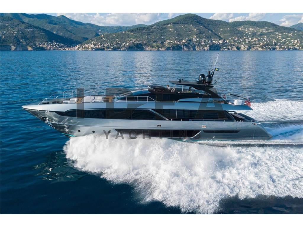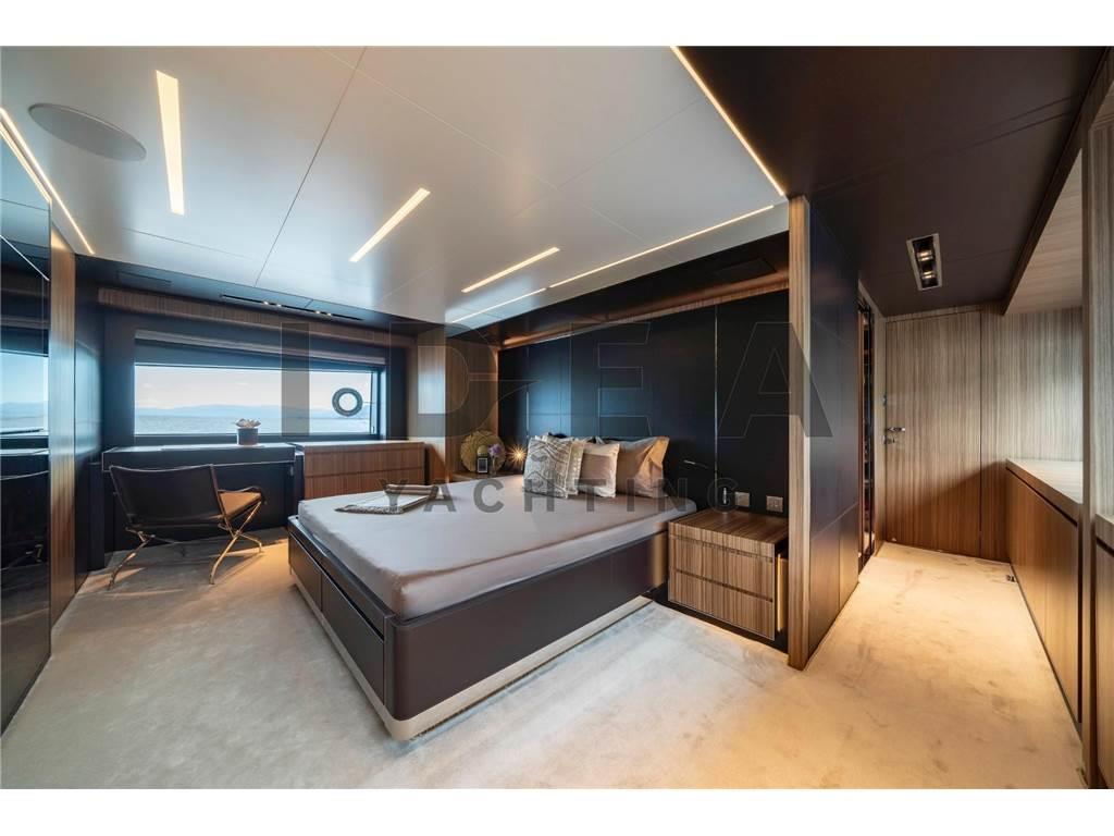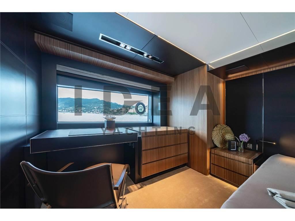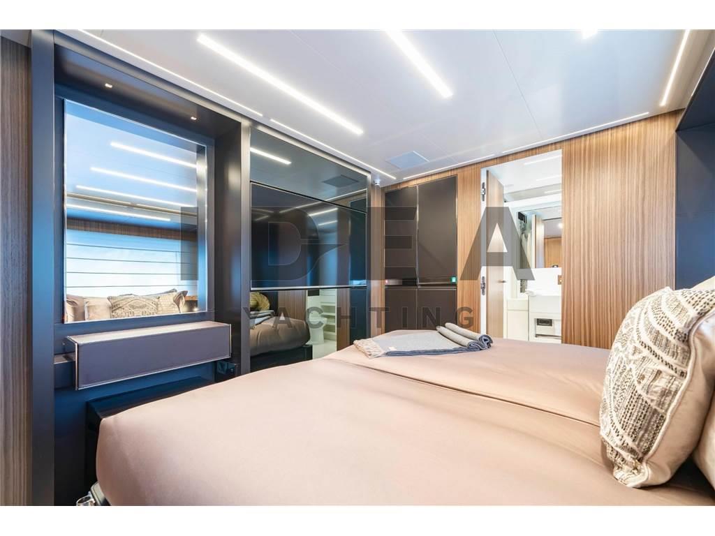 Notas de armamentoAllestimento tecnico e di coperta: Allarme fumo/gas, Allarme motore, Allarme sentina, Ancora, Camminamenti laterali in teak, Caricabatterie (Automatic for generators), Doccia esterna, Doppia timoneria, Elica di poppa - stern thruster (Side Power 32hp), Elica di prua - bow thruster (Side Power 32hp), Faro orientabile, Garage per tender, Hard top, Luci di cortesia, Passerella (Hydraulic), Piattaforma, Pompa di sentina automatica, Pompa di sentina elettrica, Pompa di sentina manuale, Porta ingresso, Pozzetto Teak, Presa 220V banchina, Presa acqua banchina, Ripetitore strumentazione (N°4 Simrad IS42), Salpa Ancore Elettrico, Scaletta da bagno, 2 Stabilizzatori (Seakeeper), Tavolo pozzetto, Tender (Williams Sportjet 435), Tromba, Winch Elettrico, 2 Winch tonneggio di poppa, 2 Winch tonneggio di prua.