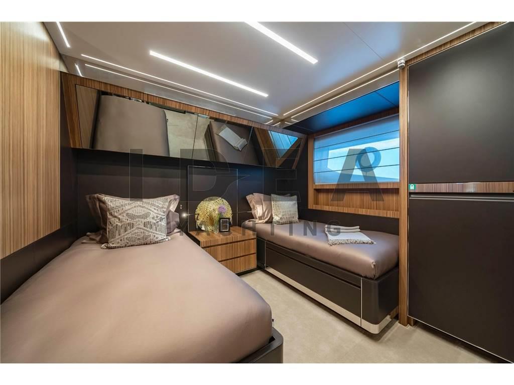 Tappezzerie: Cuscineria completa, Cuscineria di poppa, Cuscineria di prua, Cuscineria fly, Cuscineria Pozzetto, Tendalino (in the flybridge and in the bow).
