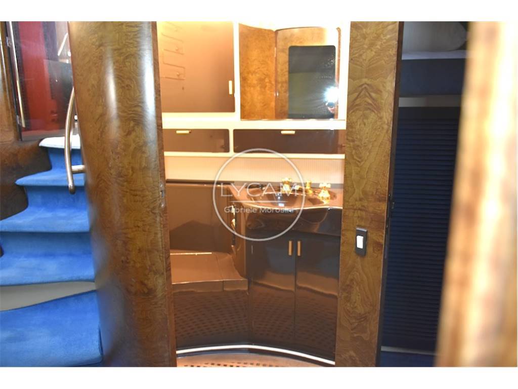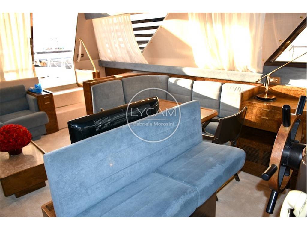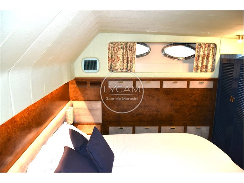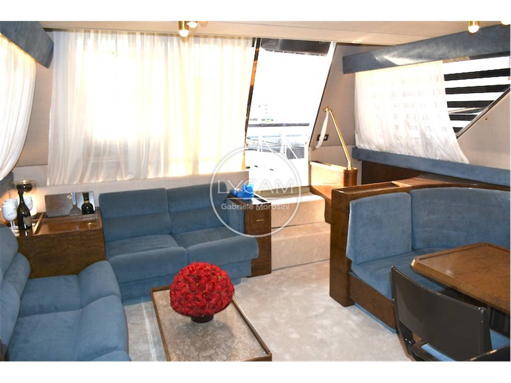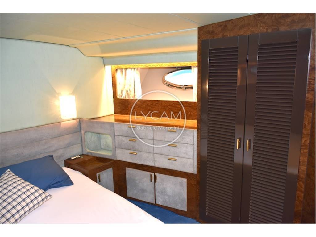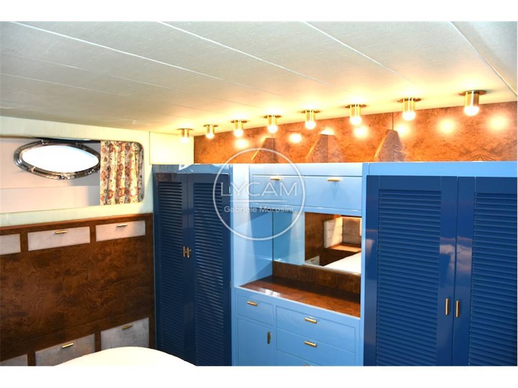 Notas internasFly: postazione comando sul fly, sedile pilota e passeggeri, prendisole. Coperta: prendisole di prua, spazioso pozzetto in teak con tavolo pranzo e sedie Riva pieghevoli, all'interno dinette con tavolo pranzo, divani e postazione di comando. Sottocoperta: 1 cabina armatore matrimoniale di poppa con bagno separato, 1 cabina ospiti matrimoniale a prua con bagno separato, 1 cabina ospiti con 2 letti singoli e bagno, cabina per 2 equipaggio; cuscineria di prua, cuscineria Fly, tavolo e sedie per pozzetto personalizzate Riva ,set piatti tazzine ed altro Rosenthal personalizzate Riva, celini nuovi in shantung di seta colore acqua marina come in origine, materassi cuscineria ed altro tutto nuovo