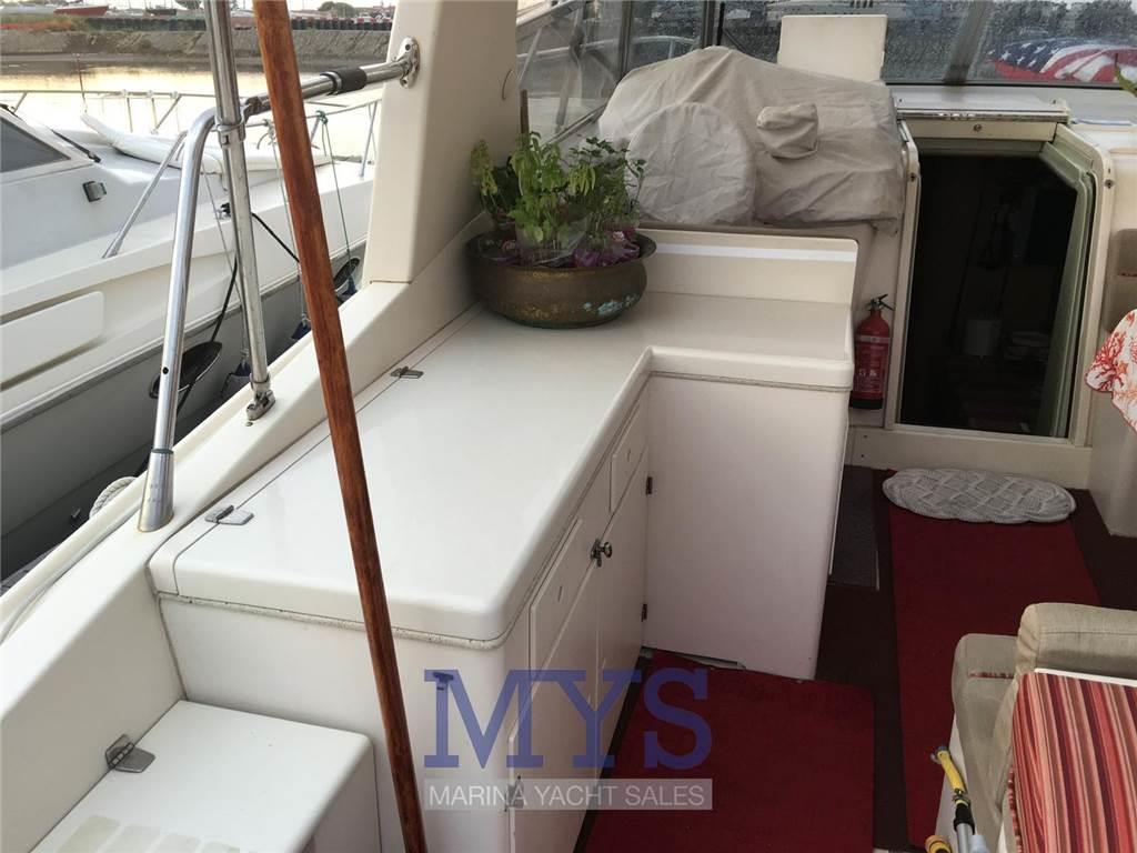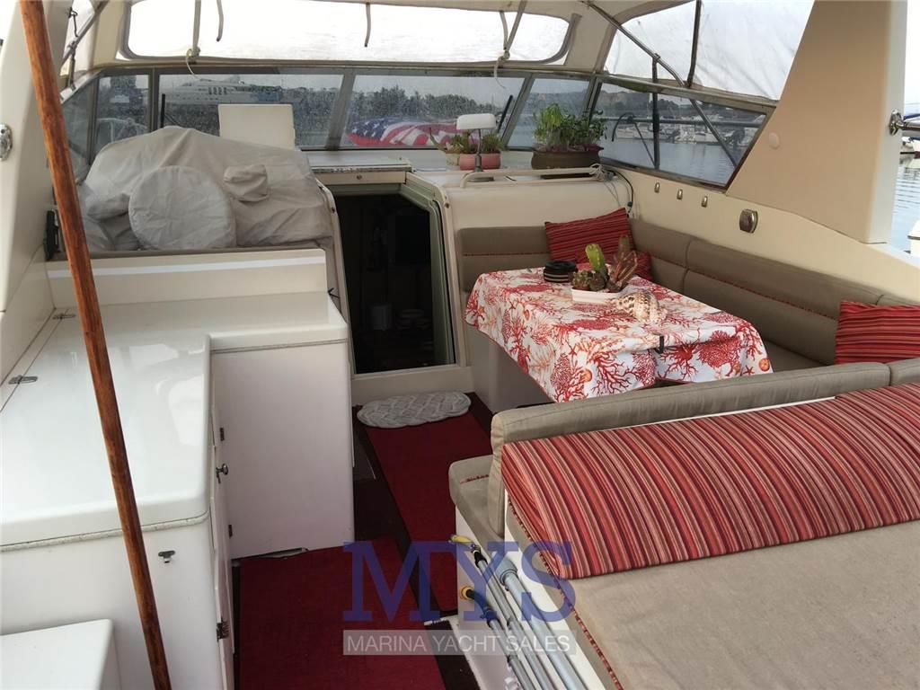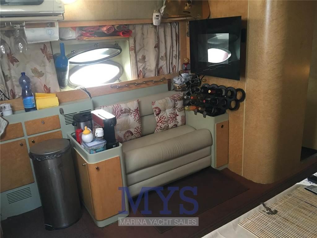 Notas internasCabina di prua con letto matrimoniale a penisola, armadi, TV e bagno dedicato, completo di wc elettrico, doccia e lavandino Cabina ospiti lato destro con letto singolo Bagno separato per gli ospiti dotato di Wc elettrico, lavello e doccia Cucina completa di fuochi a gas, lavello, Forno a microonde, frigoriferi, ghiacciaia e ice maker. Dinette a L con tavolo Notas de la instrumentaciónAncoraBussola GPS Ecoscandaglio Pilota automatico VHF Salpancora Elettrico Flaps idraulici Presa 220v da banchina Caricabatterie 8 Batterie Prese interne 12v e 220v Radio AM/FM Stereo 2 TV Cucina interna ed esterna Lavastoviglie Autoclave Aria condizionata Boiler Generatore 12kw Notas de armamentoCappottinaCuscineria completa Cuscineria di poppa Cuscineria di prua Tendalino Doccia esterna Piattaforma Scaletta da bagno Tavolo Salone Abbattibile |
