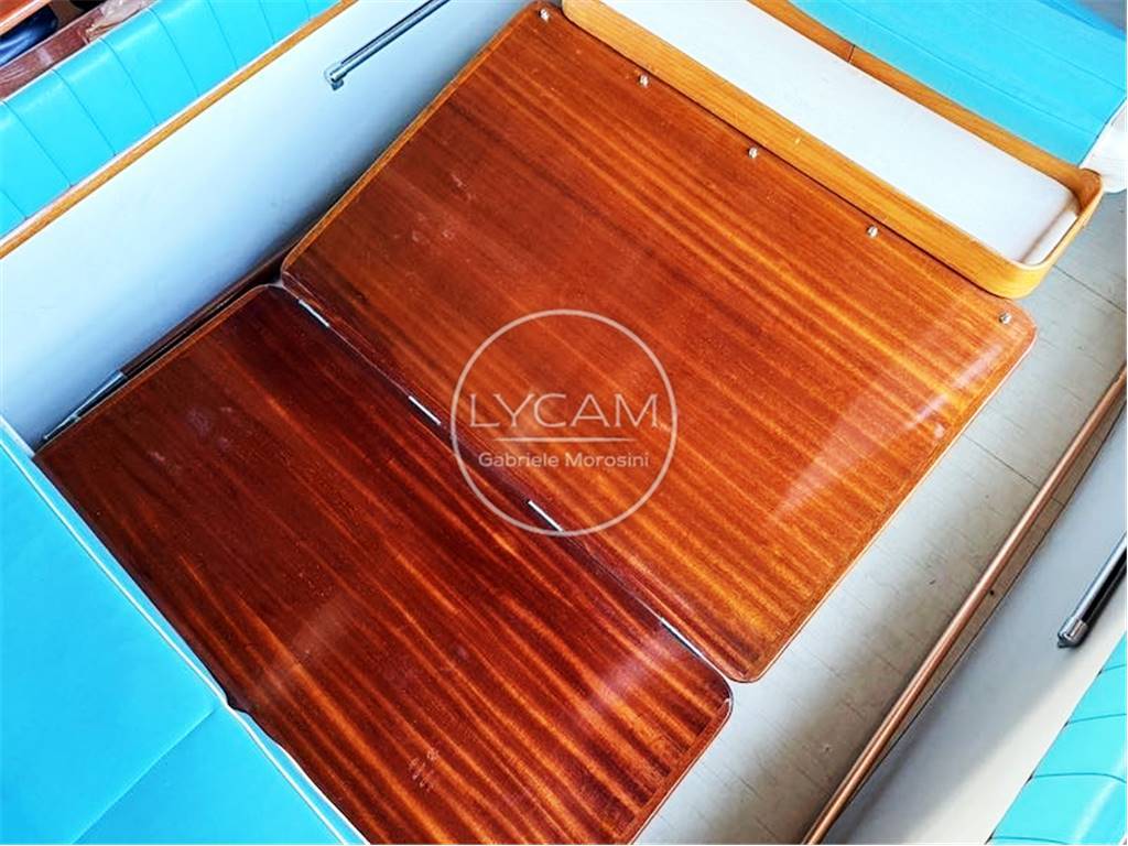Notas de armamentoLa barca è equipaggiata delle seguenti dotazioni di armamento: Luci di navigazione; Luce di fonda; Pompa sentina automatica; Specchietto retro visore; Scaletta bagno in legno; Sirena; Volante originale a calice interamente bianco; tendalino; Asta in legno per livello benzina; Telo copertura totale scafo; Blower; Batteria; Asta portabandiera; Mezzomarinaio; Cuscineria