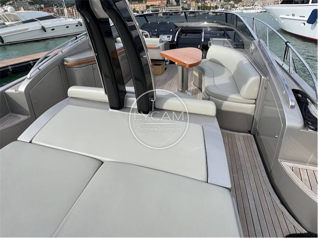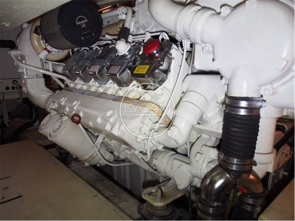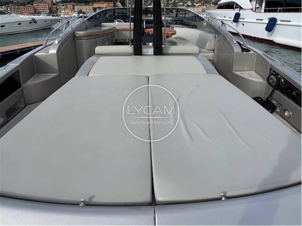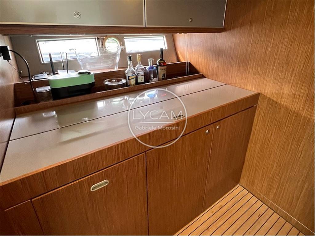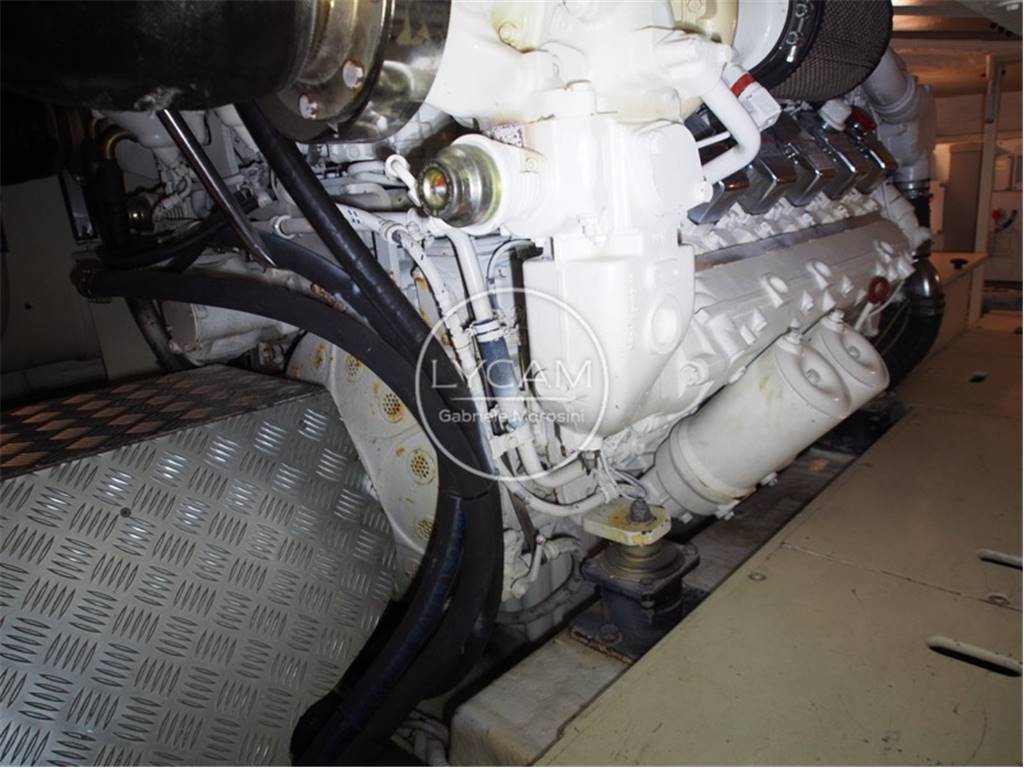 Notas de armamentoDissalatore; Aria condizionata caldo/freddo in ogni ambiente; Elica di prua e di poppa; Flaps idraulici; Passerella idraulica; Scaletta bagno idraulica; Winch tonneggio di poppa; Pozzetto in teak; Doccetta a poppa e a prua; Pompe di sentina automatiche; Impianto acque nere; Presa acqua banchina; Presa 220V banchina; Carica batterie; Stacca batterie; Salpa ancora elettrico; Lavaggio catena ancora; Autoclave; Boiler; Prese interne 12V e 220V; Generatore; 4 fuochi elettrici in vetroceramica; Forno a microonde; Lavastoviglie; Frigorifero pozzetto; Icemaker; Frigorifero dinette; TV lcd cabina armatore e dinette; Antenna TV; Prendisole completi di prua e poppa; Tendalino elettrico; Luci Led pozzetto; Tendalino parasole di poppa; Telo copri cruscotto; Dotazioni di sicurezza.