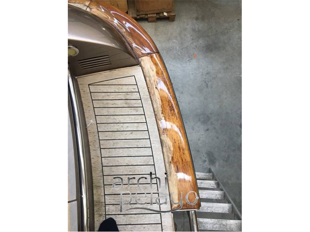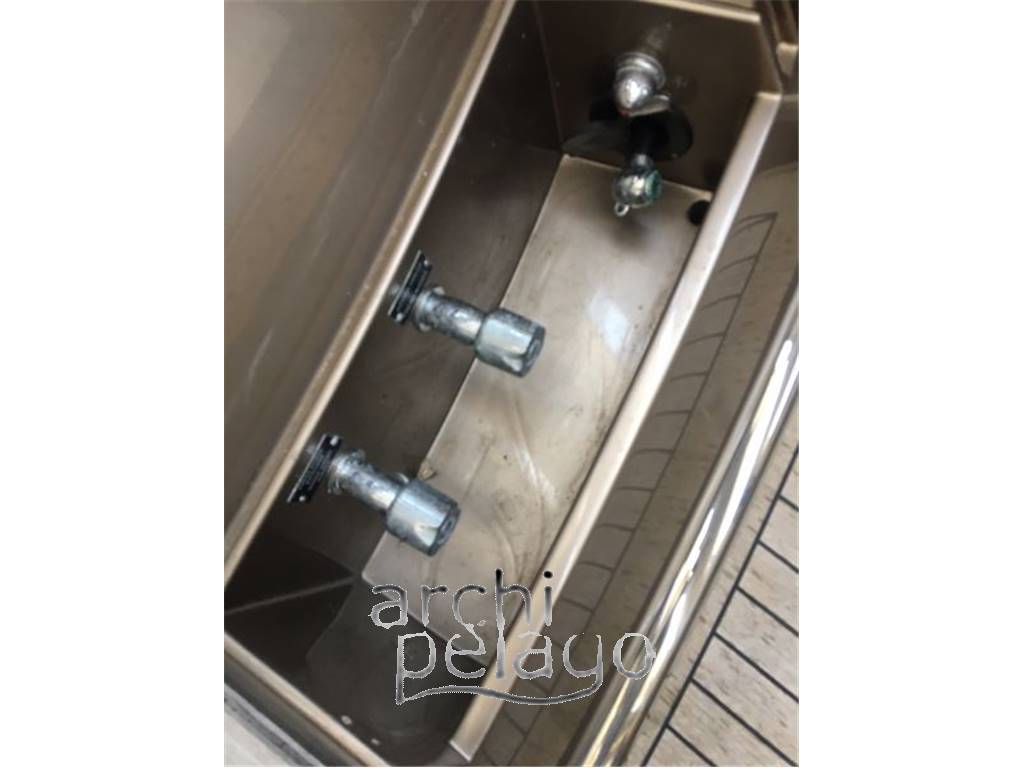Notas internas-Interni in legno e cuoio, calpestio in mogano - Cabina armatoriale a prua con guardaroba - Bagno con lavello, wc e doccia. - Cuccetta per equipaggio. CUCINA: - Frigo - Piano cottura VCR n° 2 fuochi - Ice maker - Lavello Notas de la instrumentaciónELETTRONICA:- Bussola - Ecoscandaglio - VHF - Autopilota - Indicatore angolo di barra - GPS - Plotter - EPIRB Notas de armamentoACCESSORI:- Elica di prua - Timoneria idraulica - Ancora - Catena ancora - Tergicristalli - Pompa di sentina elettrica - Generatore (h 650) - Boiler - Batterie (2023) - Batterie generatore (2023) - Caricabatterie - Antenna Wi-fi - Sourround Sound System - Impianto stereo - TV (2023) - Aria condizionata - Bimini elettrico - Cuscineria pozzetto - Prendisole di poppa - Tavolo in pozzetto - Passerella - Scaletta bagno - Doccetta in pozzetto - Zattera salvataggio |
