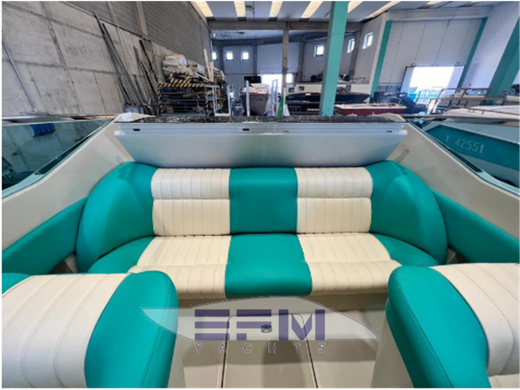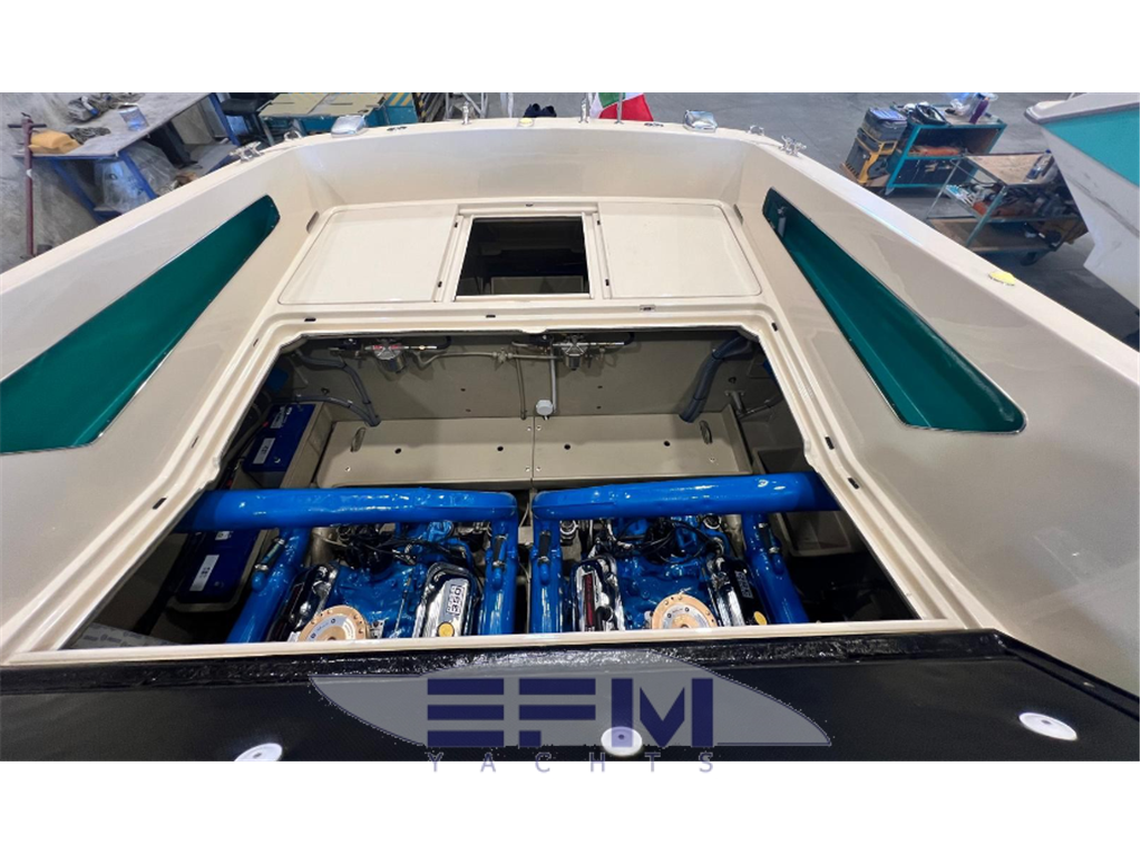 Notas internasNotas de la instrumentaciónDue motori aspirati a benzina tipo Riva Crusader Marine mod. TE 350 con potenza di 285hp ciascuno.Trasmissione diretta in linea d’asse con interposto invertitore di marcia tipo Velvet Drive rapporto di riduzione 1.1. La propulsione è controllata dalla strumentazione (due contagiri) nonché da un sistema di allarme sonoro e visivo per la pressione olio motori e la temperatura acqua motori; strumentazione per il controllo del livello carburante dei due serbatoi e per il controllo della funzionalità degli alternatori. Impianto elettrico a 12 V D.C con due batterie ricaricabili dagli alternatori del motore destro e sinistro ; fusibili a protezione delle varie linee sono posizionati sotto il cruscotto e due stacca batterie possono disconnettere completamente dalle batterie tutti gli utilizzatori ad eccezione delle pompe di sentina automatiche (due). Sono presenti 3 estintori portatili e un sistema di intercettazione e commutazione per i due serbatoi inox del carburante. Notas de armamentoQuesta imbarcazione Riva è stata maniacalmente riportata allo splendore originale dalla attuale proprietà (ex dirigente della Cantieri Riva) senza tralasciare nessun dettaglio.La revisione generale fatta dall'attuale proprietario nel 2024 ha interessato: 1) Scafo e coperta - trattamento anti-osmosi all’opera viva e finitura in vernice bianca a due componenti nella zona di prora e sui fianchi e antivegetativa rossa nella zona poppiera. - opera morta riverniciata con colore originale e due mani di vernice trasparente antigraffio. - tutte le parti antisdrucciolo in coperta e sul trincarino sono state sostituite con nuove parti originali antisdrucciolo- invasatura originale nuova. 2) Motori e trasmissione - i due motori sono stati accuratamente ricondizionati e riverniciati; sostituite cinghie – giranti della pompa acqua mare – puntine – candele – spazzola distributrice – filtri vari – carburatori revisionati – tubolature sui motori nuove – tubolature aspirazione benzina nuove -invertitori Velvet Drive ricondizionati – assi elica ed eliche bilanciati – nuove boccole per supporti assi – nuove baderne – timoneria revisionata completamente. 3) Impianto elettrico - tutto l’impianto elettrico è stato integralmente rifatto con cavetteria nuova- nuovi porta fusibili – nuove pompe di sentina con galleggiante – nuovo WC elettrico – nuovi trasmettitori per livello carburante – nuovi interruttori a levetta – nuove luci di navigazione – nuova pompa per la doccetta – batterie e stacca batterie nuovi. 4) Tappezzeria e armamento di coperta - tutte le tappezzerie presenti sono nuove e originali – cielino della cabina sottocoperta nuovo – bottaccio paracolpi in inox nuovo – tutti gli elementi in metallo presenti sono stati ricromati o rilucidati – Tenda parasole con tubi nuova e telo bleu di copertura nuovo-parabrezza ricromato |