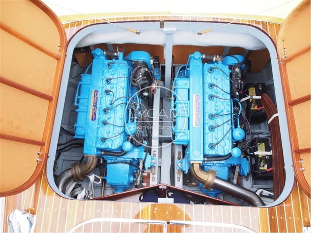 Notas internasNotas de la instrumentaciónDoppia strumentazione dei motori originale Riva e revisionata. Impianto elettrico ricostruito totalmente. Bussola. Sirena, Faro profondità.Notas de armamentoDotazioni sicurezza complete, Scaletta originale mogano, W.c. manuale, Capote a scomparsa, Telo copertura totale, Invaso in legno, Sospendite, Sci in legno, Parabordi, Asta verifica benzina in legno, Pompe sentina automatiche. |