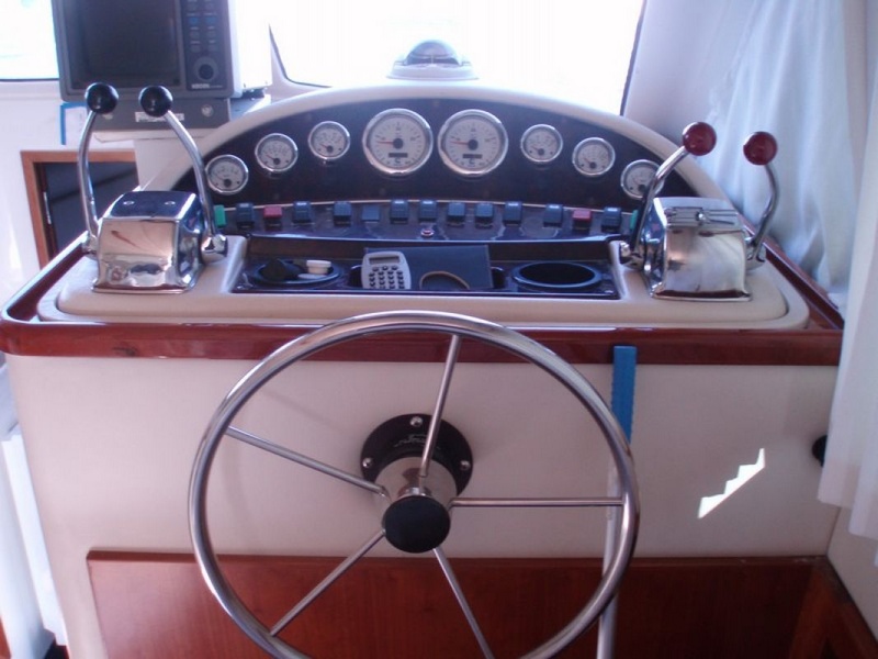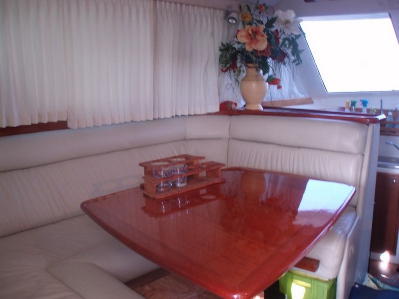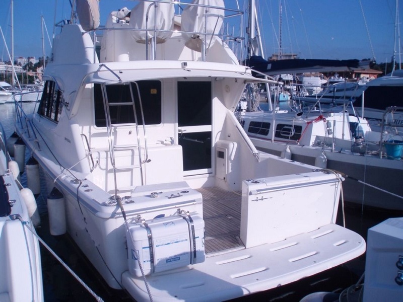 RIVIERA interiores son madera-335 FORESHIP cabina doble baño con ducha, gran cocina equipada con comedor-GPS PLOTTER RADAR RADIO de VHF AUTOPILOT CD PROBE con altavoces externos nevera-cocina con horno calefacción nadar plataforma SUN cojines-BIMINI |
