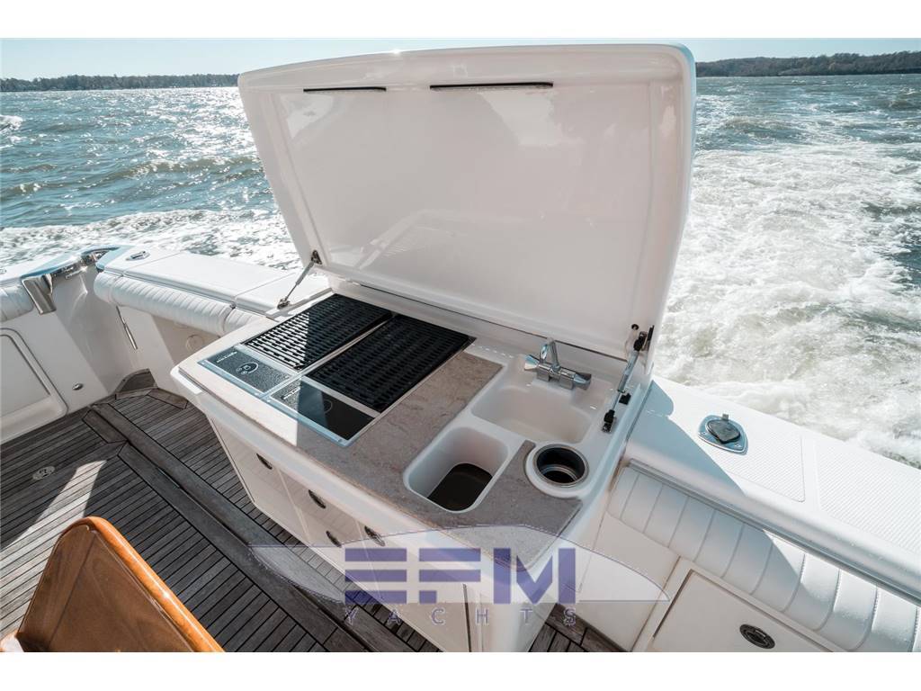 Key Features Include: • Triple Volvo IPS600s with 2x Joystick Docking Stations (780hrs) • Onan 21.5kW Generator • 3/3 Layout with Full Beam Master + CREW QUARTERS • Mezzanine Seating • Air-Conditioned Flybridge with Sun Roof, TV, Large Dinette, and Wet Bar • GARMIN Electronics Package + Thermal Night Vision • SAT TV • Watermaker • 141sqft Teak Cockpit and Swim Platform with Transom Door • Transom BBQ Station and Large Cockpit Live Well • Custom Release Fighting Chair • Cockpit Sunshade • Outriggers • GOST Security System |