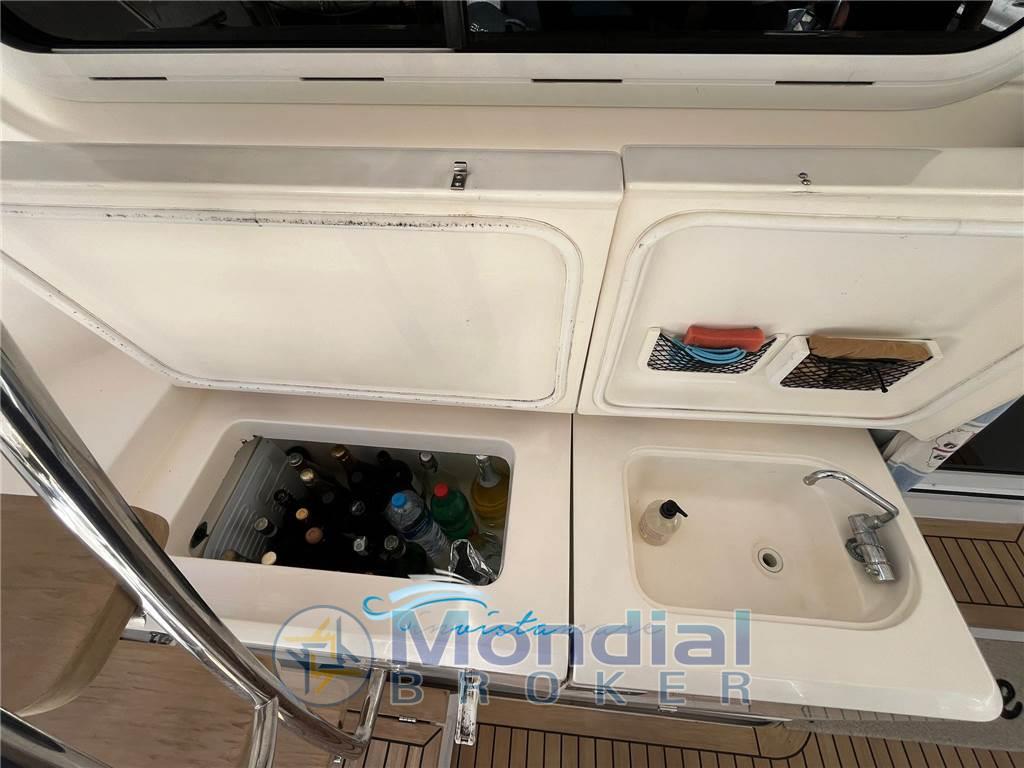 Notas de armamentoAria condizionata, Bimini, Boiler, Clima reversibile, Congelatore, Copripozzetto, Cucina (elettrica), Cuscineria di prua, Cuscineria fly, Cuscineria Pozzetto, Dissalatore (120 l/h), Dotazioni di sicurezza entro 50 miglia, Frigorifero interno, ICE Maker, Impianto acque nere, Impianto TV, Inverter, Lavastoviglie, Macchina caffè, Microonde, Portacanne, Prese interne 12v, Prese interne 220v, Radio AM/FM, Serbatoio Acque Nere, Teli copri finestra, Telo copriconsolle, Telo coprisedile, 2 TV, Vasca del vivo, Vasca pescato, WC marino elettrico