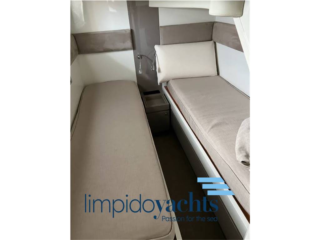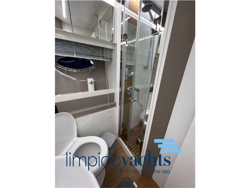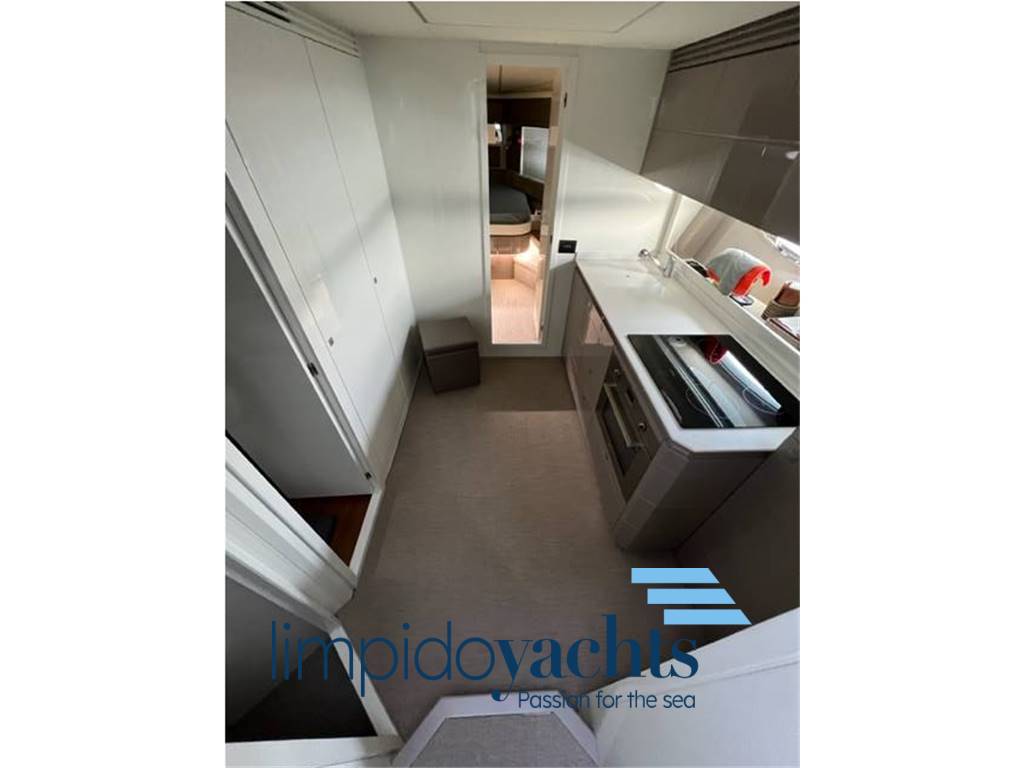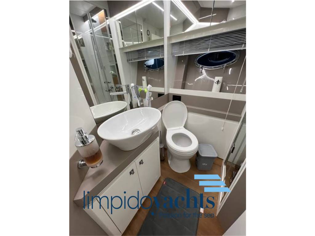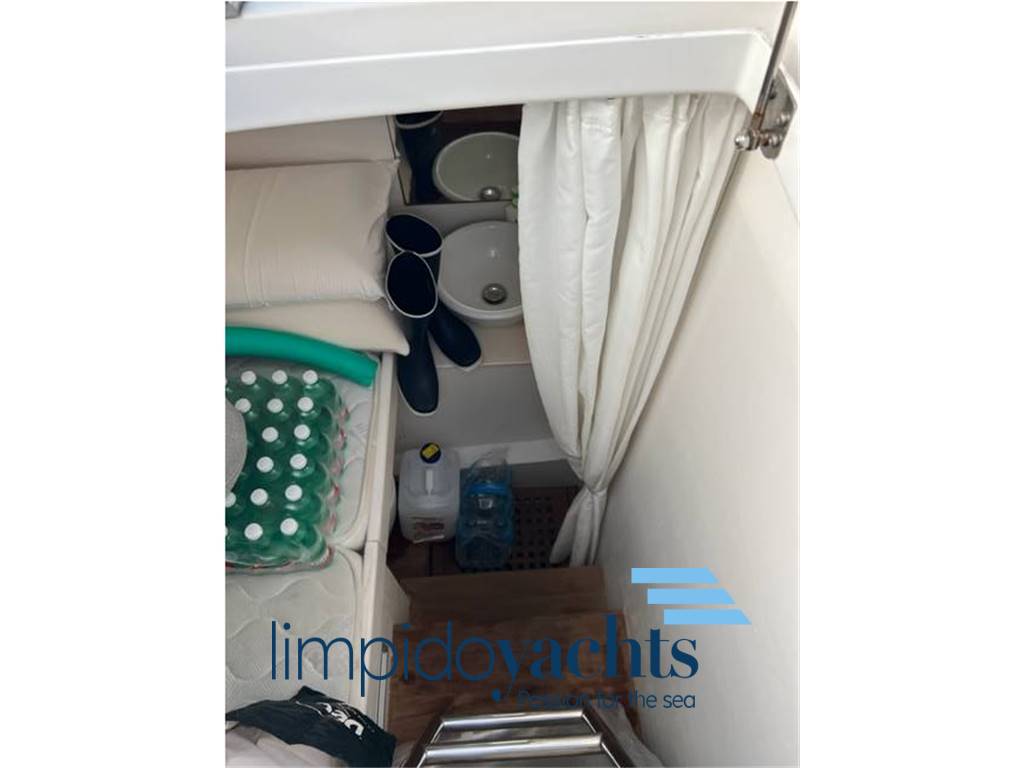 Notas internas2 Cabine con letti in piano armadi e gavoni Dinette con cucina completa di piano cottura induzione, forno, Frigorifero a colonna con freezer, mobile cambusa con cassetti mobili Entrata secondo bagno indipendente con lavello wc box doccia, Vetrinetta con illuminazione all'apertura per quadro elettrico utenze e servizi Cabina marinaio con passaggio esterno a poppa Notas de la instrumentaciónBussola, Radar, Pilota automatico, Raymarine GPS/ecoscandaglio, Joystick dimanovra, contametri catena Flaps, trim, computer di bordo, VHF, telecamera termica per navigazione notturna, angolo di barra, telecamera per video controllo sala macchine, sistema TS easyset, sistema TS Notas de armamentoAria condizionata in tutti gli ambienti indipendente, Verricello con ancora e catena, generatore 6 kW, Boiler, Allarme motore,Allarme sentina, Ancora (acciaio), Prese interne 12v, Prese interne 220v, Impianto acque nere, Luci di cortesia, Pompa di sentina automatica, Presa 220V banchina, Presa acqua banchina |