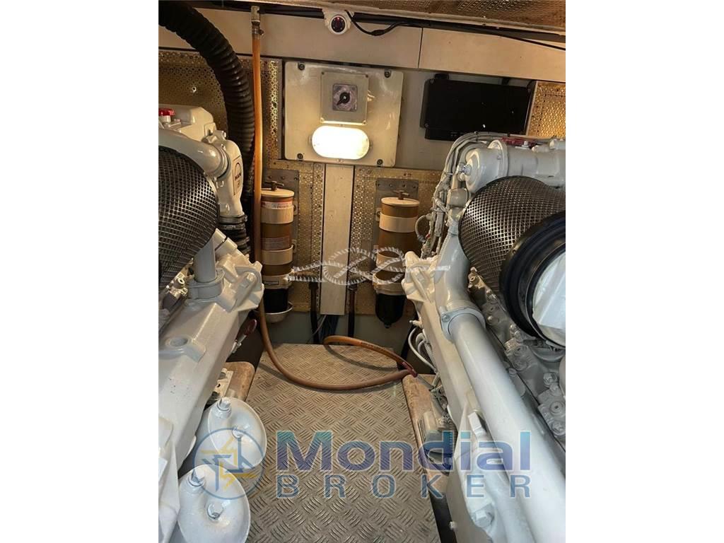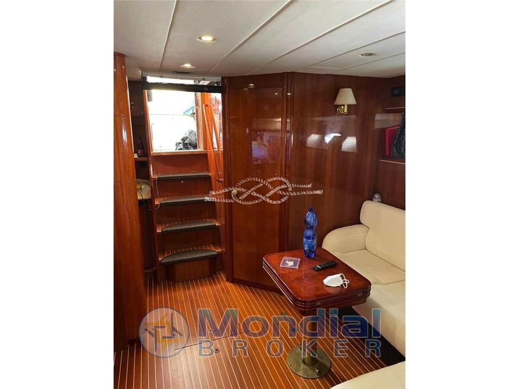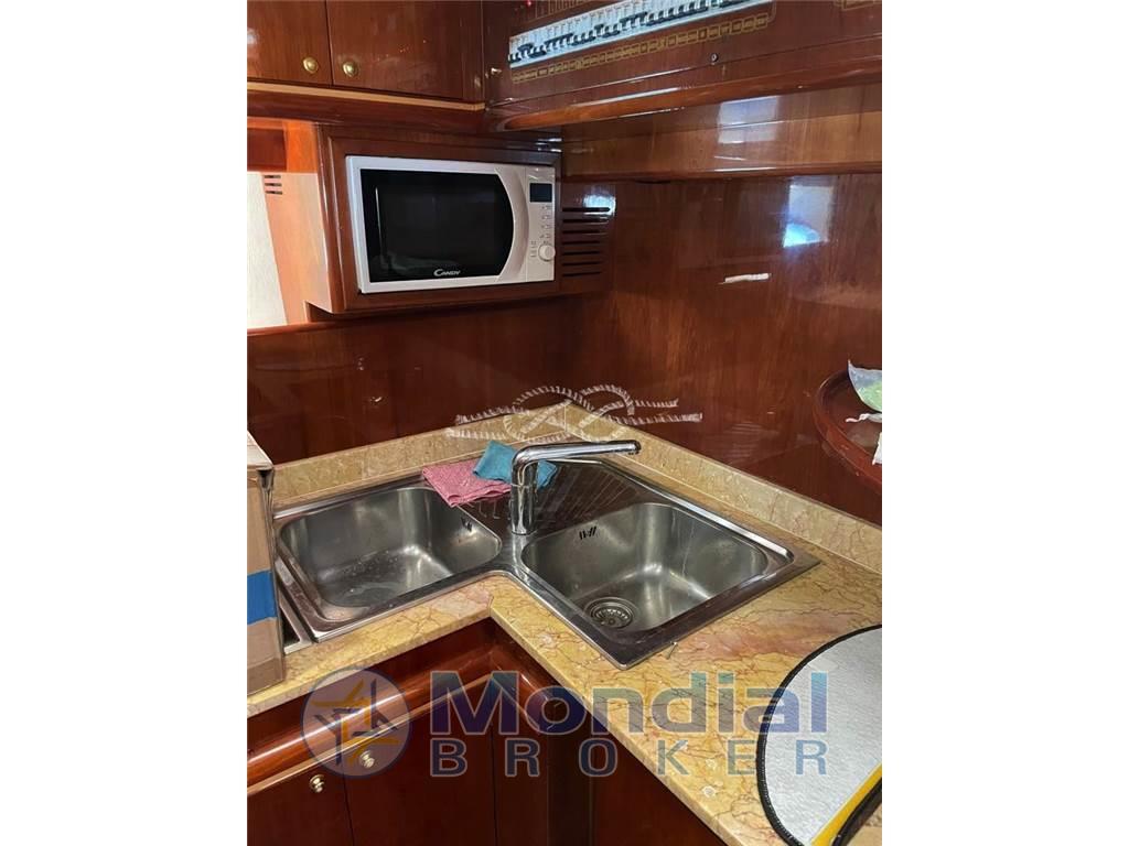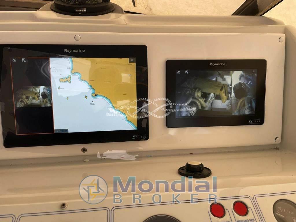 Notas internasAlloggio equipaggio a prua con servizi. Notas de la instrumentaciónGPS/Plotter Raymarine - ecoscandaglio Raymarine - pilota automatico Simrad - VHF RaymarineNotas de armamentoPasserella elettro-idraulica - telecamera sala motori (2022) - antenna SAT TV Seatel - antenna TV Glomex - TV LCD a scomparsa nel salone - TV LCD cabina armatoriale - microonde - piano cottura elettrico tre fuochi - frigo - mobile bar nel pozzetto con lavello, piastra elettrica due fuochi - elica di prua elettrica - gruppo elettrogeno Kohler 8 kW - aria condizionata. |