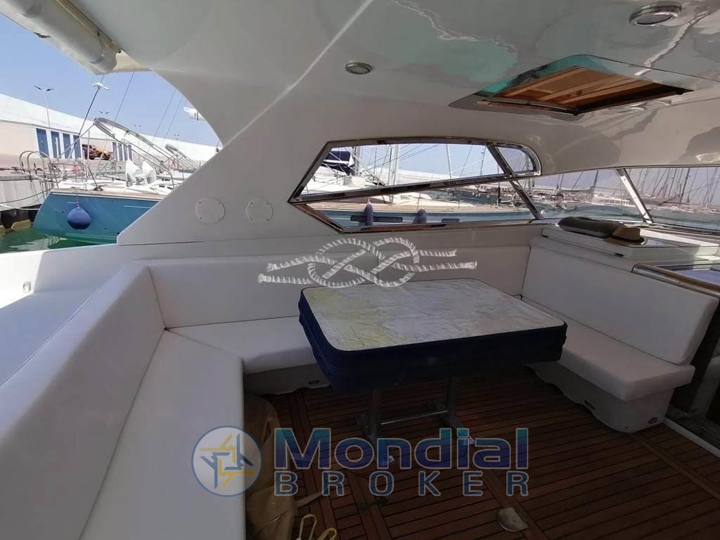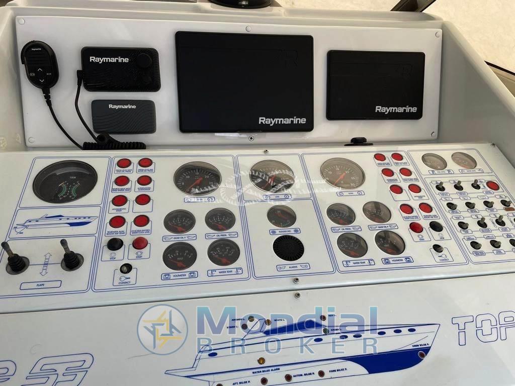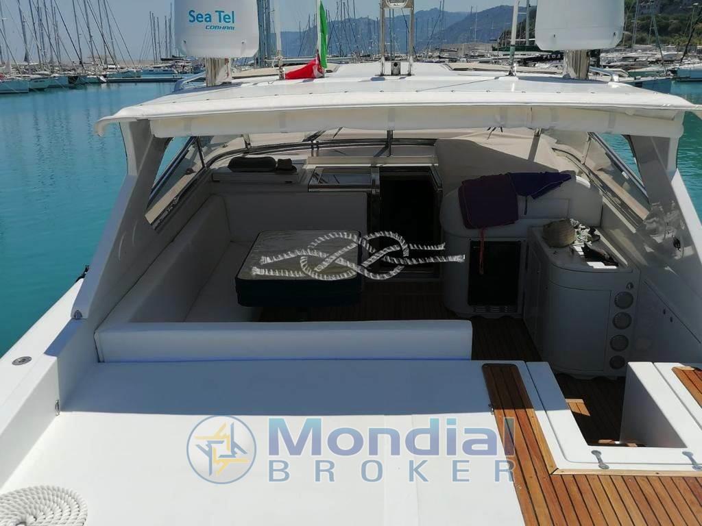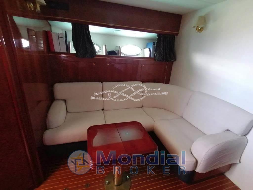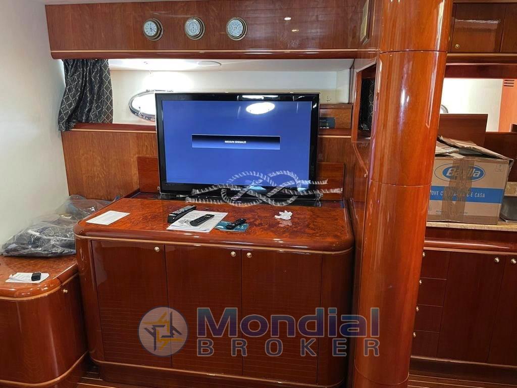 Notas internasAlloggio equipaggio a prua con servizi. Notas de la instrumentaciónGPS/Plotter Raymarine - ecoscandaglio Raymarine - pilota automatico Simrad - VHF RaymarineNotas de armamentoPasserella elettro-idraulica - telecamera sala motori (2022) - antenna SAT TV Seatel - antenna TV Glomex - TV LCD a scomparsa nel salone - TV LCD cabina armatoriale - microonde - piano cottura elettrico tre fuochi - frigo - mobile bar nel pozzetto con lavello, piastra elettrica due fuochi - elica di prua elettrica - gruppo elettrogeno Kohler 8 kW - aria condizionata. |