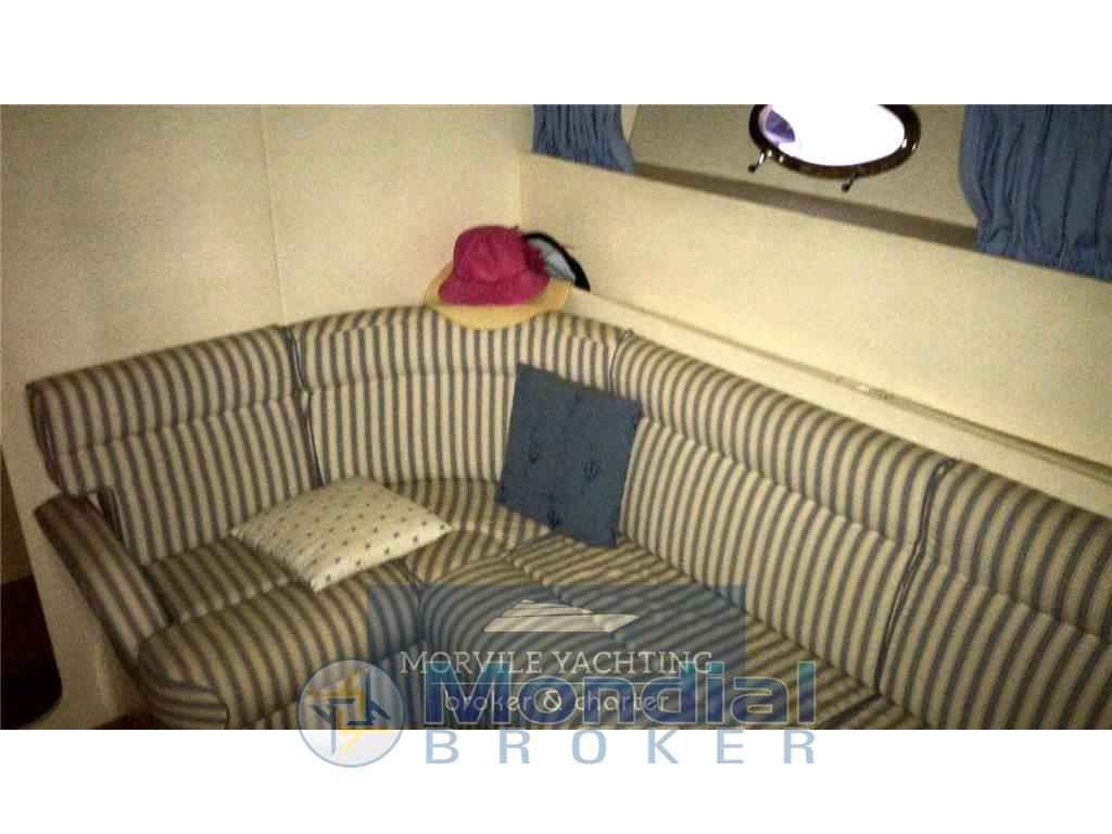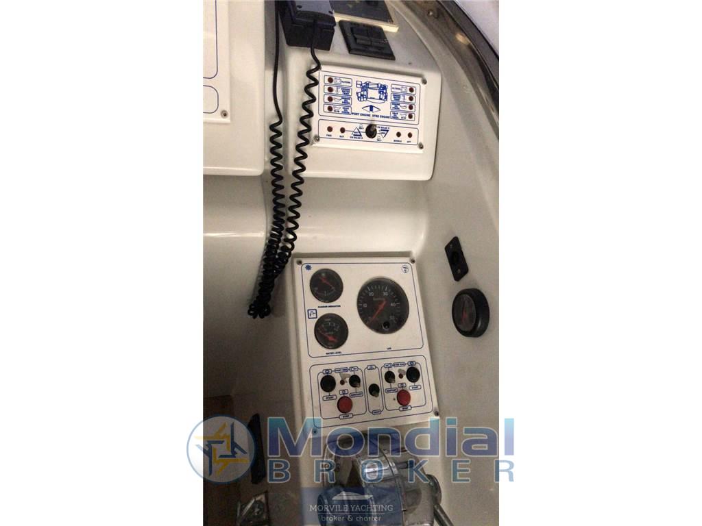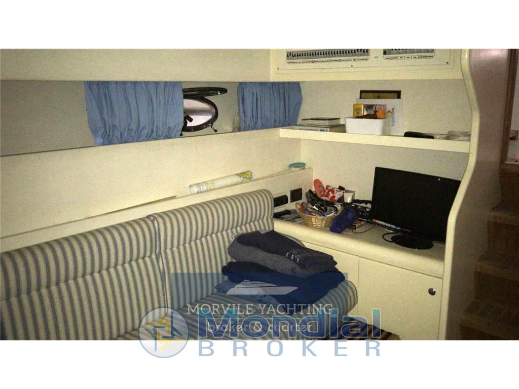 Notas internasCabine: 2 Toilette: 2 Impianto stereo Impianto TV Tv Bagni: 2 Cabine: 2 Cucina Notas de la instrumentaciónImpianto elettronico- Ecoscandaglio - Log-contamiglia - Centrale di navigazione - Plotter - Pilota automatico - Radio - Bussola - Lettore CD - GPS - Altoparlanti di pozzetto - VHF Baromentro Bussola Comandi flaps Contamiglia Ecoscandaglio GPS GPS-Plotter Log Vhf Notas de armamentoCoperture/Tendalini- Tendalino pozzetto Equipaggiamenti Elettrici - Presa corrente a terra - Generatore Equipaggiamenti interni - Pompa di sentina elettrica - Forno - Pompa di sentina manuale - Microonde - WC marino - WC elettrico - Acqua calda - Frigorifero - Caricabatterie Dotazioni Esterne - Pozzetto in teak - Doccia pozzetto - Passerella idraulica - Autogonfiabile - Cuscineria pozzetto - Tavolo pozzetto - Scaletta bagno Cuscineria Frigorifero esterno Scaletta: 1 Tavolo nel pozzetto |