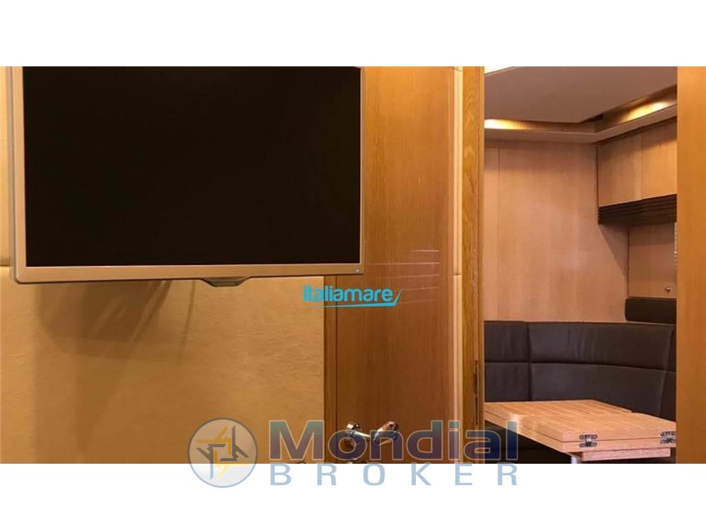 Notas de armamentoAltoparlanti, Aria condizionata, BBQ/ Grill, Boiler, Clima reversibile, Congelatore, Copripozzetto, Cucina, Cuscineria completa, Cuscineria di poppa, Cuscineria di prua, Digitale Terrestre, Dotazioni di sicurezza entro 6 miglia, Fornello, Frigorifero esterno, Frigorifero interno, Impianto acque nere, Impianto TV, Inverter, Microonde, Prese interne 12v, Riscaldamento, Stereo, Telecamera, Telo copriconsolle, Telo coprisedile, Tendalino, TV, WC marino elettrico, Strumentazione elettronica di navigazione: Bussola, Ecoscandaglio, Joystick, Plotter, Radio VHF