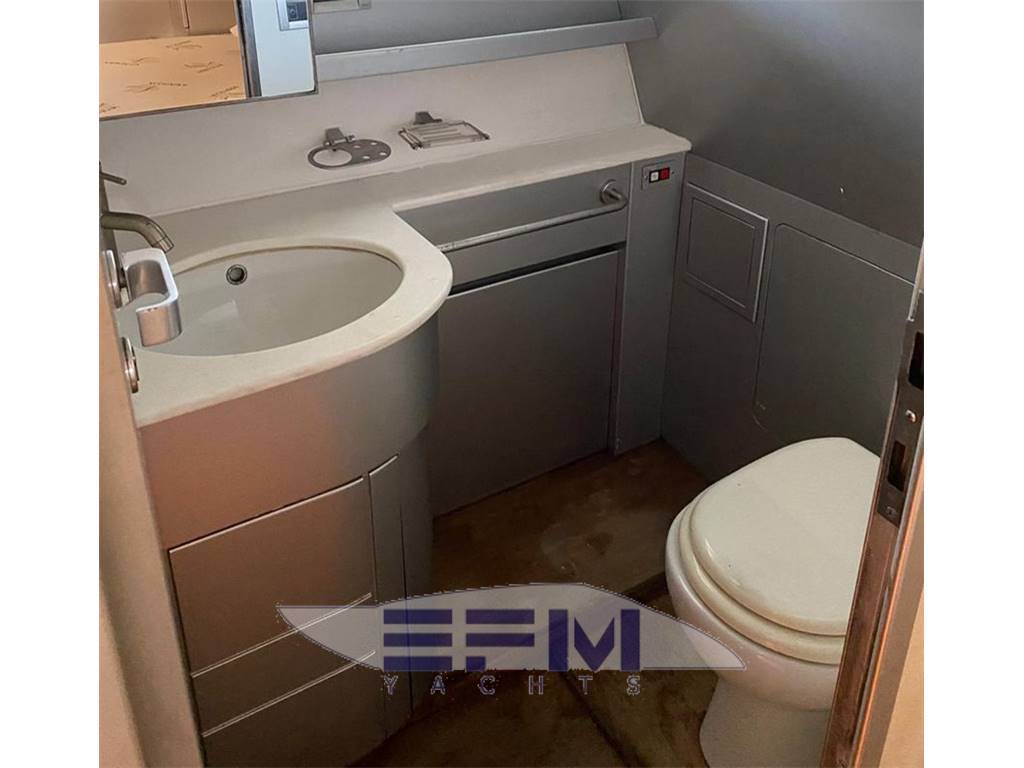 Notas internasNumero bagni 4 Posti letto 8 +1 Tipologia cabine 2 x Matrimoniale italiana 1 x Matrimoniale francese 1 x Doppia in piano 4 x Toilette con doccia 1 x Cabina equipaggio 1 x Toilette Equipaggio Notas de la instrumentación- Aria Condizionata a doppio ciclo- Passerella Idraulica a scomparsa - Plancetta Poppa in Teak - Scala Bagno - Pozzetto in Teak - Tendalini - Cuscini Prendisole - Doccia Esterna calda e fredda - Tonneggio - Salpancora - Forno a microonde - Frigo (1 nel pozzetto) - Grill - Elica di Prua - Luci subacquee - VHF - Radar - Autopilota - Gps - Ecoscandaglio - Angolo di Barra - Impianto Tv - Dvd - Stereo CD Notas de armamentoCOSTRUZIONEStruttura in vetroresina multiassiale impregnata con resina vinilestere e stratificata a mano - Coperta e murate in sandwich di Airex - Longheroni e madieri di rinforzo stratificati e resinati - Strato esterno in gel coat isoftalico neopentilico - Carena trattata con antivegetativa. COPERTA E POZZETTO Roll bar vetroresina - Antenne,e illuminazione pozzetto - Parabrezza con cristalli temperati - Tergicristalli con lavavetri - Passo d’uomo in cabina armatore in acciaio inox – Battagliola alta in acciaio inox - Boccaporto al gavone di prua - Paratia stagna anticollisione - Bottaccio in acciaio inox - Portello di accesso alla cabina di poppa - Doccetta a poppa - Cappa pozzetto poppa - Cappetta copricruscotto - Tenda parasole con struttura inox - Zone prendisole a prua e poppa con materassini – Dinette con divano a “C” e tavolo ribaltabile - Mobile di servizio in pozzetto con: frigorifero, lavello, pattumiera e gavone - Console comandi di emergenza - Luci di navigazione - Luci perimetro pozzetto - Tromba – Scaletta bagno a poppa - Passerella elettroidraulica - Piattaforma di poppa con selle per tender – Luci segna gradini specchio poppa – Teak nel pozzetto - Teak piattaforma di poppa e gradini – SALONE: SOGGIORNO/PRANZO Divano – Tavolo pieghevole con pouf – Mobile Bar - Mobiletti pensili – Illuminazione e prese di corrente - TV colori 26” LCD – Stazione meteo (Orologio - Barometro – Igrometro) - Radiostereo CD con 4 altoparlanti di cui 2 nel pozzetto - Oblò con tendaggi. CABINA ARMATORE Letto matrimoniale con ripostiglio sotto il piano, burlone rivestito, materasso, due guanciali e copriletto - Parure letto - Mobiletti pensili - Luci di lettura - Armadio – Mobile - TV 20” - Radiostereo – Illuminazione e prese di corrente - Cassaforte - Specchio - Oblò (2) con tendaggi. BAGNO ARMATORE Armadietti e ripiani - Lavabo in VTR con miscelatore - Aspiratore - Specchio - WC elettrico - Illuminazione e prese di corrente - Doccia separata con carabottino di teak - Oblò con tendina - Parure bagno. CABINE OSPITI 2 Letti matrimoniali , materassi, due guanciali e copriletto - Parure letto – Ripiani portaoggetti e luci di lettura - Armadio – Specchio - Radiostereo - Illuminazione e prese di corrente e TV - Oblò (2) con tendina. BAGNO OSPITI Armadietti e ripiani - Lavabo in VTR con miscelatore - Aspiratore - Specchio - WC elettrico - Illuminazione e prese di corrente – Doccia separata con carabottino di teak - Oblò con tendina - Parure bagno. CABINA OSPITI POPPA Scala di accesso con tambucio - Letto matrimoniale con cassettiera , materasso, guanciali, copriletto - Parure letti - Armadio - Luci di lettura - Specchio - Radiostereo Illuminazione, prese di corrente e TV - Oblò con tendina. BAGNO OSPITI POPPA Armadietti e ripiani - Lavabo in VTR con miscelatore - Aspiratore - Specchio - WC elettrico con funzione bidet - Illuminazione e prese di corrente - Box doccia con carabottino di teak - Oblò con tendina - Parure bagno. CABINA MARINAIO Letto con materasso, guanciale, copriletto – Parure letto – Oblò (2) con tendine – Radiostereo - Illuminazione e prese di corrente - Angolo bagno con lavabo e WC elettrico con funzione bidet, doccia e parure bagno. |