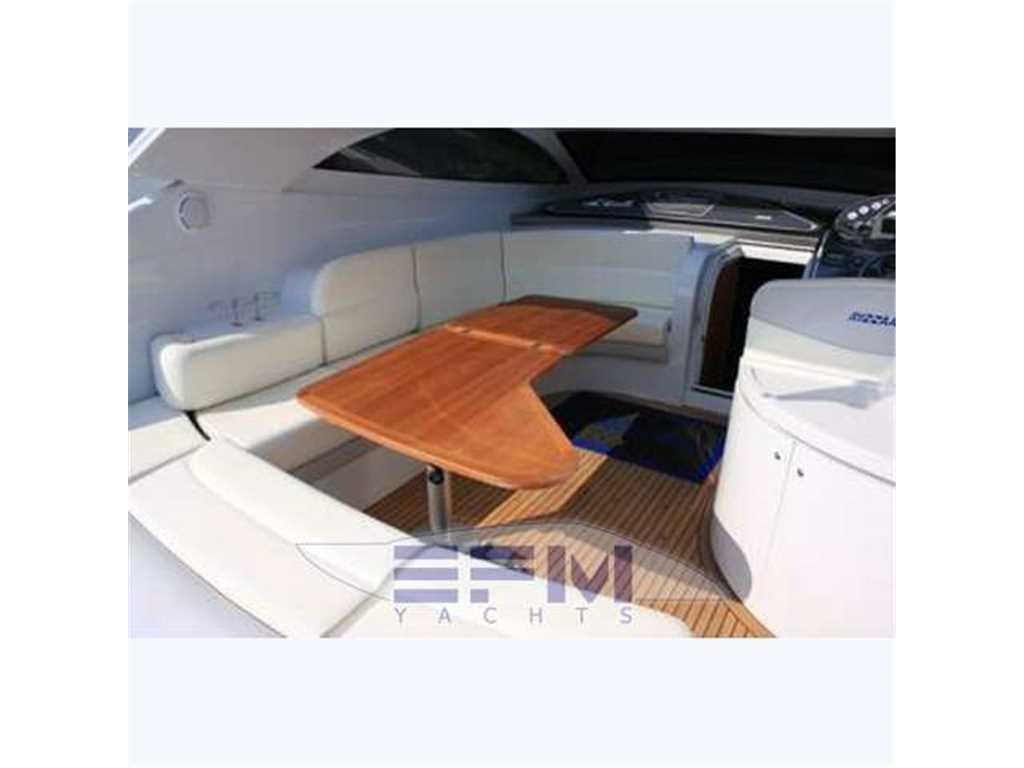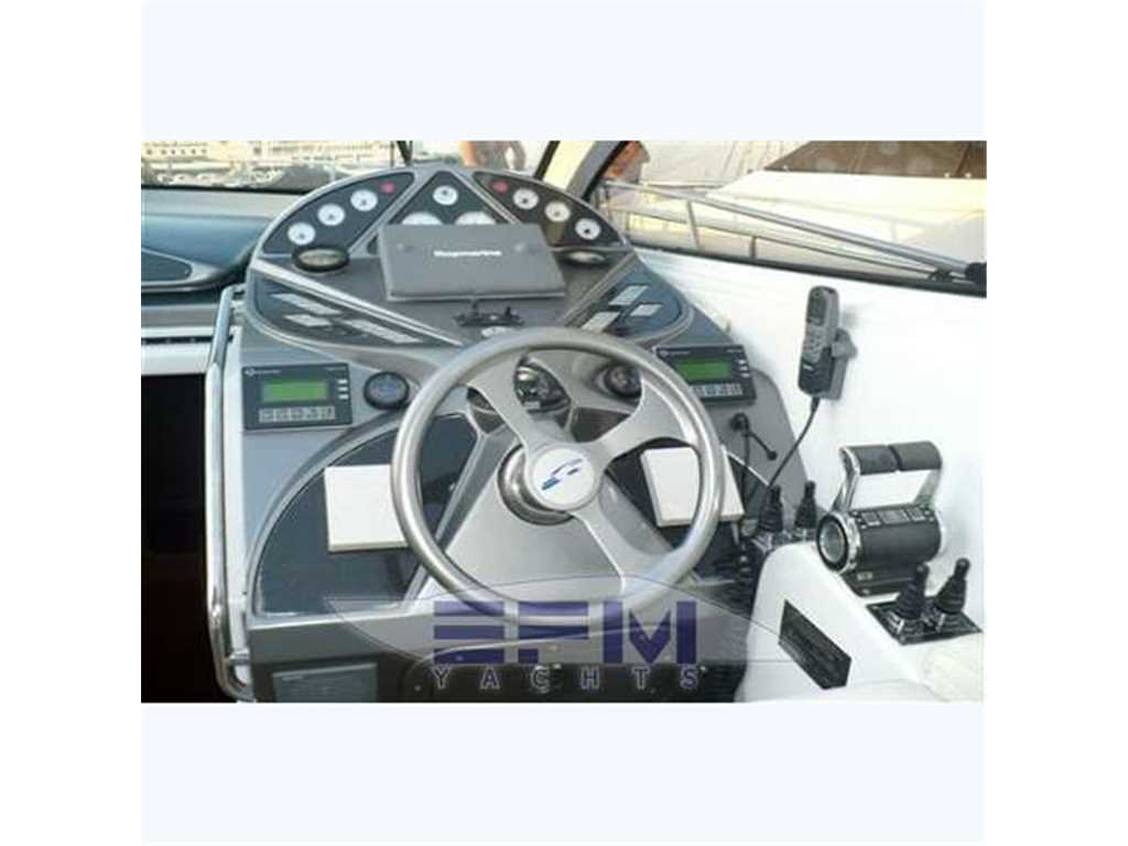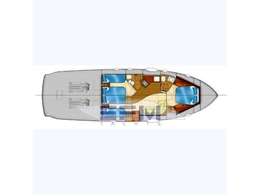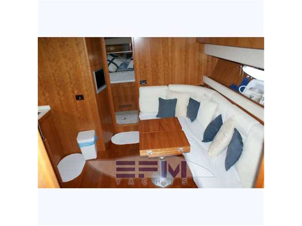 Notas internasStruttura in vetroresina multiassiale impregnata con resina vinilestere e stratificata a mano - Coperta e murate in sandwich di Airex - Longheroni e madieri di rinforzo stratificati e resinati - Strato esterno in gel coat isoftalico neopentilico - Carena trattata con antivegetativa. COPERTA E POZZETTO Roll bar vetroresina - Antenne,e illuminazione pozzetto - Parabrezza con cristalli temperati - Tergicristalli con lavavetri - Passo d’uomo in cabina armatore in acciaio inox – Battagliola alta in acciaio inox - Boccaporto al gavone di prua - Paratia stagna anticollisione - Bottaccio in acciaio inox - Portello di accesso alla cabina di poppa - Doccetta a poppa - Cappa pozzetto poppa - Cappetta copricruscotto - Tenda parasole con struttura inox - Zone prendisole a prua e poppa con materassini – Dinette con divano a “C” e tavolo ribaltabile - Mobile di servizio in pozzetto con: frigorifero, lavello, pattumiera e gavone - Console comandi di emergenza - Luci di navigazione - Luci perimetro pozzetto - Tromba – Scaletta bagno a poppa - Passerella elettroidraulica - Piattaforma di poppa con selle per tender – Luci segna gradini specchio poppa – Teak nel pozzetto - Teak piattaforma di poppa e gradini – SALONE: SOGGIORNO/PRANZO Divano – Tavolo pieghevole con pouf – Mobile Bar - Mobiletti pensili – Illuminazione e prese di corrente - TV colori 26” LCD – Stazione meteo (Orologio - Barometro – Igrometro) - Radiostereo CD con 4 altoparlanti di cui 2 nel pozzetto - Oblò con tendaggi. CABINA ARMATORE Letto matrimoniale con ripostiglio sotto il piano, burlone rivestito, materasso, due guanciali e copriletto - Parure letto - Mobiletti pensili - Luci di lettura - Armadio – Mobile - TV 20” - Radiostereo – Illuminazione e prese di corrente - Cassaforte - Specchio - Oblò (2) con tendaggi. BAGNO ARMATORE Armadietti e ripiani - Lavabo in VTR con miscelatore - Aspiratore - Specchio - WC elettrico - Illuminazione e prese di corrente - Doccia separata con carabottino di teak - Oblò con tendina - Parure bagno. 2 CABINE OSPITI GEMELLE A POPPA 2 Letti in piano, materassi, due guanciali e copriletto - Parure letto – Ripiani portaoggetti e luci di lettura - Armadio – Specchio - Radiostereo - Illuminazione e prese di corrente e TV - Oblò (2) con tendina. BAGNO OSPITI Armadietti e ripiani - Lavabo in VTR con miscelatore - Aspiratore - Specchio - WC elettrico - Illuminazione e prese di corrente – Doccia separata con carabottino di teak - Oblò con tendina - Parure bagno. . Notas de la instrumentación- Aria Condizionata a doppio ciclo- Passerella Idraulica a scomparsa - Plancetta Poppa in Teak - Scala Bagno - Pozzetto in Teak - Tendalini - Cuscini Prendisole - Doccia Esterna calda e fredda - Tonneggio - Salpancora - Forno a microonde - Frigo (1 nel pozzetto) - Grill - Elica di Prua - Luci subacquee - VHF - Radar - Autopilota - Gps - Ecoscandaglio - Angolo di Barra - Impianto Tv - Dvd - Stereo CD Notas de armamentoLiving room with sofa and parquet "L" and an extendable table with kitchen area complete with stove as opposed to 4 ceramic hobs, refrigerator interior , microwave , double cabin forward with private bathroom with shower , two double guest cabins with twin beds with shared bathroom with shower , Satellite TV and sky decoder , 4 TVs (fixed cabin, dinette , 2 guest cabins ) in addition to the TV station in the outer well , connected to inverter 1000 w to allow their use in navigation and the generator off .Teak cockpit with outdoor refrigerator , grill and sink and teak table . Underwater lights under the swim platform ( white and / or blue). Rotating gangway with retractable function dinghy towing . Indoor and outdoor cushions complete awnings, closing night , blinds and mosquito nets , shading aft with special fabric . Batteries engines , services and generator entirely replaced |