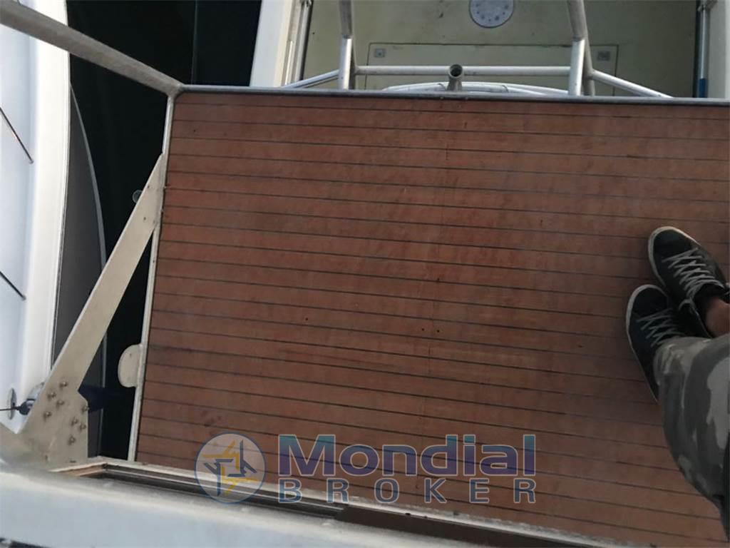 Notas internasNotas de la instrumentaciónAntenna radar, Bussola, Ecoscandaglio, GPS, Pilota automatico, Radio VHF.Notas de armamentoAllestimento tecnico e di coperta:Autogonfiabile, Doccia esterna, Faro orientabile, Flap idraulici, Impianto antincendio, Lavaggio catena, Piattaforma, Pompa di sentina automatica, Pompa di sentina manuale, Presa 220V banchina, Salpa Ancore Elettrico, Scaletta da bagno, Tromba. Dotazioni domestiche di bordo: Impianto acque nere, Prese interne 12v, Prese interne 220v, WC chimico. Intrattenimento: Altoparlanti, Radio AM/FM, Stereo. Cucina ed elettrodomestici: Frigorifero esterno, Ghiacciaia. Tappezzerie: Copripozzetto, Cuscineria di prua, Cuscineria Pozzetto, Telo copriconsolle. |