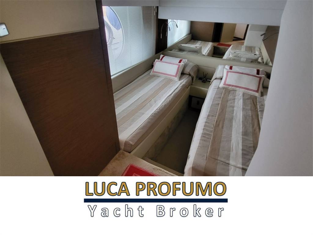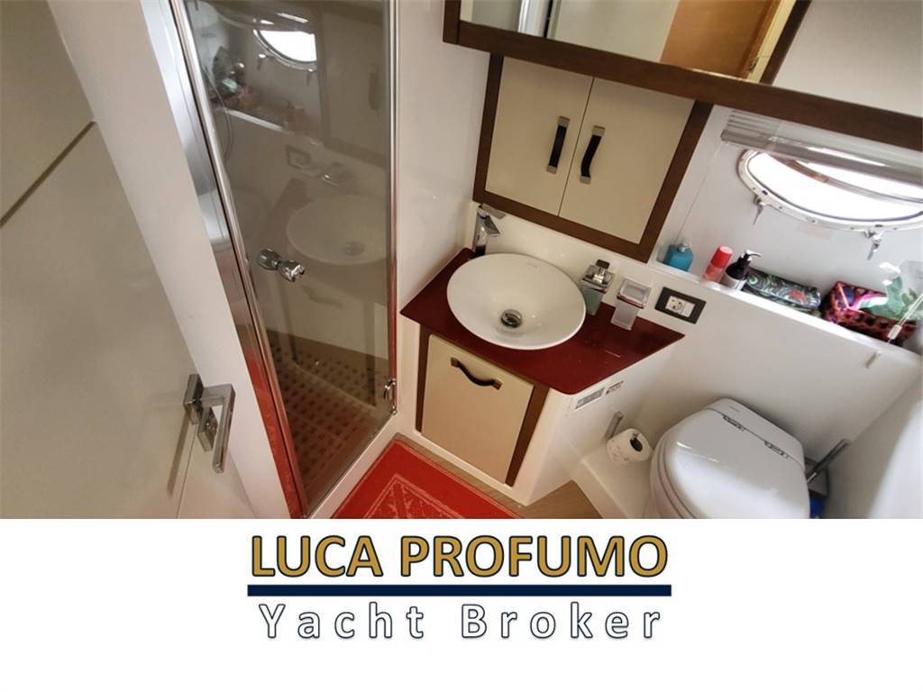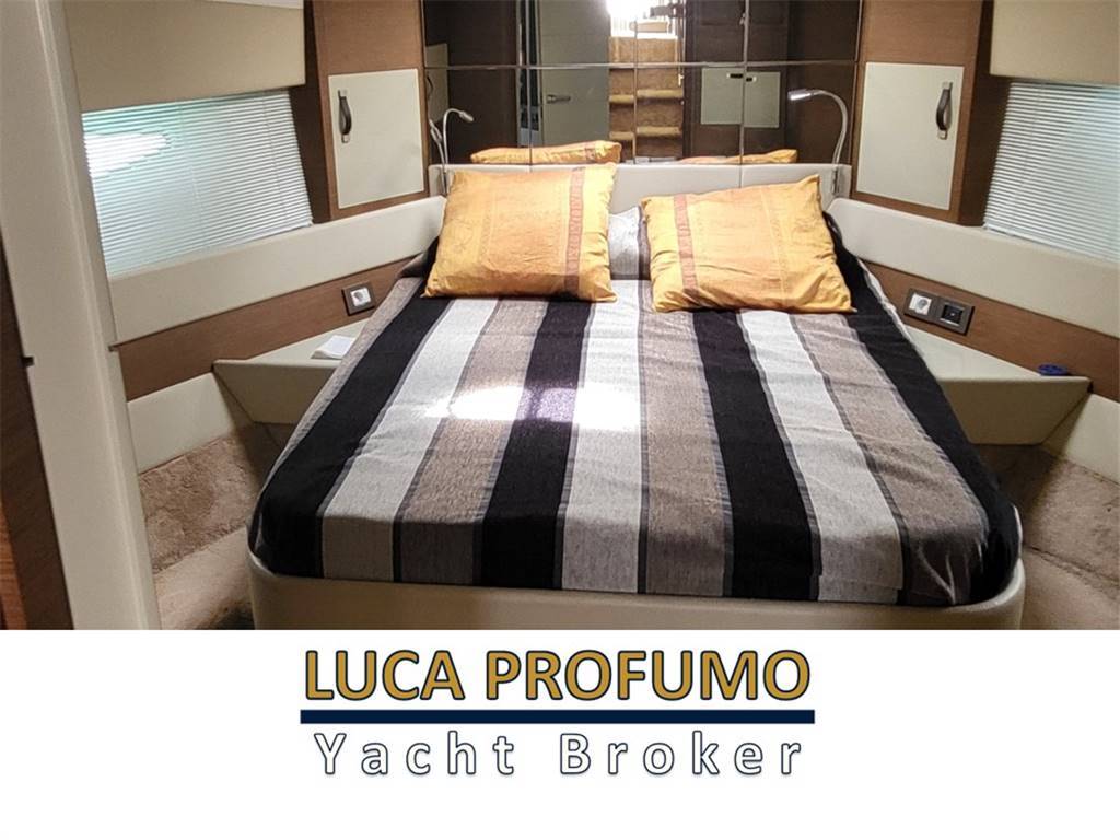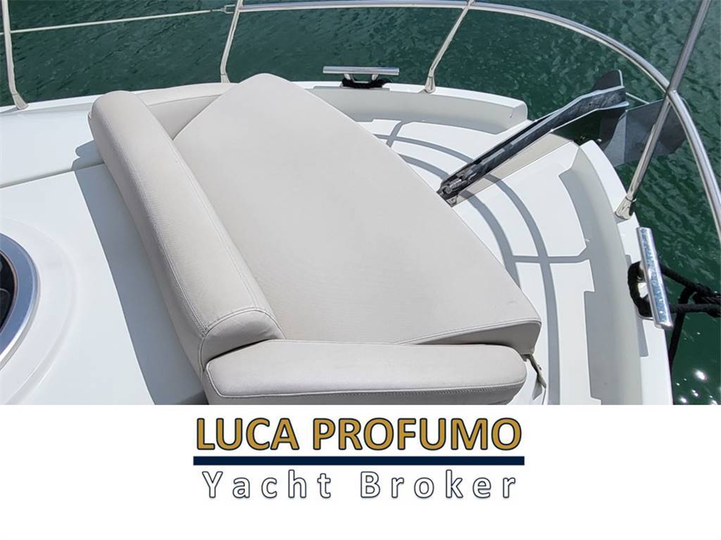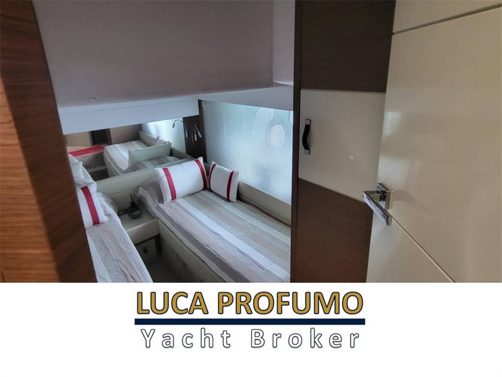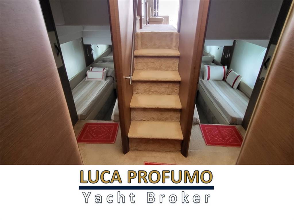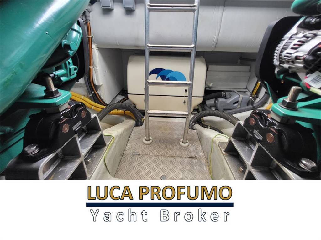 Notas internasCabina armatore a prua con bagno e doccia separata – WC-bidet integrato Cabina ospiti a sinistra con due letti in piano. Cabina ospiti a destra con due letti in piano. Bagno ospiti con 1 entrata dal corridoio- WC-bidet integrato Predisposizione cabina equipaggio Notas de la instrumentaciónPlancia:Plotter RAY Axiom XL da 16” con integrato sistema controllo C-ZONE scandaglio trasduttore in bronzo RAYTHEON A-66090 VHF RAY-260E-DSC-D Autopilot RAYMARINE EV-200/P70R-T7 Antenna Radar Quantum Q24E Raymarine AIS 350 Display Volvo penta Plate for Electronics Fly: Plotter RAY Axiom da 12” VHF RAY-260E-DSC-D Notas de armamentoElica di manovra a prua; passerella Besenzoni PI 489 portata kg 200; Finestre laterali con apertura elettrica; verricello ancora 1.500 watt e ancora da 32 kg.; due verricelli 24v per manovre; scaletta bagno; tendalino chiusura pozzetto; cuscineria esterna.Fly: comandi; doppia seduta; mobile con lavello, piastra elettrica e frigorifero; radio stereo; prendisiole; tendalino bimini top. Plancia comandi con doppia seduta; Divano a U in pelle; Mobili; cucina attrezzata con lavello inox, frigorifero e freezer, piano cottura a quattro fuochi, forno microonnde. Climatizzatore 40.000 BTU; Generatore 14 Kw; Isolatore galvanico ZINC SAVER II (50 A); bagni con bidet; Luci interne ed esterne tutte a LED; Luci cortesia perimetrali di colere blu |