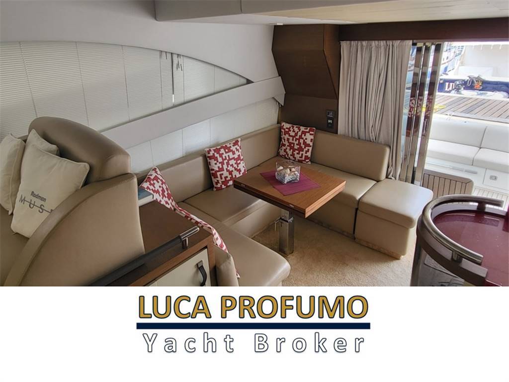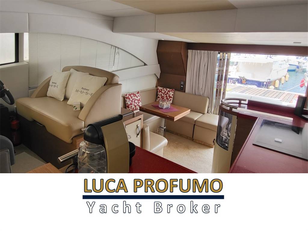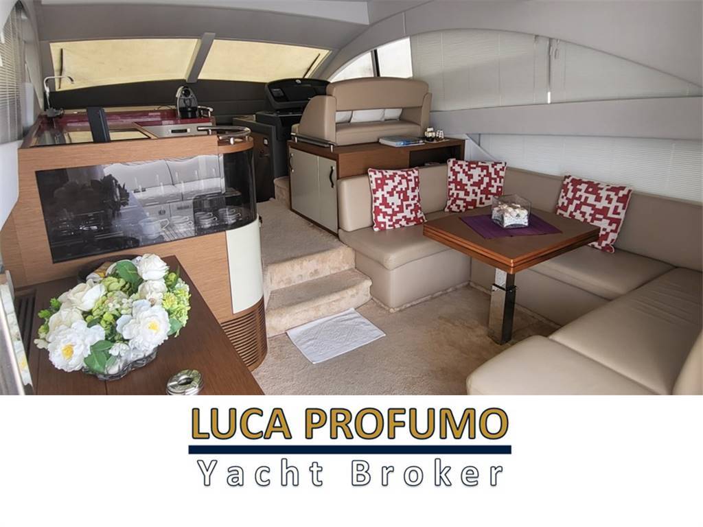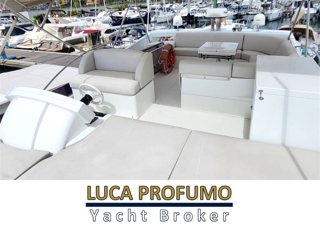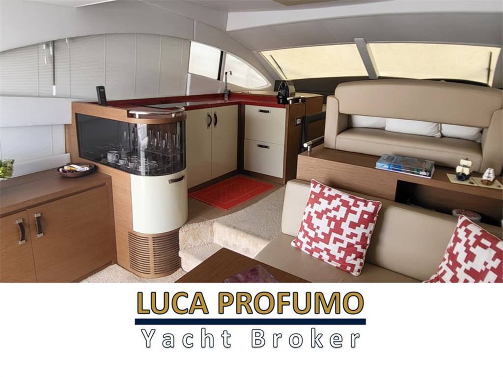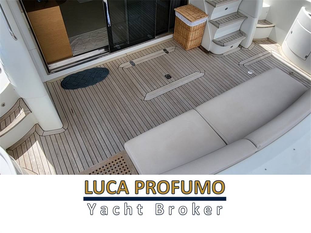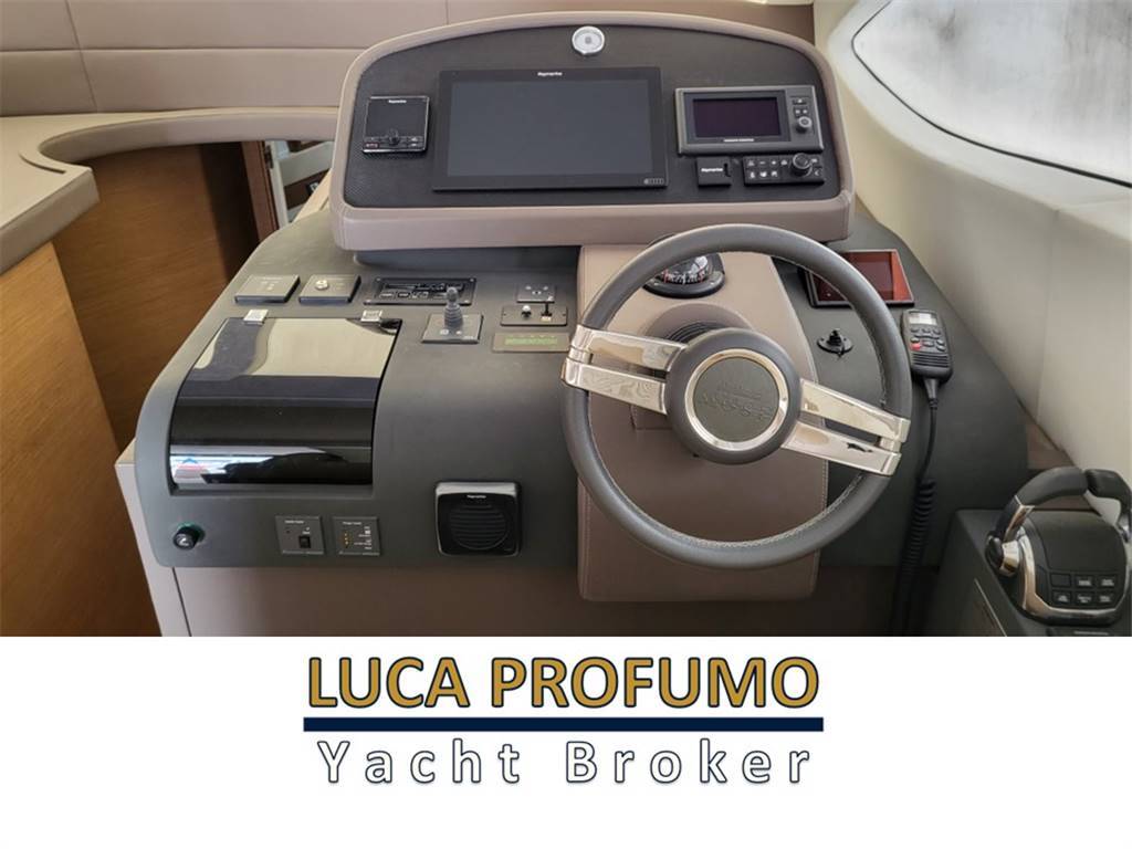 Notas internasCabina armatore a prua con bagno e doccia separata – WC-bidet integrato Cabina ospiti a sinistra con due letti in piano. Cabina ospiti a destra con due letti in piano. Bagno ospiti con 1 entrata dal corridoio- WC-bidet integrato Predisposizione cabina equipaggio Notas de la instrumentaciónPlancia:Plotter RAY Axiom XL da 16” con integrato sistema controllo C-ZONE scandaglio trasduttore in bronzo RAYTHEON A-66090 VHF RAY-260E-DSC-D Autopilot RAYMARINE EV-200/P70R-T7 Antenna Radar Quantum Q24E Raymarine AIS 350 Display Volvo penta Plate for Electronics Fly: Plotter RAY Axiom da 12” VHF RAY-260E-DSC-D Notas de armamentoElica di manovra a prua; passerella Besenzoni PI 489 portata kg 200; Finestre laterali con apertura elettrica; verricello ancora 1.500 watt e ancora da 32 kg.; due verricelli 24v per manovre; scaletta bagno; tendalino chiusura pozzetto; cuscineria esterna.Fly: comandi; doppia seduta; mobile con lavello, piastra elettrica e frigorifero; radio stereo; prendisiole; tendalino bimini top. Plancia comandi con doppia seduta; Divano a U in pelle; Mobili; cucina attrezzata con lavello inox, frigorifero e freezer, piano cottura a quattro fuochi, forno microonnde. Climatizzatore 40.000 BTU; Generatore 14 Kw; Isolatore galvanico ZINC SAVER II (50 A); bagni con bidet; Luci interne ed esterne tutte a LED; Luci cortesia perimetrali di colere blu |