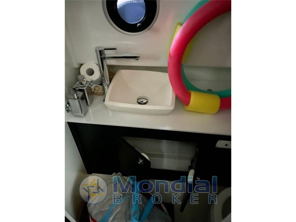 Notas internasNotas de la instrumentaciónBussola, Contamiglia, Ecoscandaglio, GPS, Plotter, Radio VHF.Notas de armamentoAllestimento tecnico e di coperta:Allarme motore, Apertura Vano Motore Elettrica, Elica di prua - bow thruster, Piattaforma, Pompa di sentina elettrica, Pompa di sentina manuale, Salpa Ancore Elettrico (ancora Inox), Scaletta da bagno, Tavolo. Dotazioni domestiche di bordo: WC marino elettrico. Intrattenimento: Stereo. Cucina ed elettrodomestici: 2 Frigorifero esterno. Tappezzerie: Bimini, Cuscineria di poppa, Cuscineria di prua. |