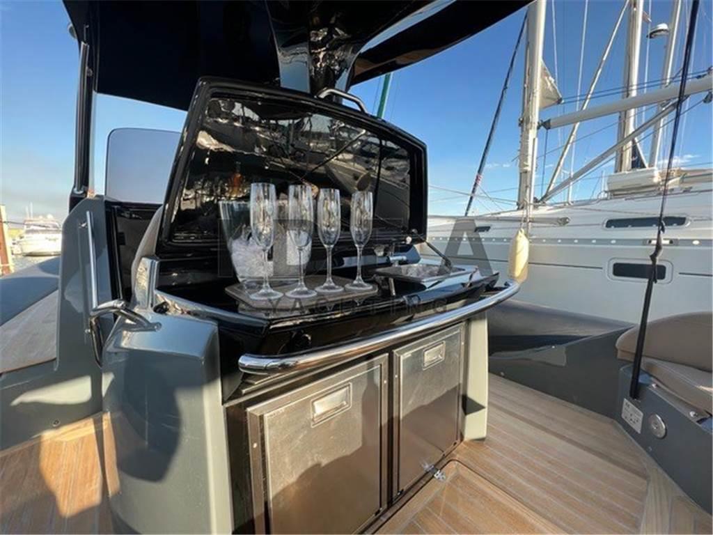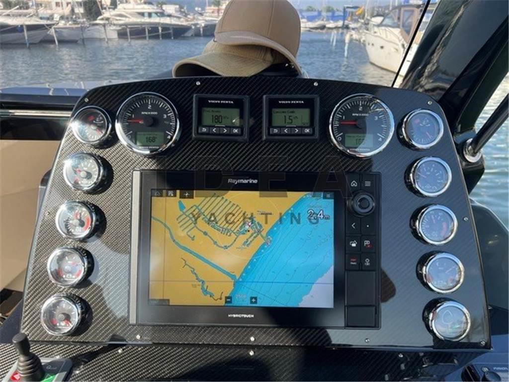 Notas internasNotas de la instrumentaciónBussola, Plotter (Raymarine), Sedile Copilota.Notas de armamentoAllestimento tecnico e di coperta:Ancora (12 Kg polished stainless steel anchor and stainless steel chain), Doccia esterna, Piattaforma (In solid teak), Pompa di sentina automatica, Salpa Ancore Elettrico, Scaletta da bagno (Retractable stainless steel), Tavolo (in teak), Tromba. Dotazioni domestiche di bordo: Prese interne 12v, WC marino elettrico. Cucina ed elettrodomestici: Frigorifero esterno (65l stainless steel drawer refrigerator). Tappezzerie: Cuscineria completa (in closed cell), Telo copriconsolle. |