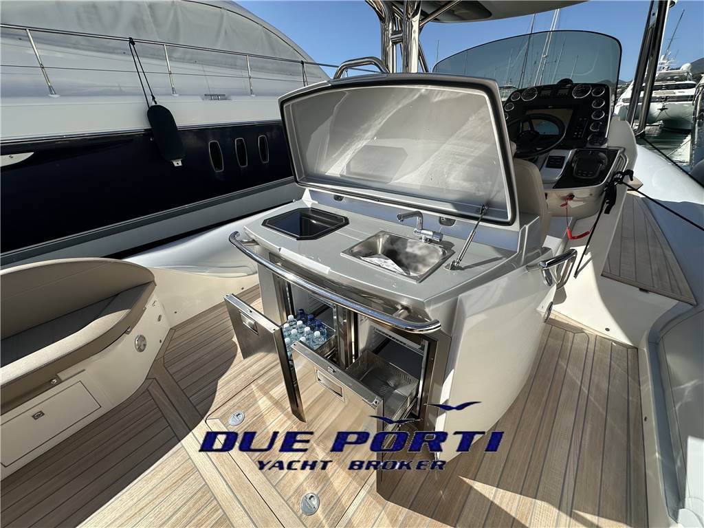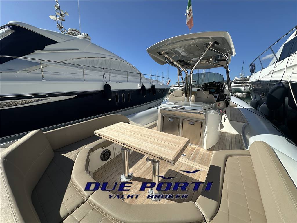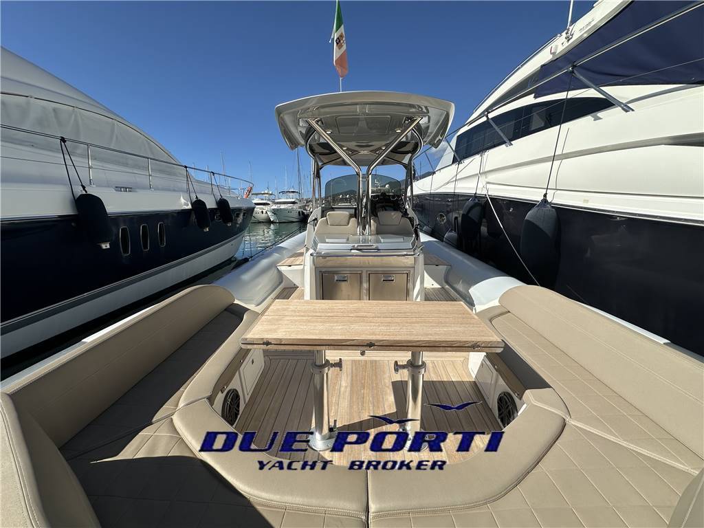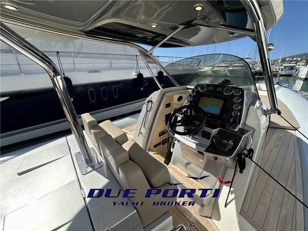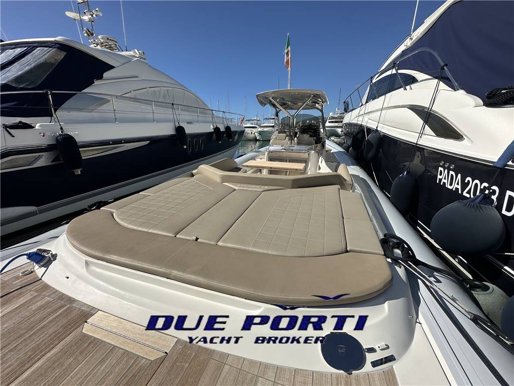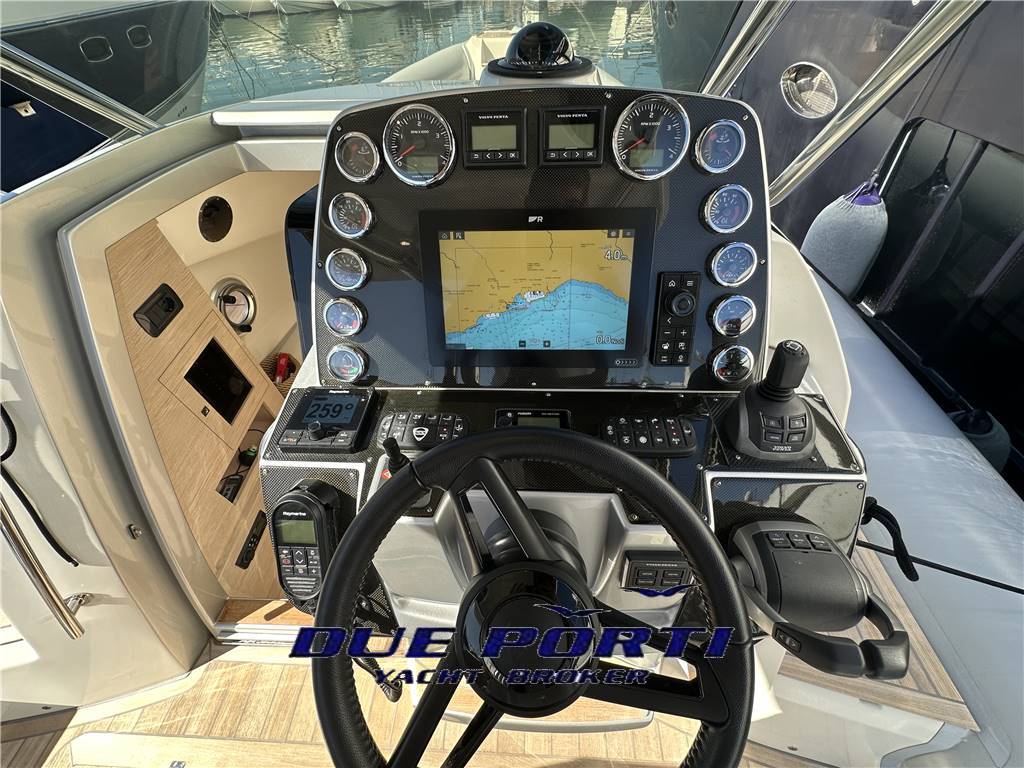 Notas internasBagno con lavello, wc elettrico e doccia. Notas de la instrumentaciónRaymarine Axiom 12" gps plotter con tastierinoModulo ecoscandaglio per gps Raymarine RAY 63 VHF con doppia stazione Interfaccia dati motore Volvo su gps plotter Doppio display Volvo Penta per controllo parametri motore Elica di prua Quick Telecamera su verricello salpa ancora Raymarine P70rs pilota automatico Joystick di manovra Volvo Penta Trim Volvo Penta con funzione trim assist Notas de armamentoTendalino bimini parasole a scomparsa con sistema assistitoCarica batterie automatico Impianto stereo Fusion Cruscotto in fibra di carbonio Luci di cortesia pozzetto Luci subacquee T-top in fibra di carbonio verniciato in silver Attuatori elettrici per apertura e chiusura portello sala macchine Elica di prua Pilota automatico Mobile bar pozzetto con lavello ed upgrade doppio frigo 50+50l Tavolo pozzetto in teak Plancetta, pozzetto e camminamenti laterali in teak massello Salpa ancora elettrico con telecomando con contametri catena Serbatoio acque nere Cuscinerie e tendalini completi in perfetto stato. |