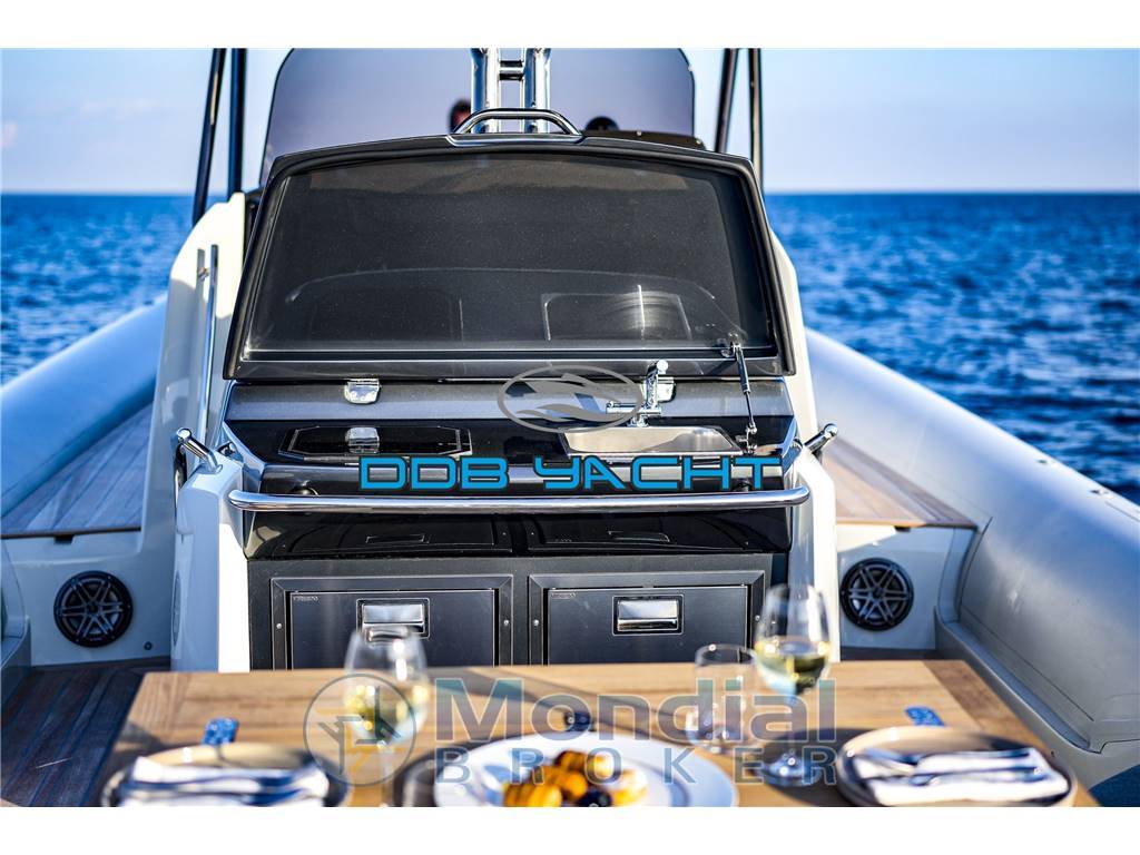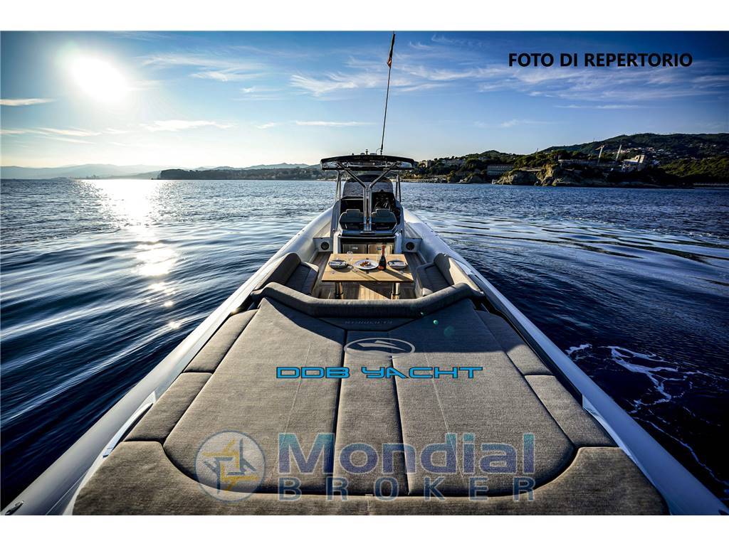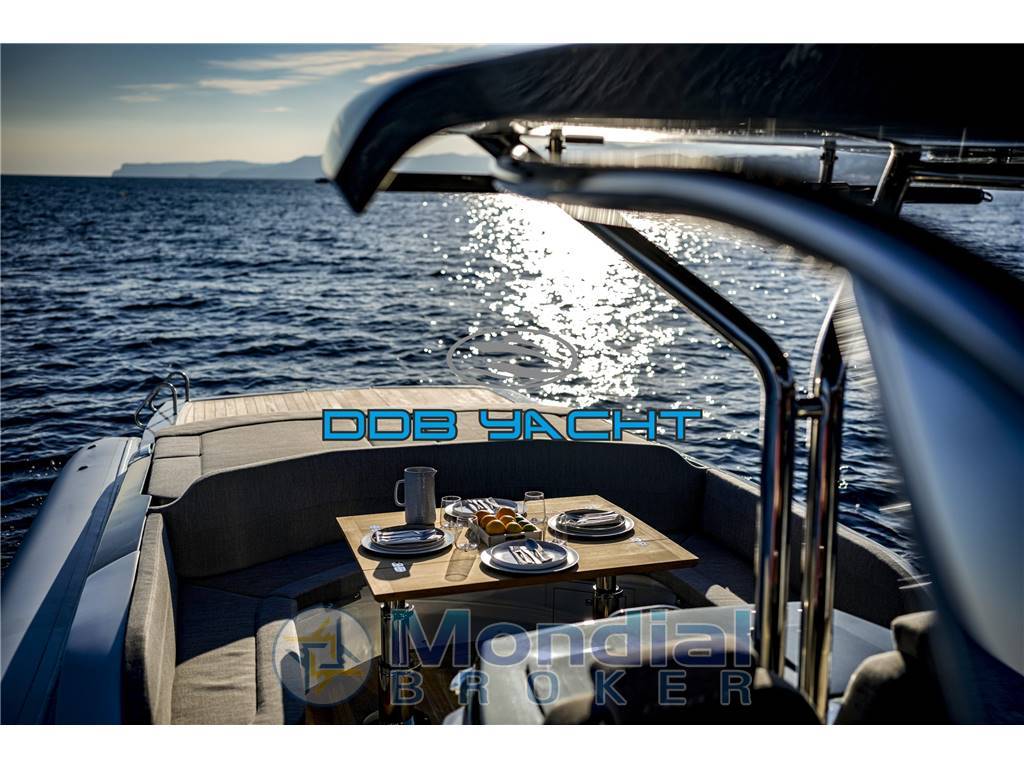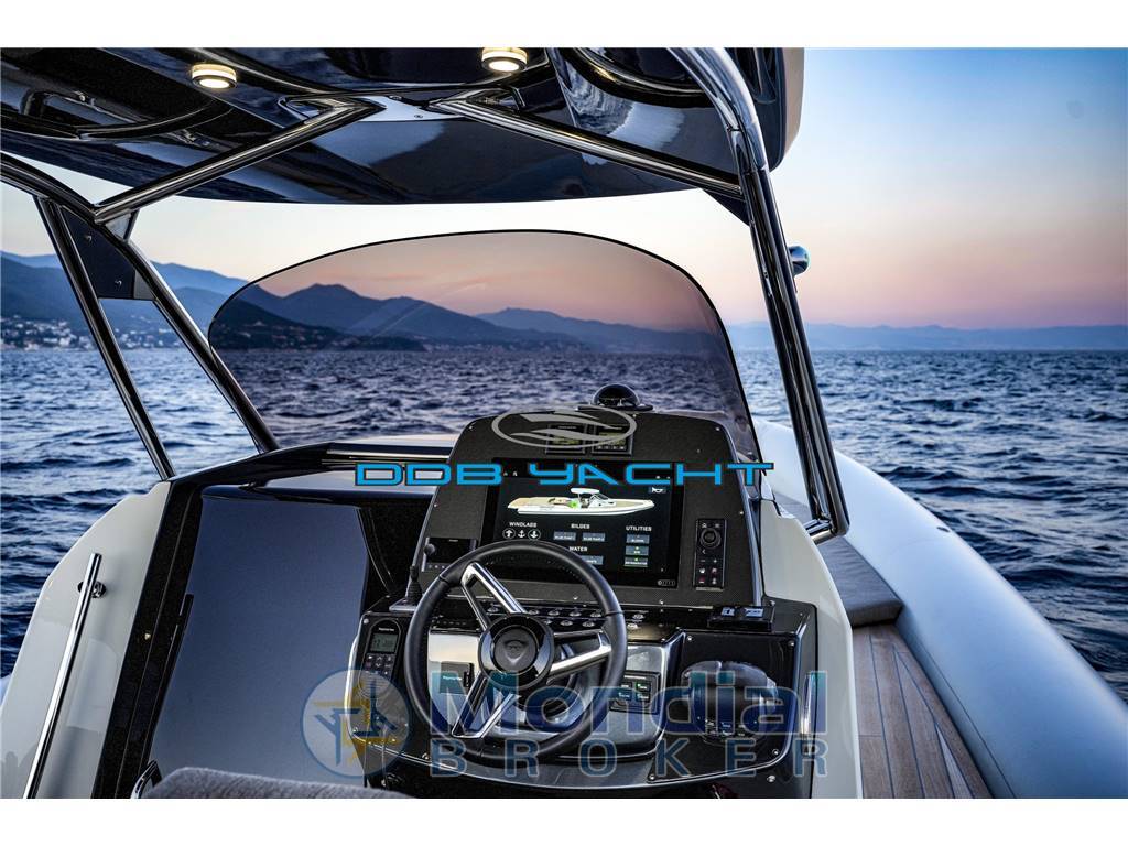 Notas de armamentodotazioni di bordo, tendalino parasole con arcata in acciaio a scomparsa servo assistito, T TOP in VTR, pedana di poppa in TEAK con vano porta oggetti, scaletta di risalita mare con maniglie tieniti bene, teli di copertura