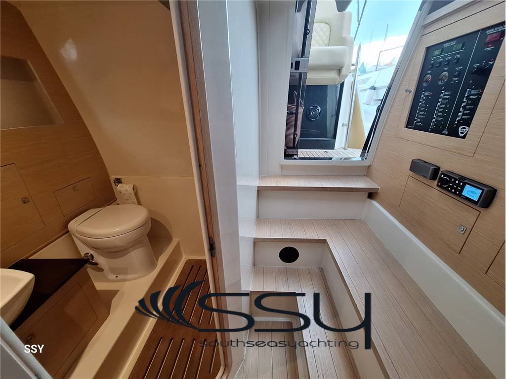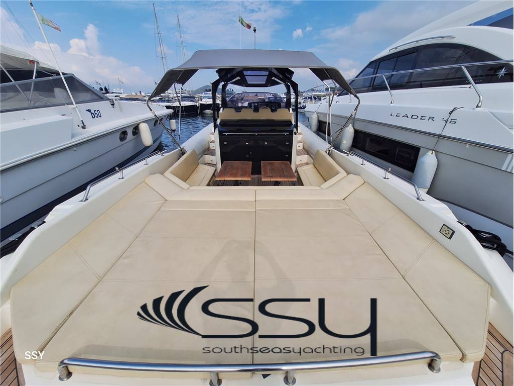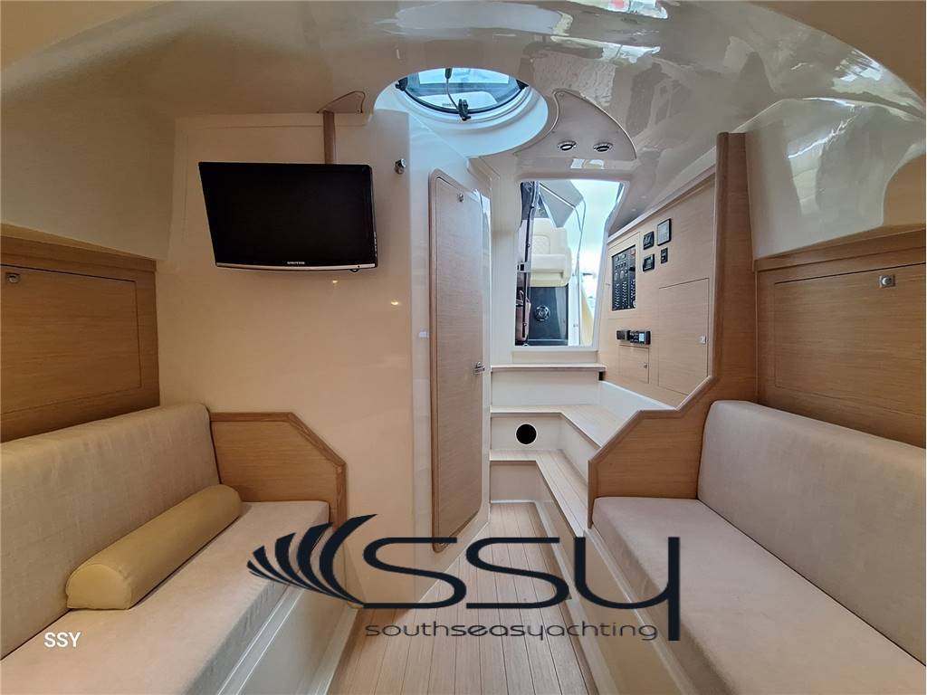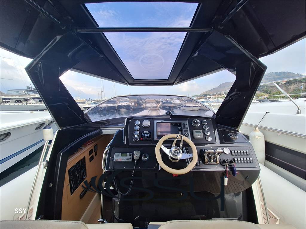 Notas internas- Bagno sperato completo di doccia e wc elettrico. - Spacious cabin with double forward bed, dinette convertible in double bed, lcd TV United 32’, impianto HIFI Fusion MS-AV600, parquet flooring; - separate bathroom with box shower and electric wc. Notas de la instrumentaciónVHF Raymarine RAY240E;multifuncton chart plotter Raymarine E120/” Hybrid touch; Autopilota Simrad AP44 with interface; Contacatena digitale MZ Electronic digital chain counter; Ind. Angolo di barra & flaps / rudder & flasp ind. Level; Trim tab ind. level; Electric searchlight / faro di ricerca elettrico; Manette elettroniche Power Commander by Twin Disc speed throttles. Notas de armamento- Elica di prua Lewmar;- gruppo elettrogeno Coelmo 3.5kw DM320 15a/50Hz/220V; - caricabatterie digitale Victron Centaur 12V/60A; - impianto A/C Vitrifrigo doppio ciclo; - boiler elettrico 25lt; - tv lcd United 32’ + Fusion MS-AV600 interno; - Fusion MS-WR600 + 6 altoparlanti + lcd TV a scomparsa in pozzetto; - passerella idraulica a scomparsa Opac Mare; - tendalino di poppa con bimini a scomparsa; - cucina esterna con lavello, piano cottura Trinox, frigorifero Isotherm; - verricello salpancora Lofrans’ + Bruce 15kg inox; - doccetta a poppa + prua; - chiusura consolle con teli in PVC; - dotazioni di sicurezza complete. Lewmar bow thruster; - 3.5 kw Coelmo generator DM320 15A/50Hz/220V; - battery charger Victron Centaur 12V/60A; - Vitrifrigo A/C system reverse cycle; - electric boiler 25lt; - 32’ lcd TV United + Fusion MS-AV600 inside; - Fusion MS-WR600 + 6 speakers at cokpit + retractable lcd TV; - Opac Mare hydraulic gangway; - aft bimini top; - cockpit kitchen with Trinox ceramic stove, Isotherm fridge + freezer; - Lofrans’ windlass + stainless steel Bruce 15kg; - forward and aft shower; - PVC consolle closing; - full emergency equipment. |