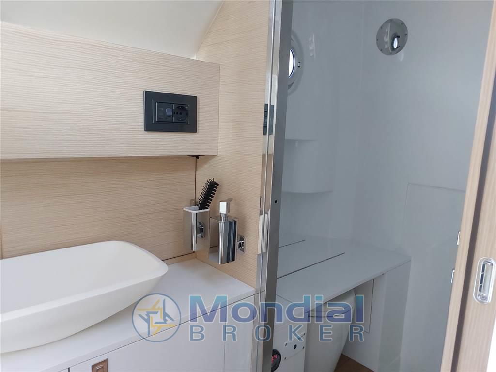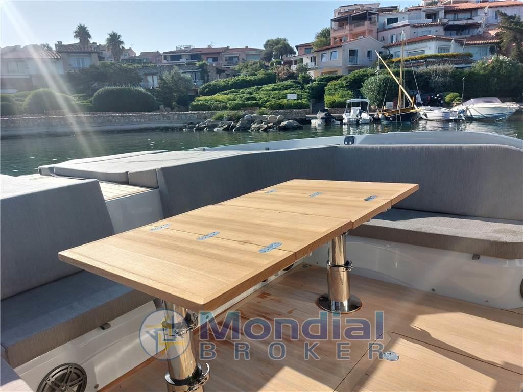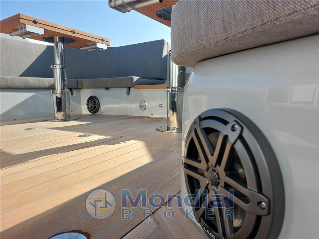 Notas de armamento8 Altoparlanti, Aria condizionata (12000 BTU), Boiler (Bivalente), Congelatore, Cuscineria completa, Dimmer per Luci, Frigorifero esterno, Ghiacciaia, ICE Maker, Inverter (1200 watt), Pavimento interno in legno, Piastra in vetroceramica (2 fuochi esterno), Prese interne 12v, Prese interne 220v, Radio AM/FM (Fusion), Stereo (Fusion), Telecamera (gavone ancora), Telo copriconsolle, Tendalino (parasole con pali in carbonio), WC marino elettrico