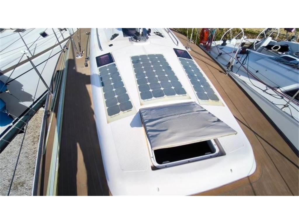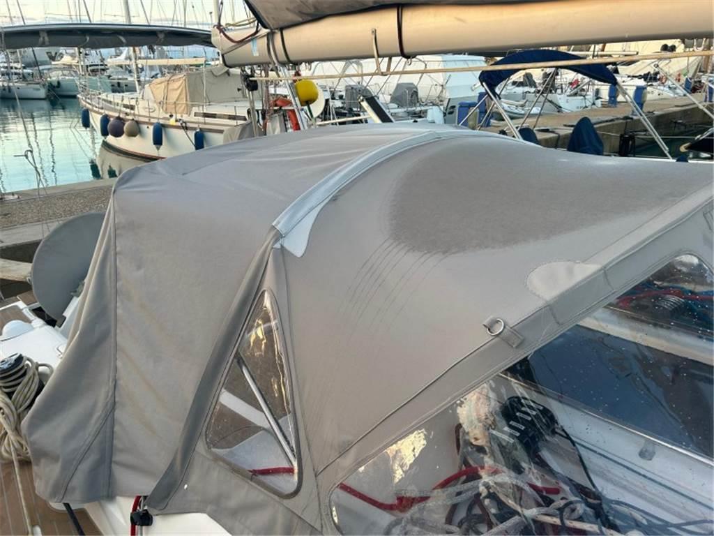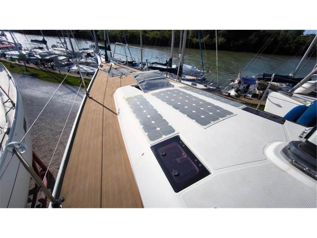 Notas internasNotas de la instrumentaciónBussola, Ecoscandaglio, GPS, Interfono, Log, Pilota automatico, Radar, Radio VHF, Stazione vento, Telefono satellitare.Notas de armamentoAllestimento tecnico e di coperta:Ancora, Elica di prua - bow thruster, Gruette per tender, Passerella, Pompa di sentina elettrica, Scaletta da bagno, Winch Elettrico (Electric). Dotazioni di sicurezza: E.P.I.R.B., Zattera di salvataggio. Intrattenimento: Ricevitore satellitare, TV. Cucina ed elettrodomestici: Fornello (Gas), Forno, Frigorifero interno (Electric). Tappezzerie: Cappottina, Copripozzetto, Copriscafo. Vele: Randa, Tormentina, Fiocco, Genoa, Avvolgi Fiocco. |